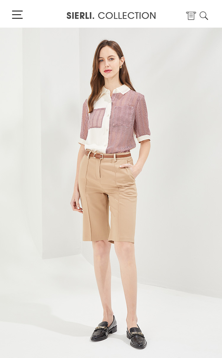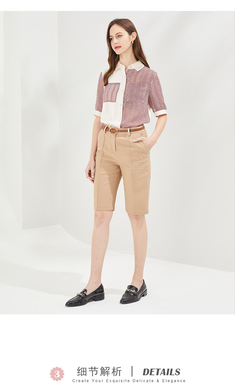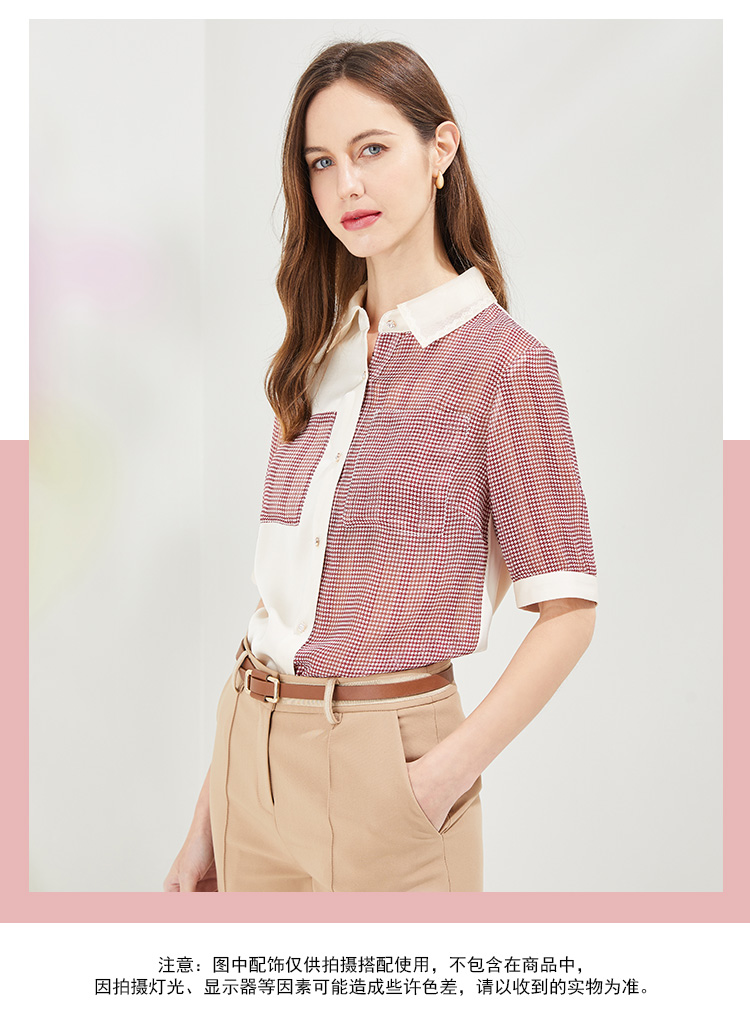 QF24A斯尔丽瑟俪2021秋季新款左右不对称撞色时尚精致感衬衣