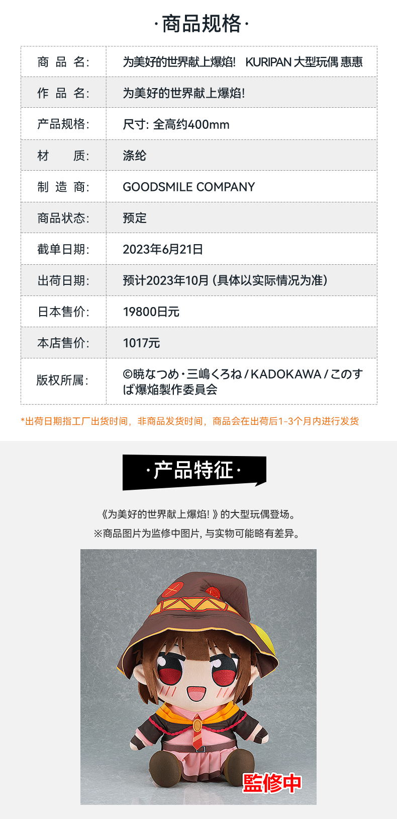 【GSC现货】为美好的世界献上爆焰! KURIPAN 大型玩偶 惠惠