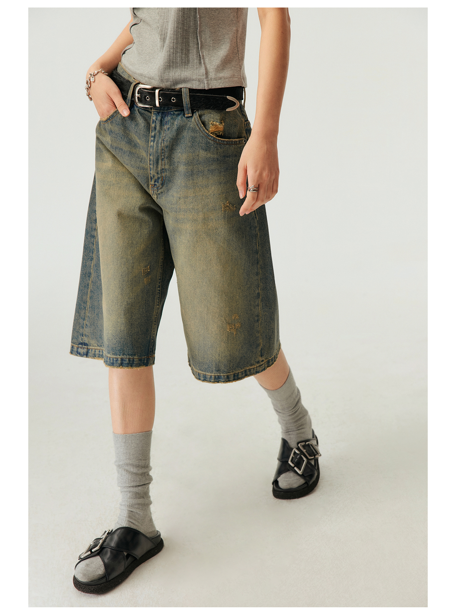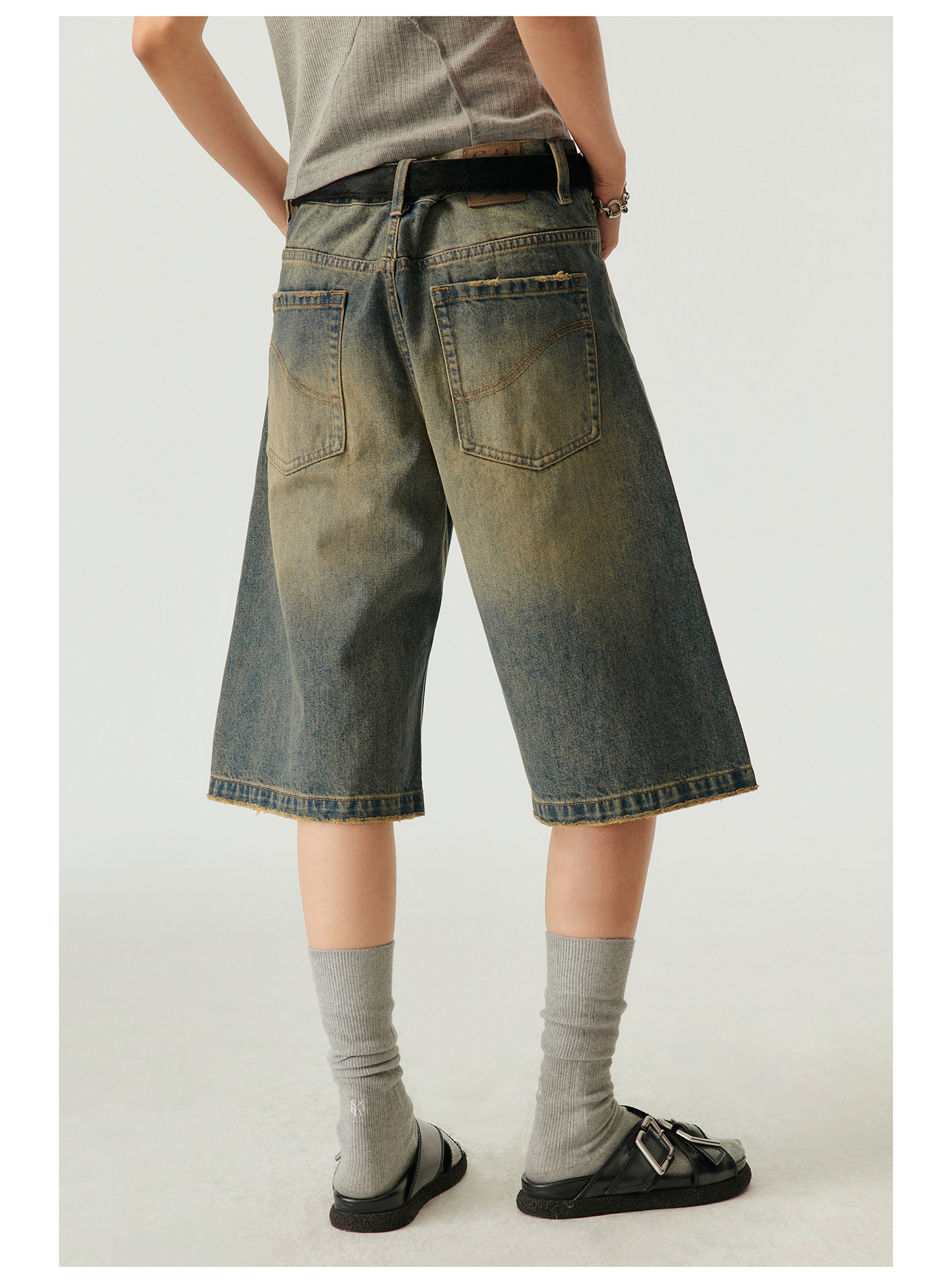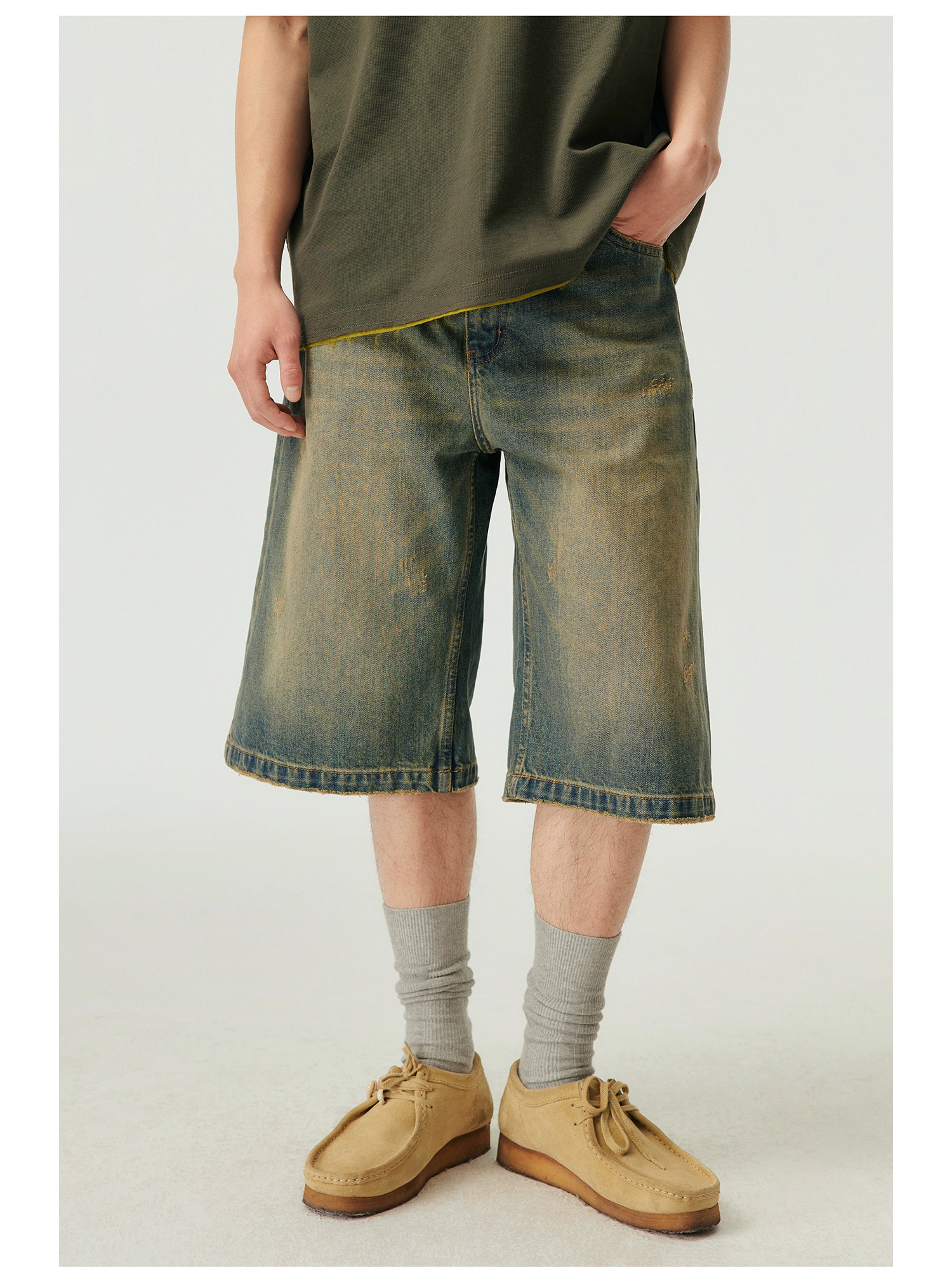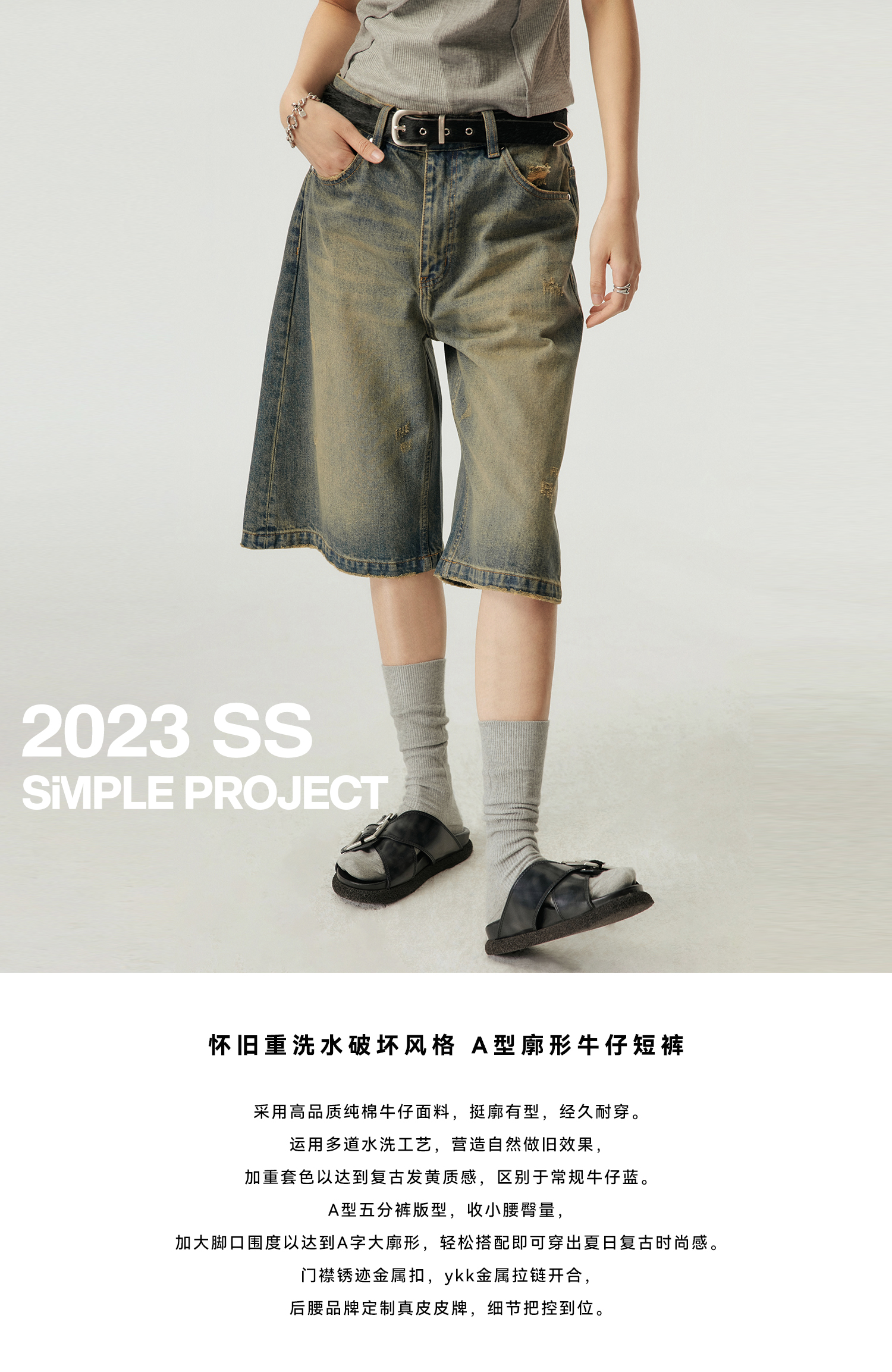 Simple Project/k23800/纯棉怀旧重洗水破坏风格 A型廓形牛仔短裤