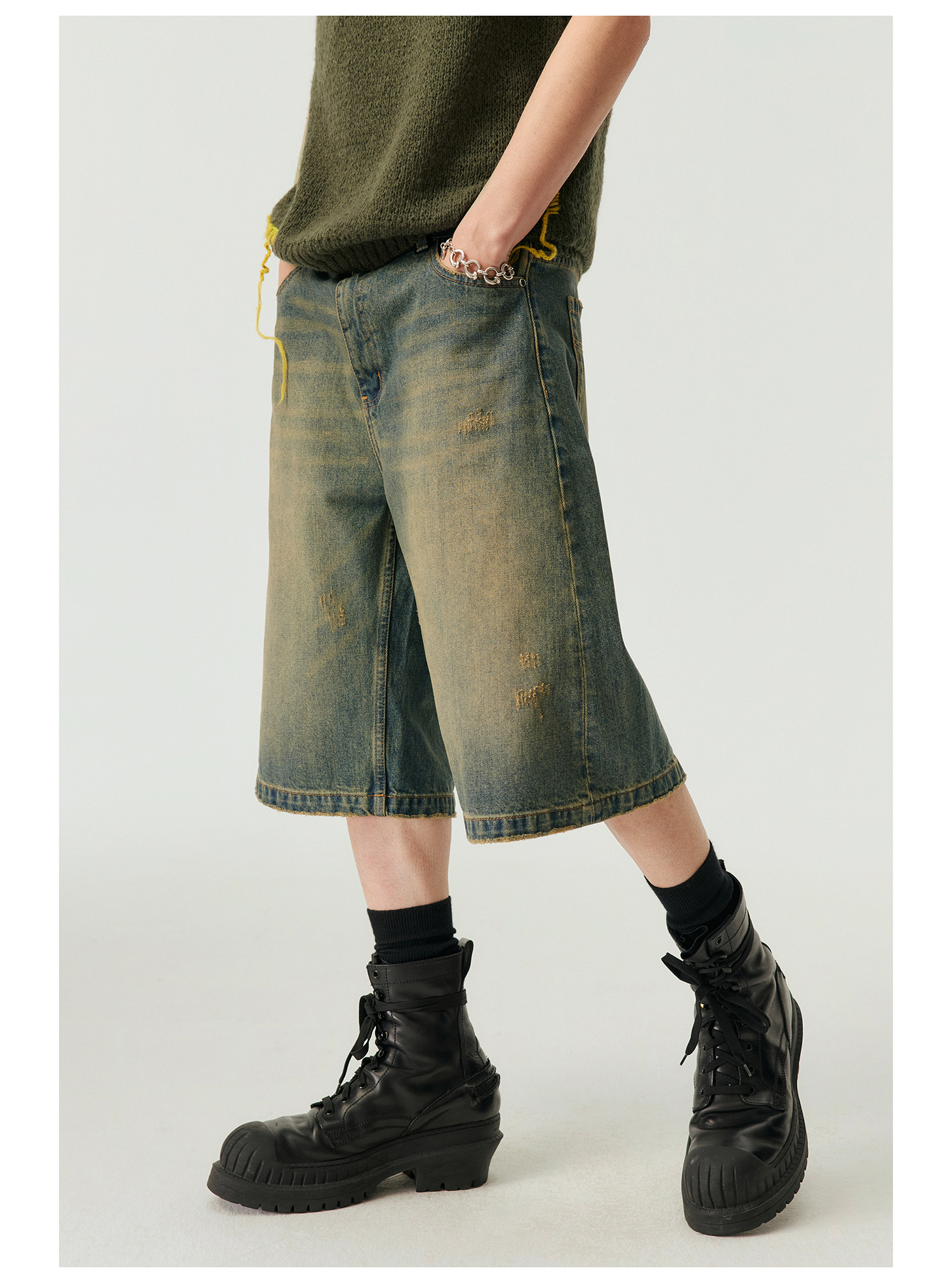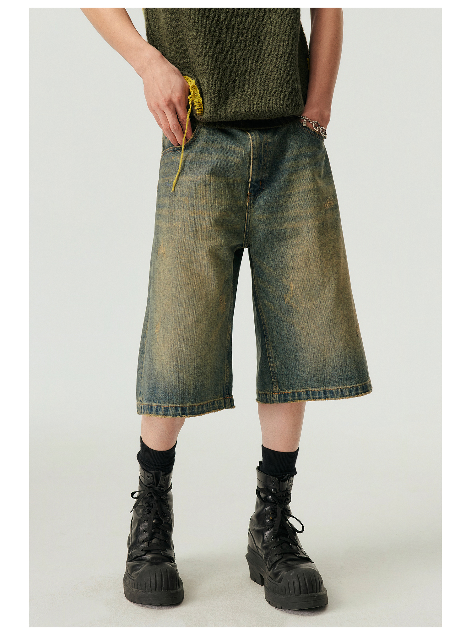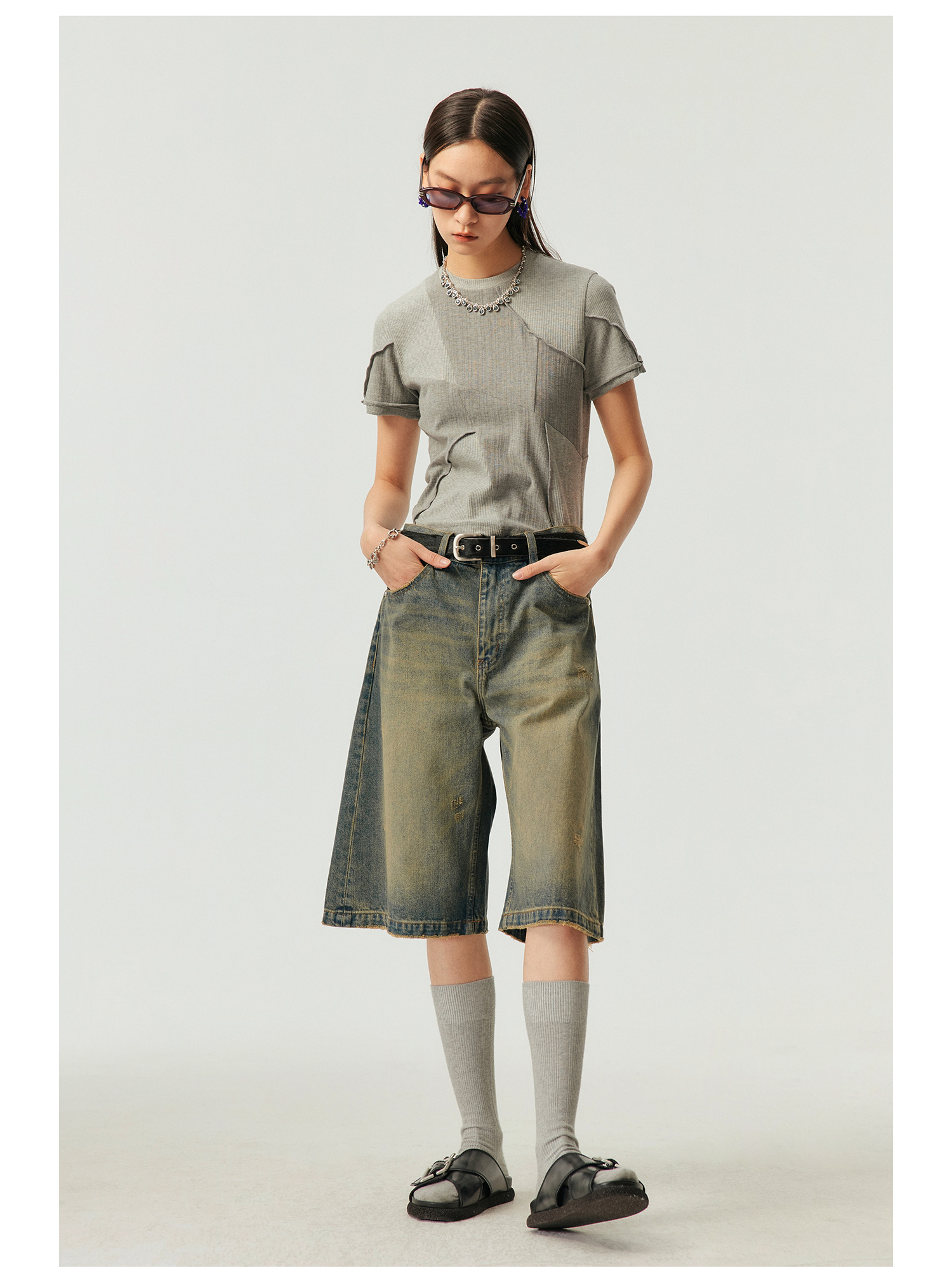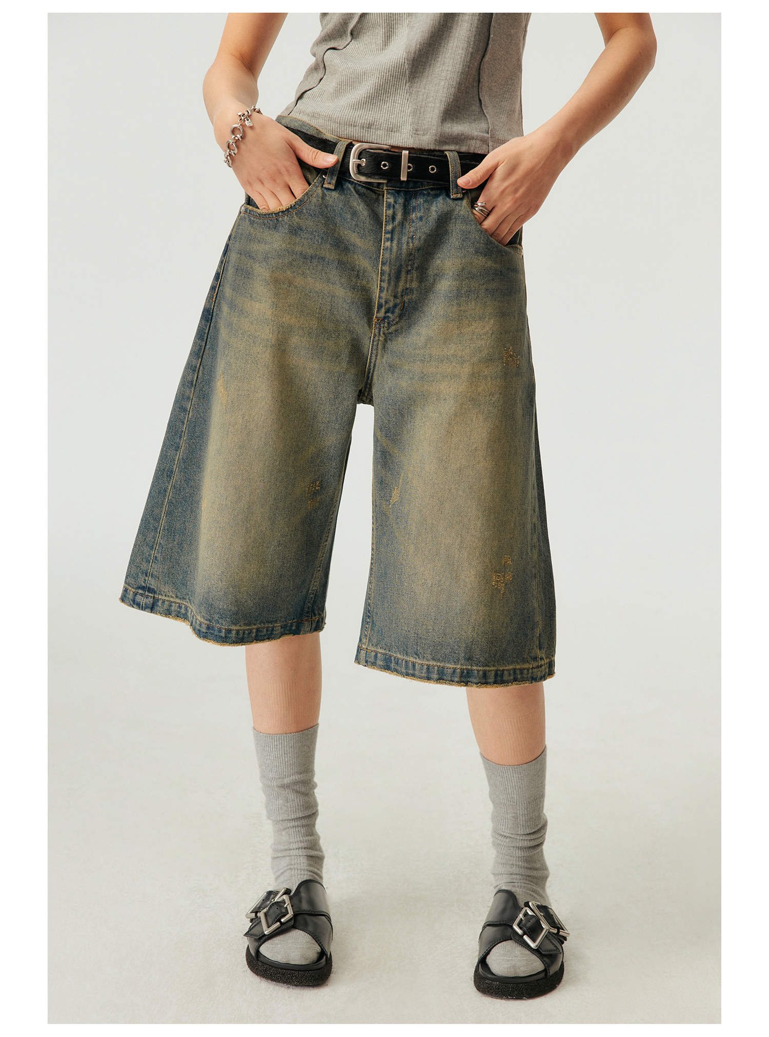 Simple Project/k23800/纯棉怀旧重洗水破坏风格 A型廓形牛仔短裤