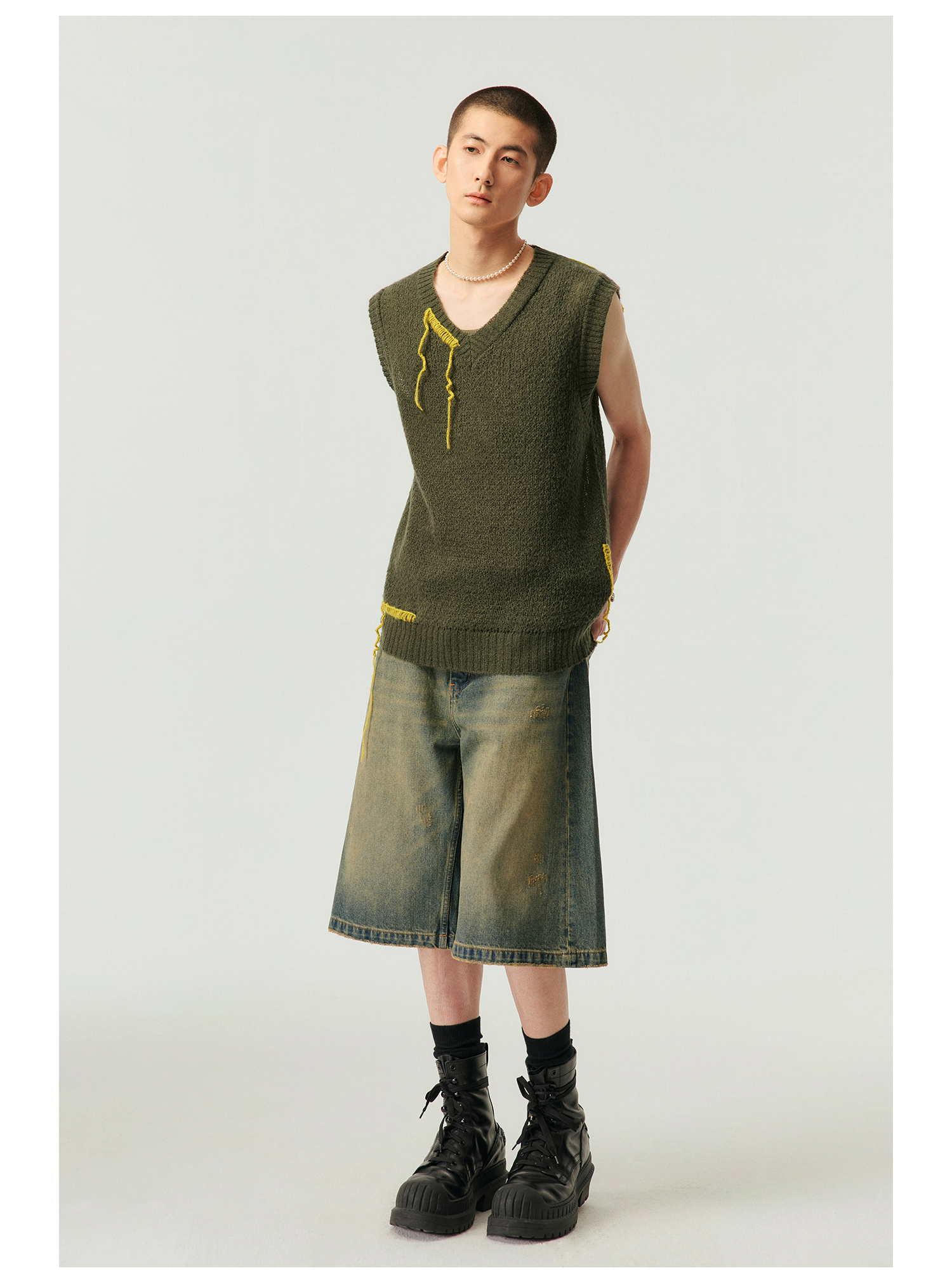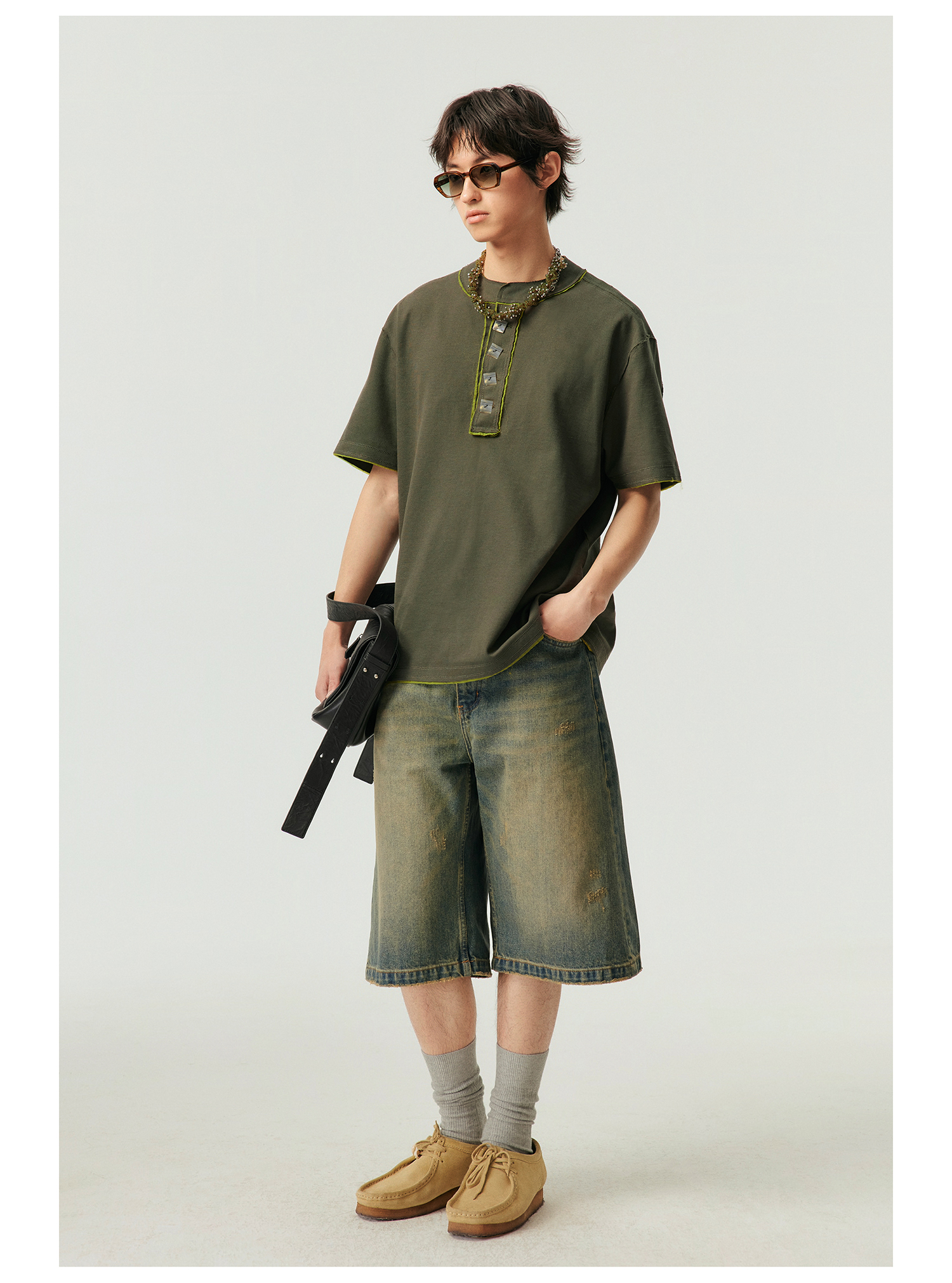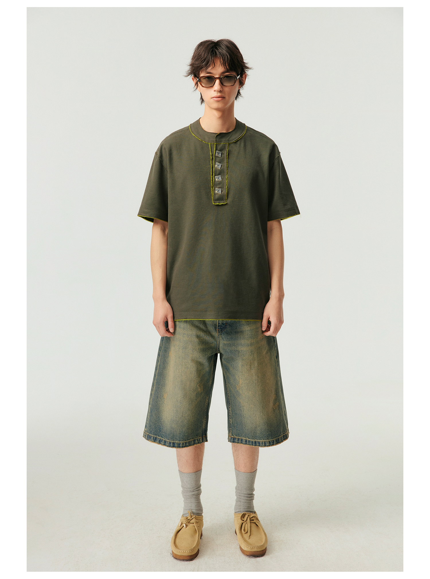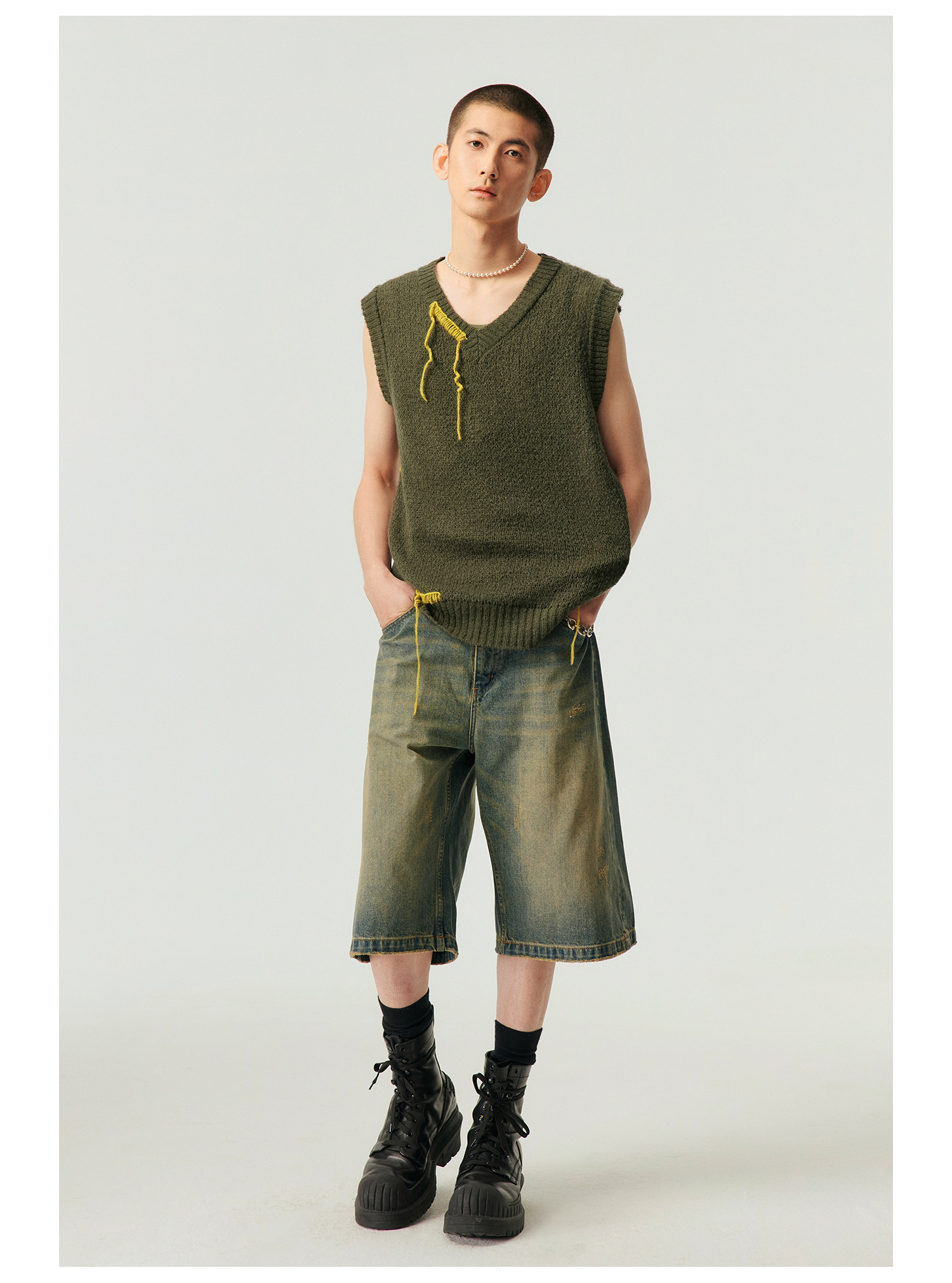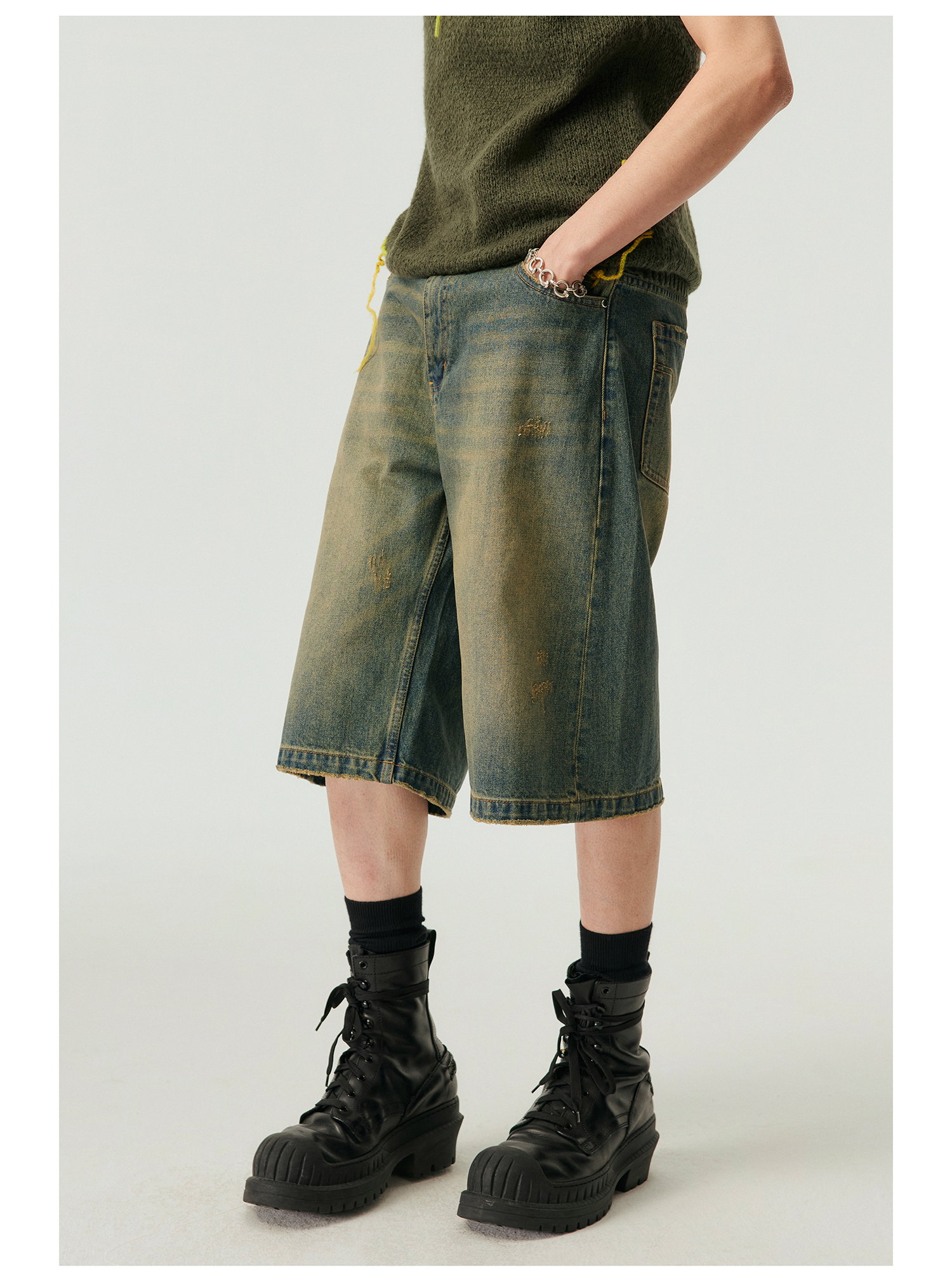 Simple Project/k23800/纯棉怀旧重洗水破坏风格 A型廓形牛仔短裤