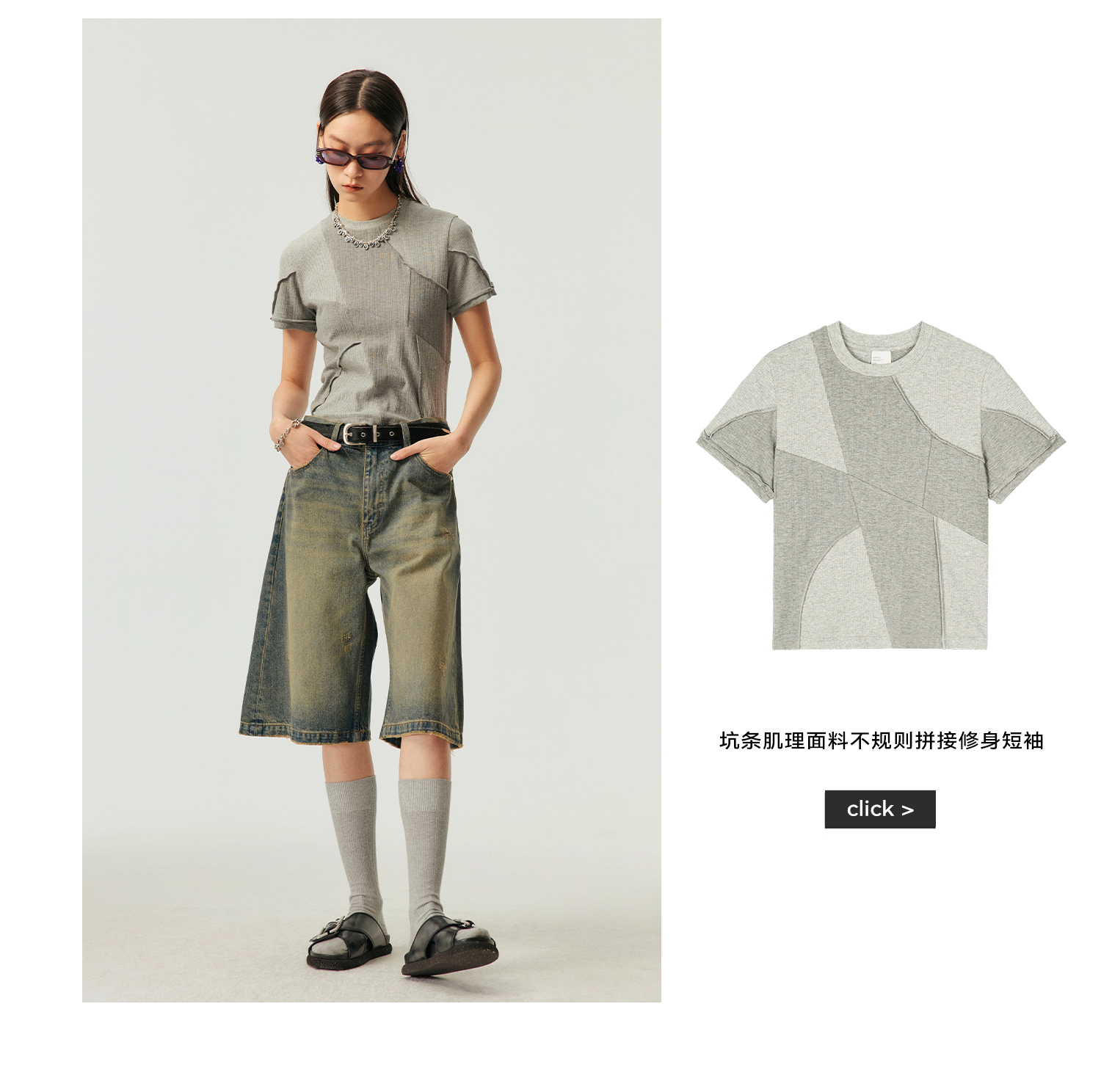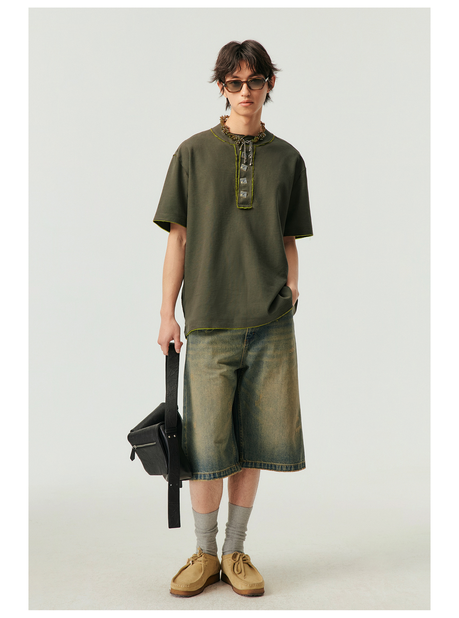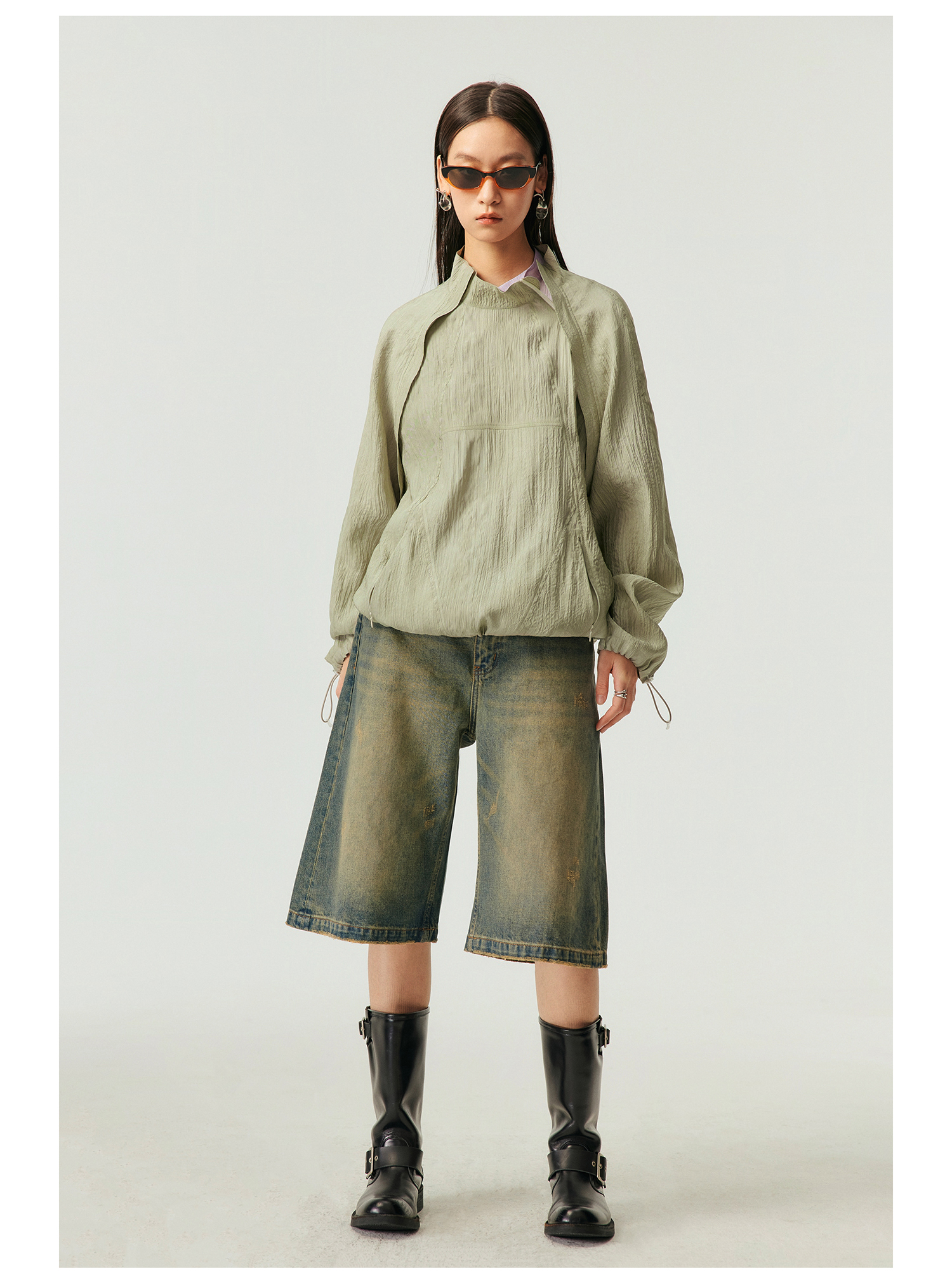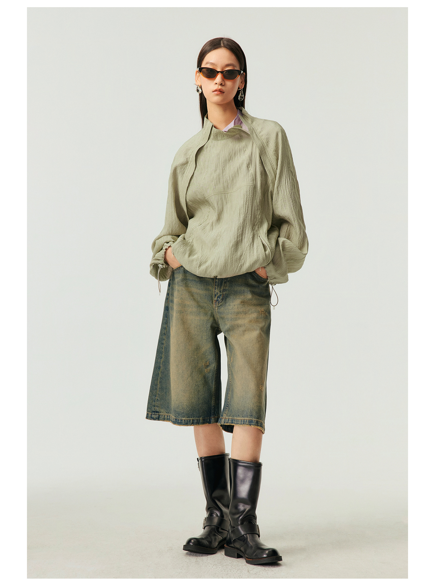 Simple Project/k23800/纯棉怀旧重洗水破坏风格 A型廓形牛仔短裤