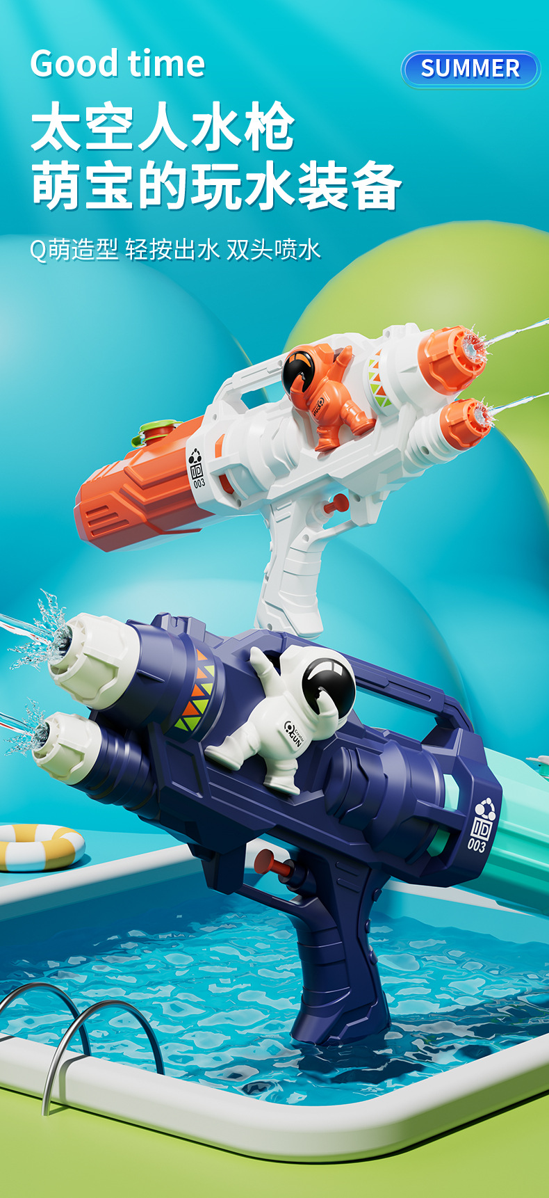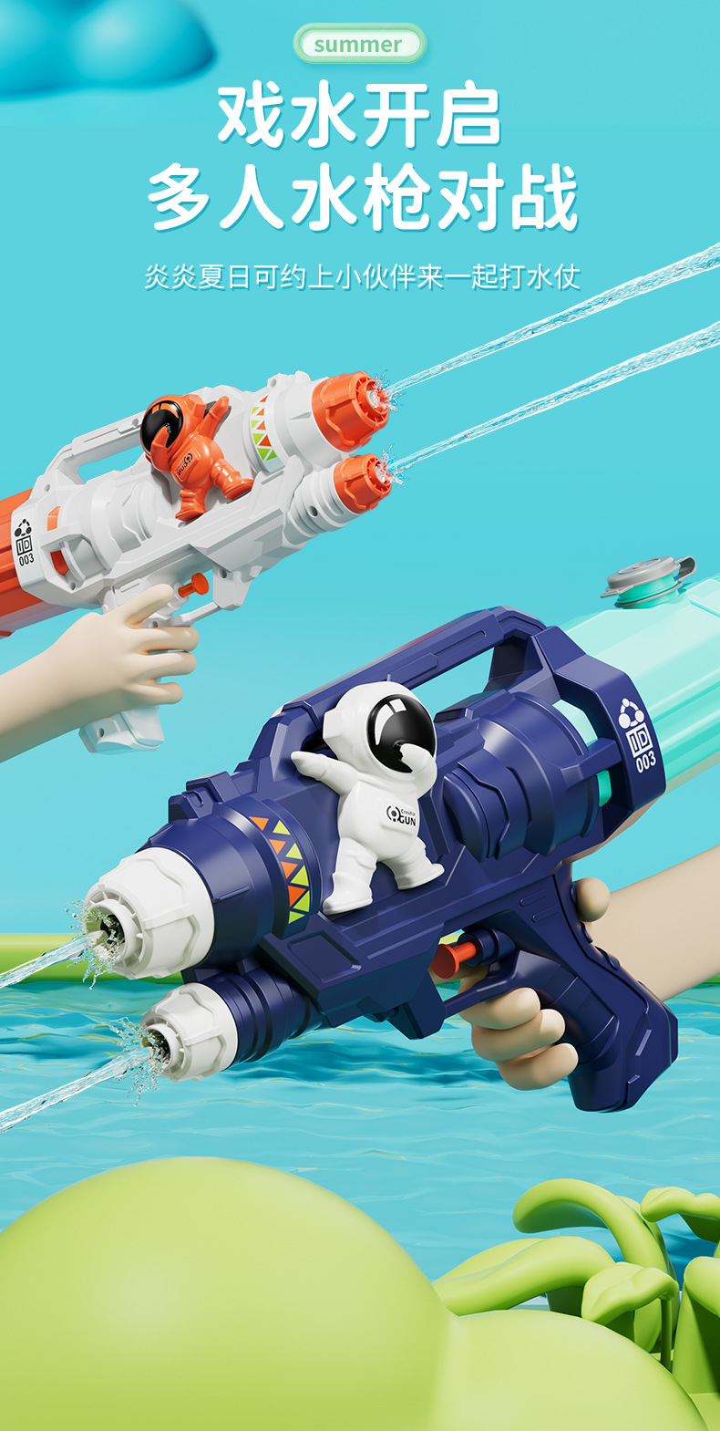 【清凉大作战!双喷头太空人水枪】可同时喷出两道水柱,让水枪对战更占上风,夏季戏水连发大容量鲨鱼恐龙呲水枪儿童沙滩玩具