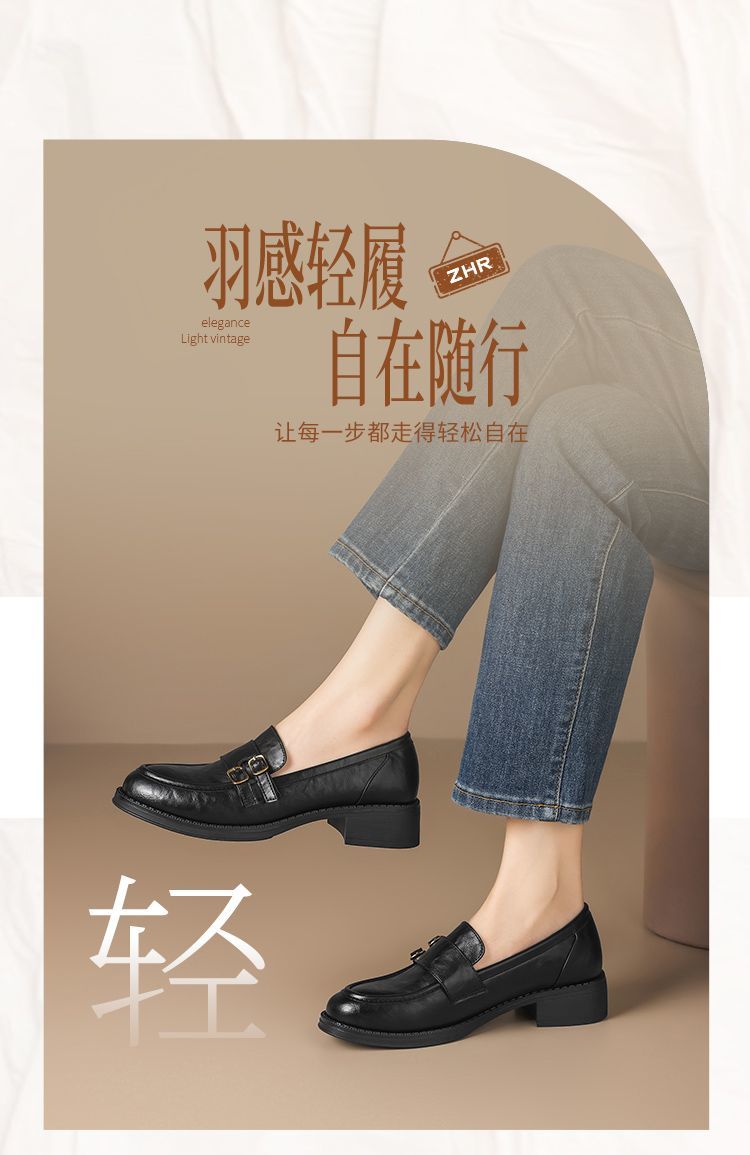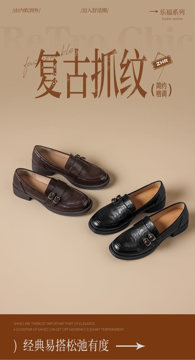 ZHR则则复古手抓纹百搭平底乐福鞋2026春季新款轻便舒适气质单鞋