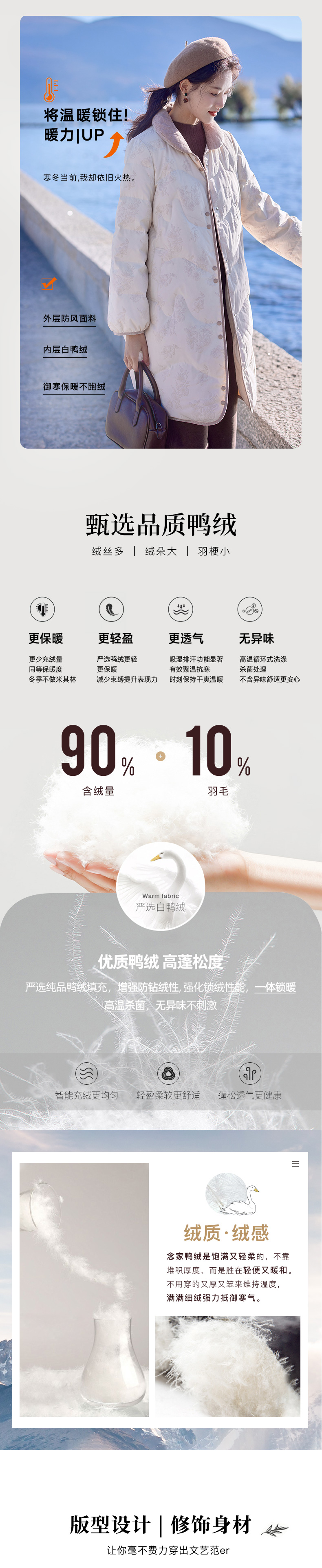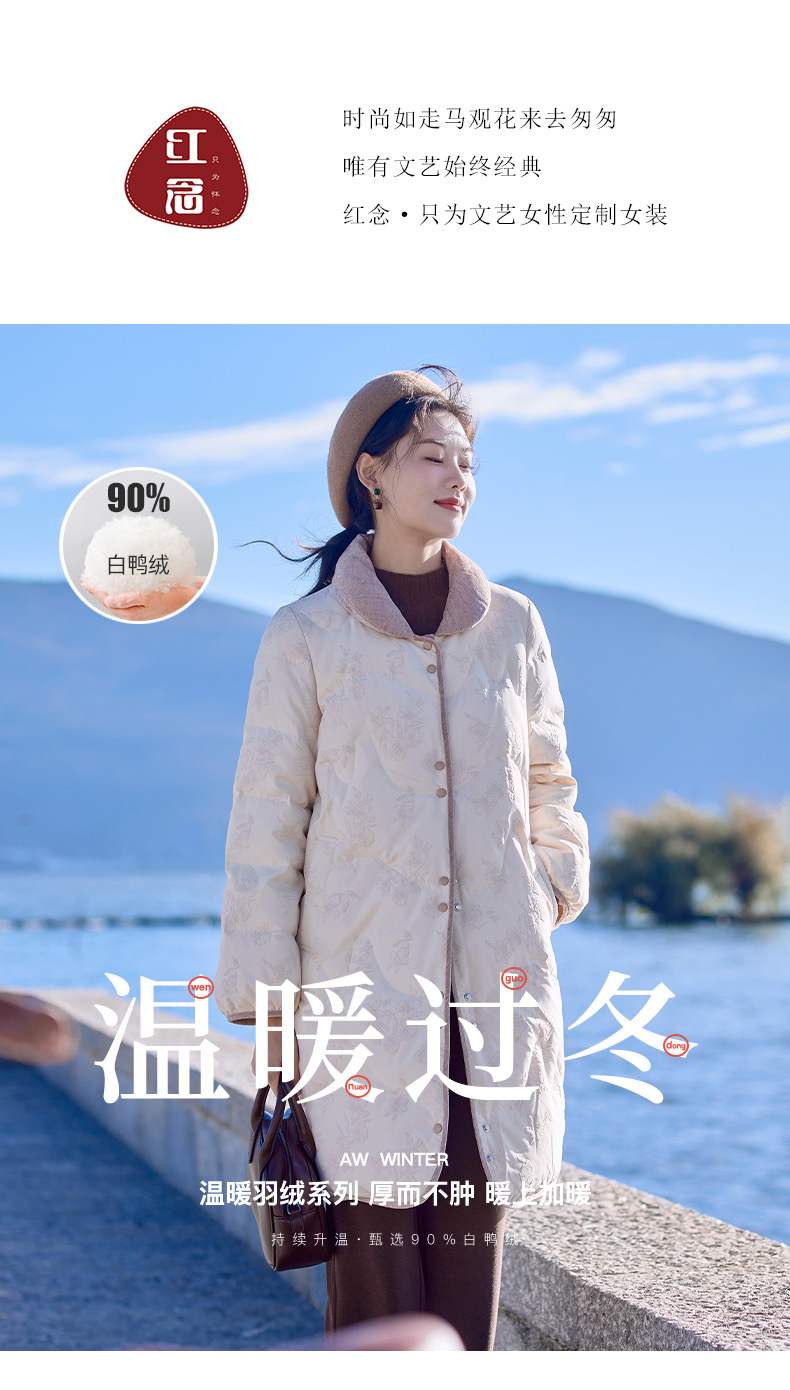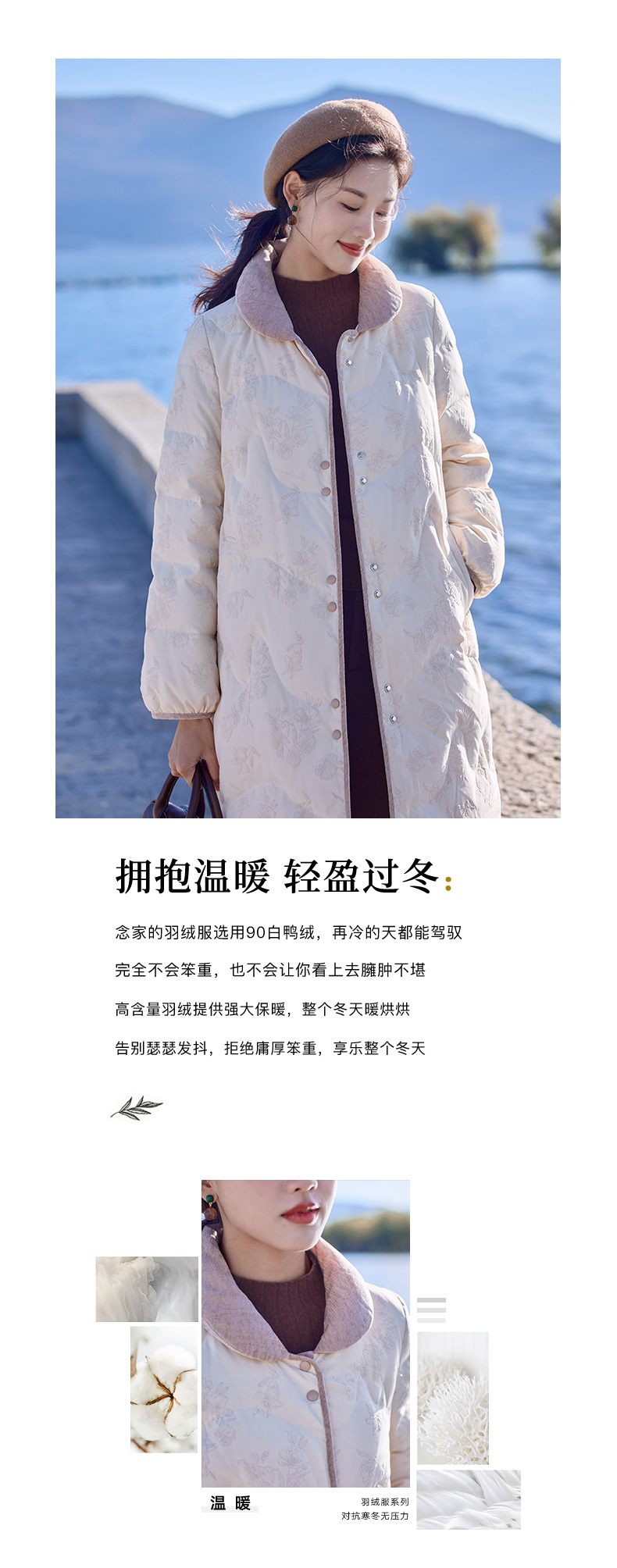 红念米杏色羽绒服女中长款设计感冬季2025年新款气质鸭绒冬装外套