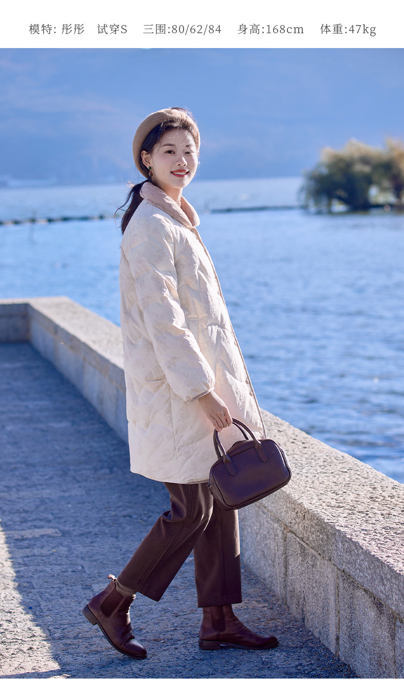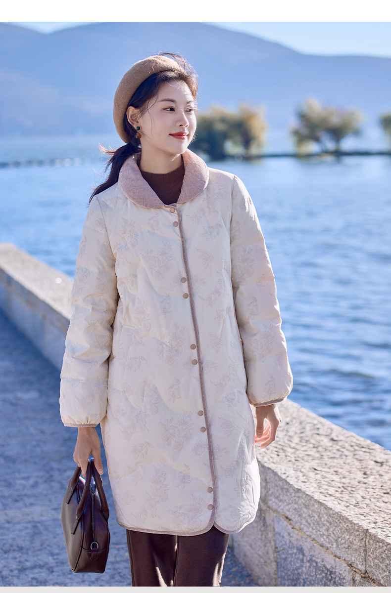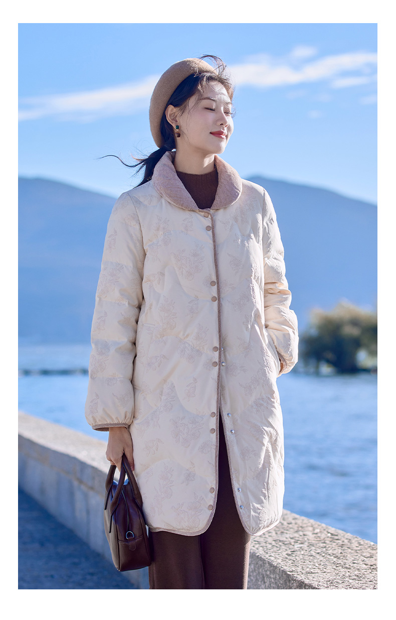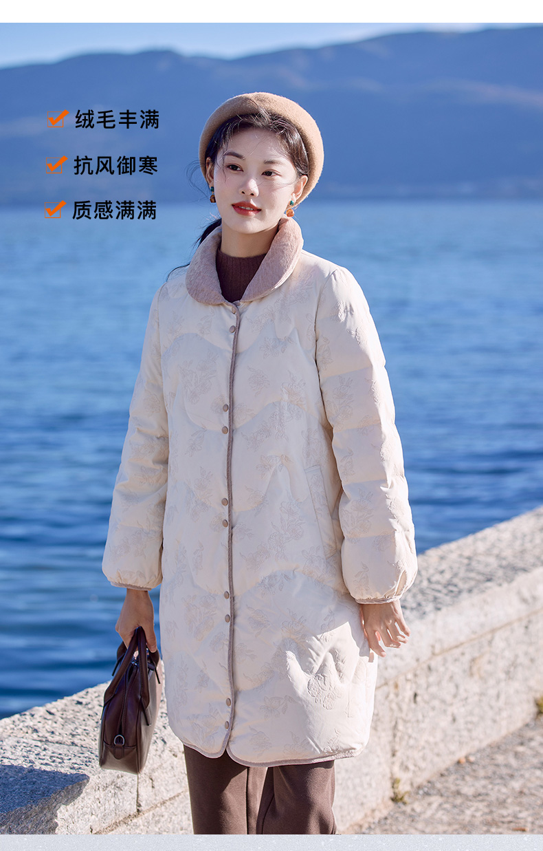 红念米杏色羽绒服女中长款设计感冬季2025年新款气质鸭绒冬装外套