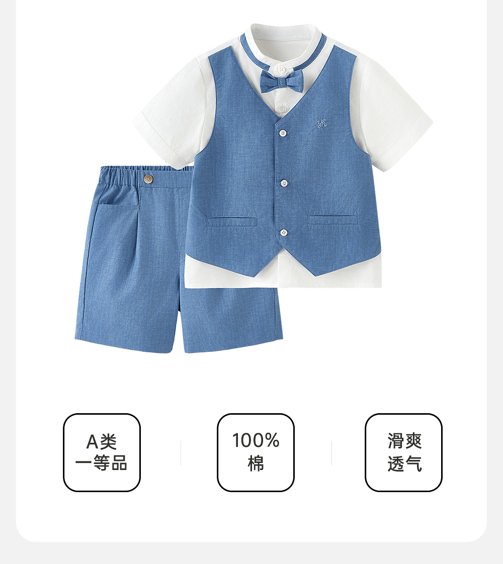 童装夏季男童纯棉短袖礼服套装T恤裤子2025新款YRABJ2R008A