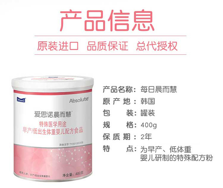 韩国原装MAEIL 爱思诺晨而慧早产婴儿配方食品400g 0-12个月【每日乳业】