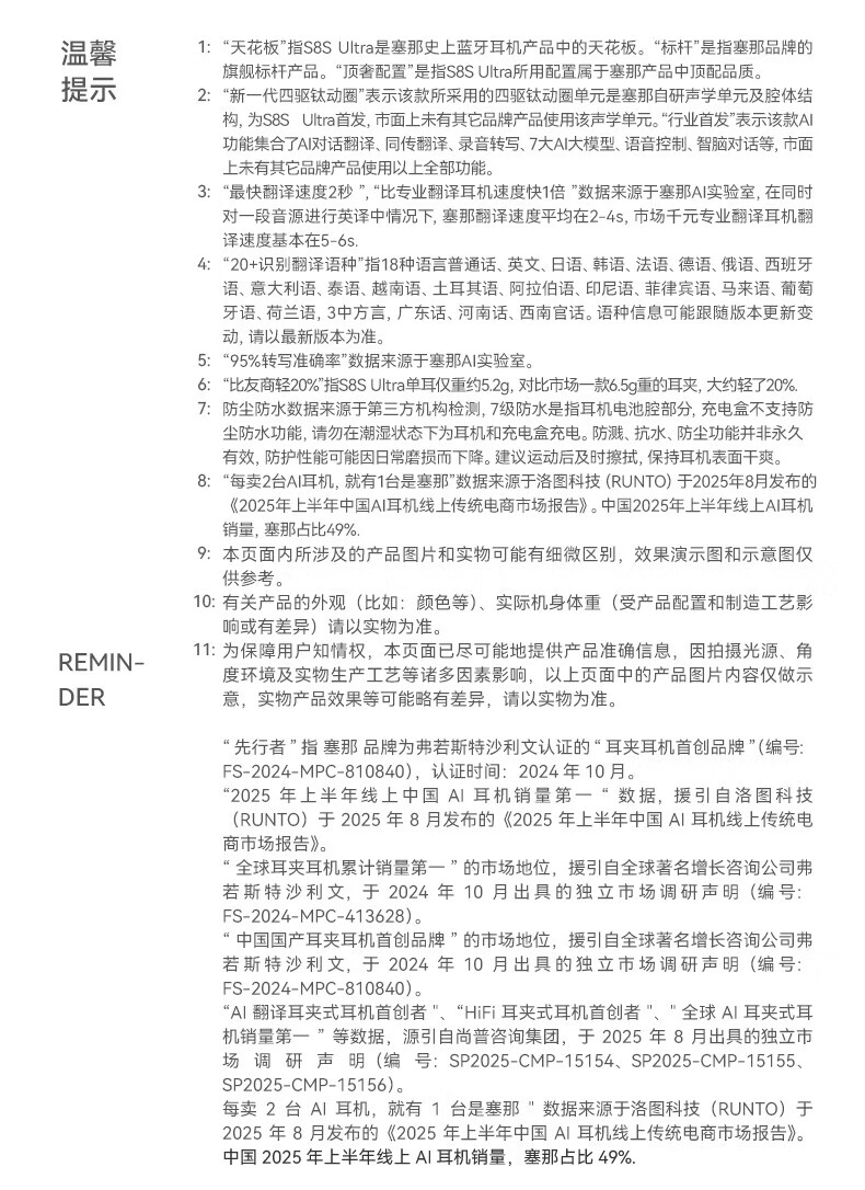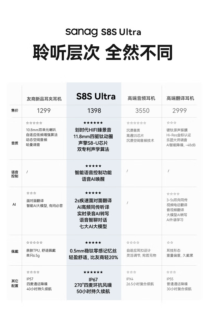 Sanag塞那 S8SUltra耳机 S-S8SUltra-CL