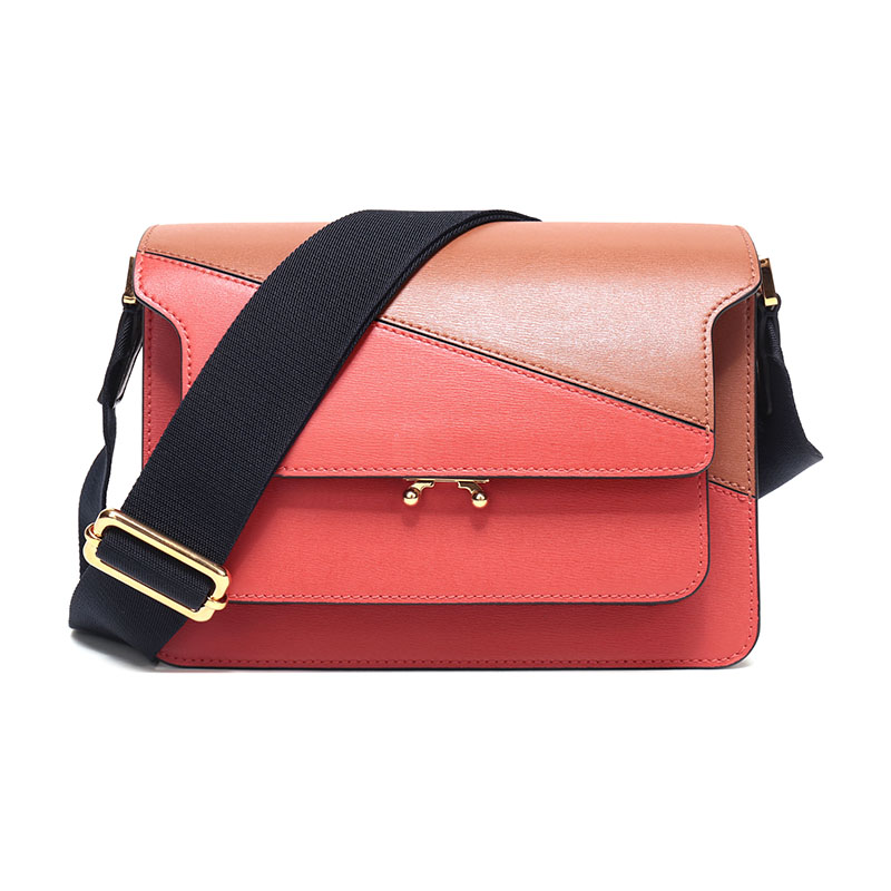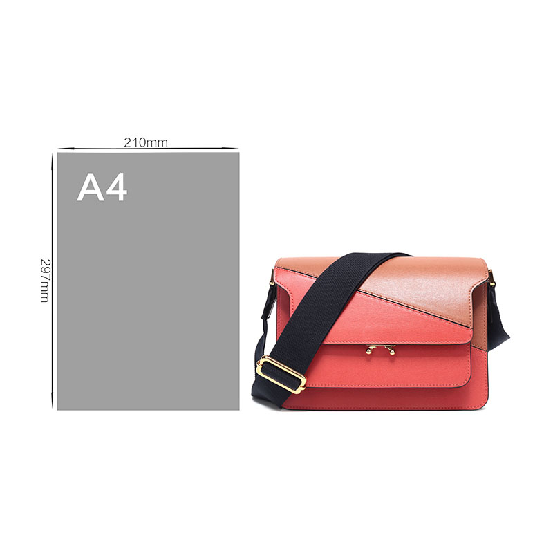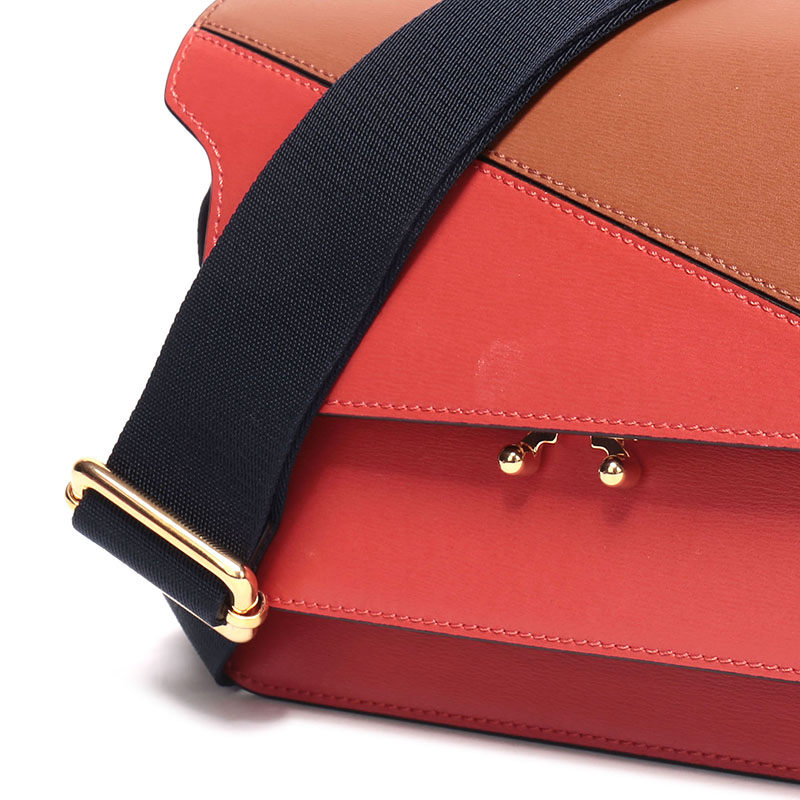 品牌:MARNI/玛尼产地:意大利等国(批次不同,产地不同)款式:女士产品颜色:橘红色棕色拼色材质:牛皮产品结构:卡扣翻盖开合,内置3个主袋,2个拉链隔袋,1个贴袋,外置1个贴袋产品尺寸:宽约23cm,高约16cm,宽约12cm,可调节肩带长约115cm,宽约4cm(注:所有尺寸皆为手工测量,存在误差,请以实物为准!)