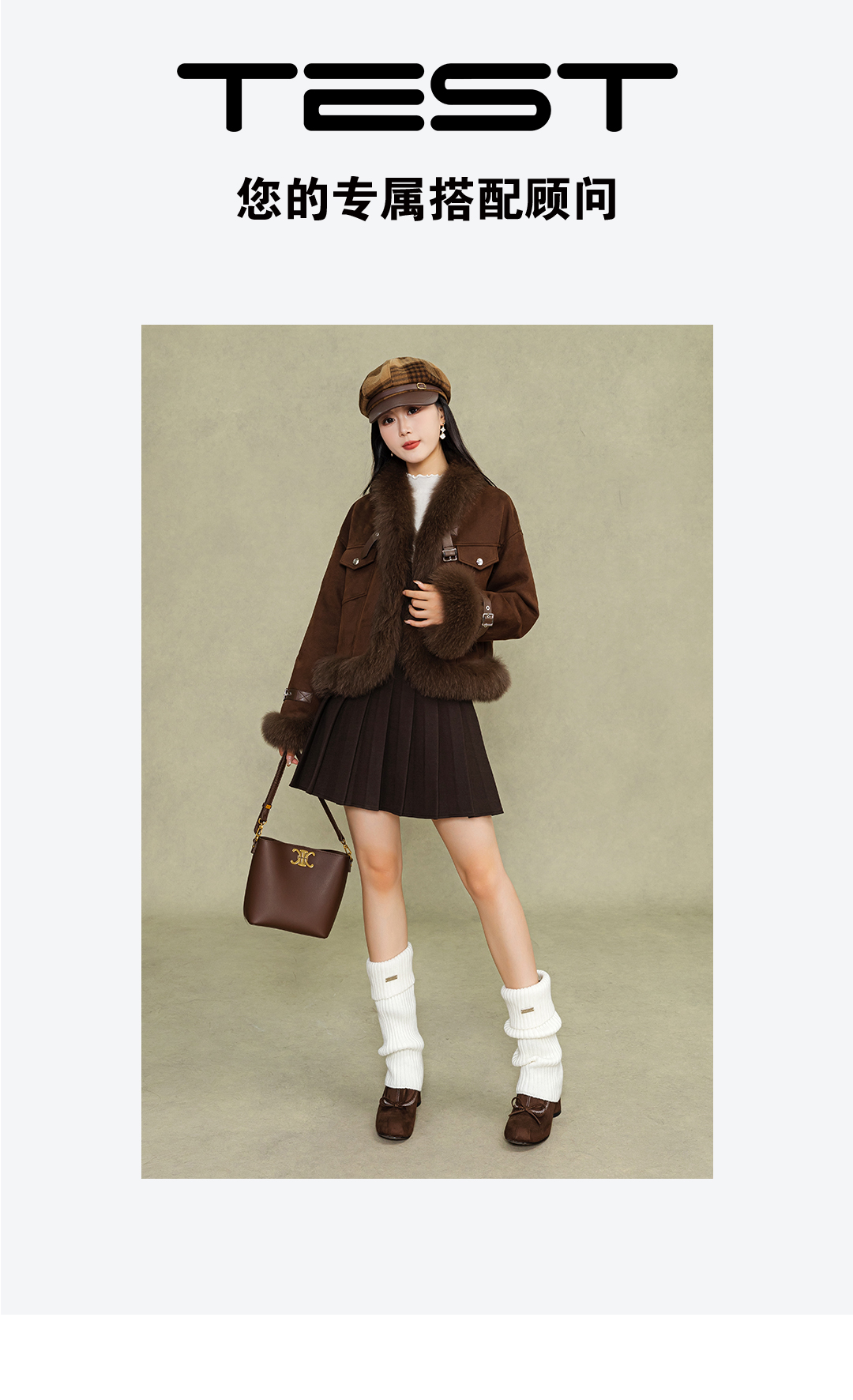 冬上新深棕麂皮毛绒拼接皮草外套2254158 商品图3