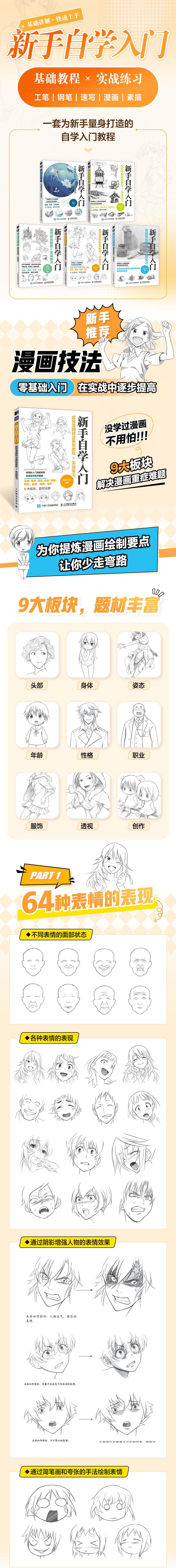 为了让读者少走弯路,本书为大家提炼好了全书的要点:64种表情的表现、6种头身的表现、5种人体的绘制、17种姿态的表现、6种性格的表现、6种角色的表现、5种服装的表现和4种透视的表现,学习完本书后,选择正确的方法进行勤奋练习,大家就能绘制出精美的人物造型。