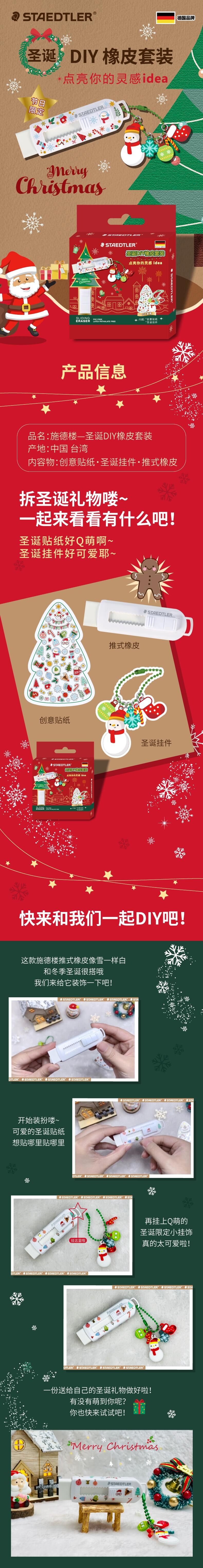 德国施德楼圣诞限定款绘图小学生用自动伸缩推拉式橡皮擦铅笔绘画美术儿童专用无碎屑不留痕橡皮擦