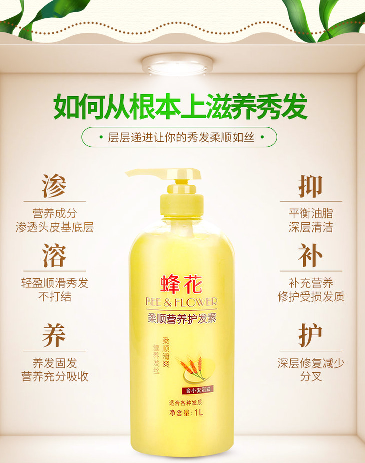 【蜂花】柔亮/柔顺营养护发素1.08L
