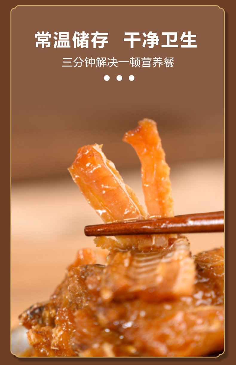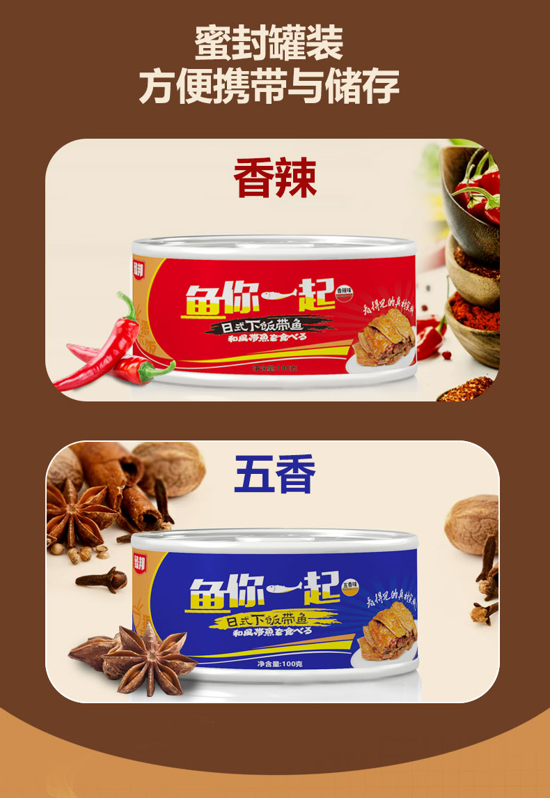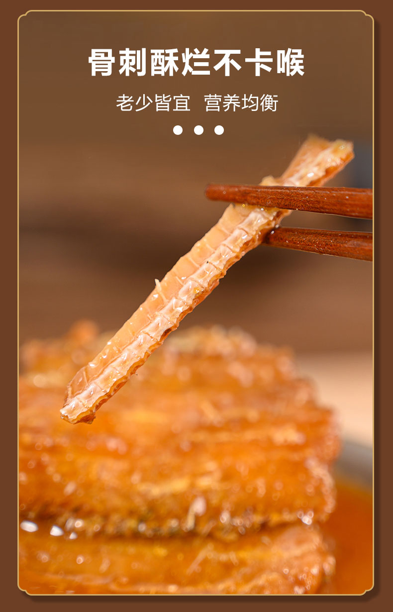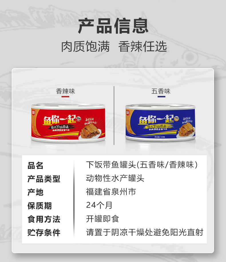 2、经高温杀菌工艺的带鱼,骨刺酥烂不卡喉、老少皆宜、百搭下饭菜。
