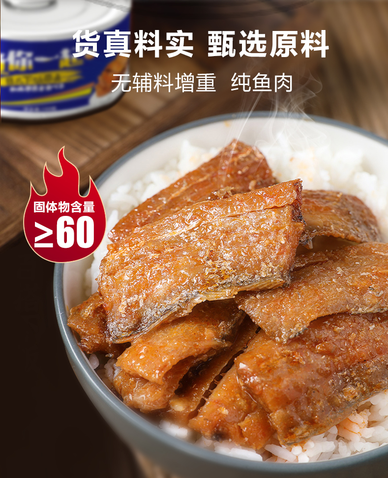 1、严选台湾海峡优质带鱼,肥美中段,酥香油亮,固形物达到60%以上,看得见的纤纤好肉,货真料足,加餐新选择。