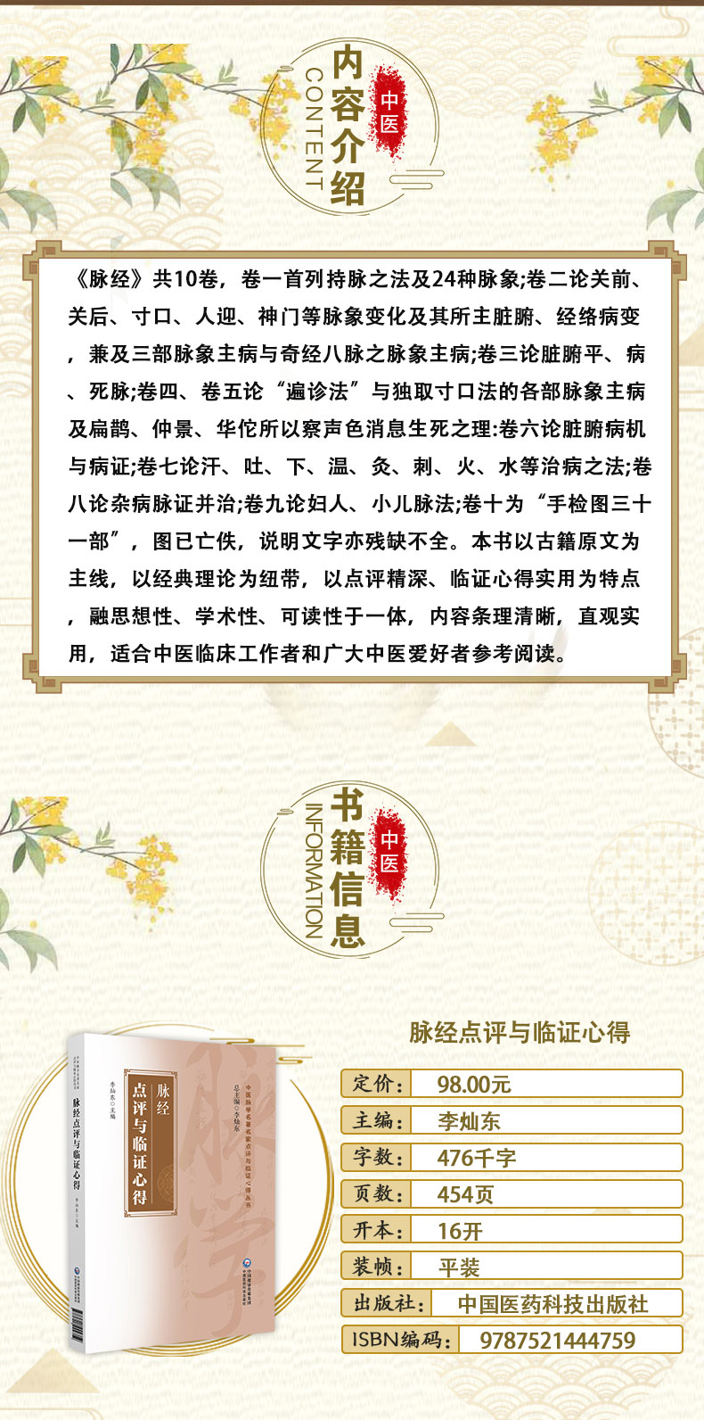 脉经点评与临证心得 中医脉学名著名家点评与临证心得丛书 李灿东 适合中医临床工作者和广大中医爱好者参考 中国医药科技出版社