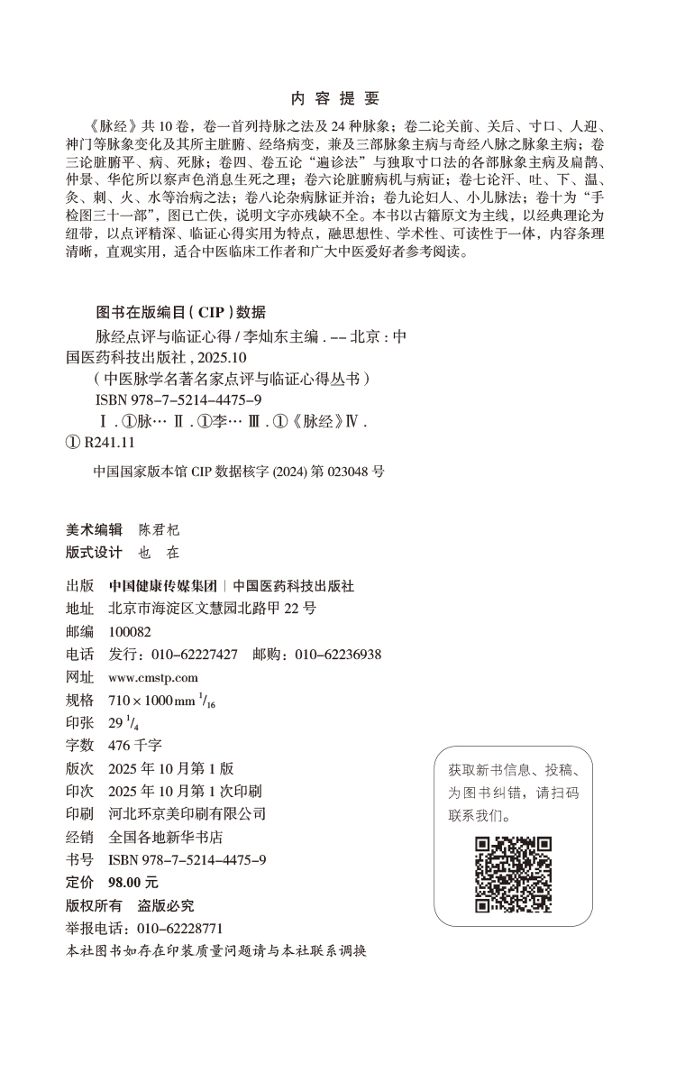 书名:脉经点评与临证心得(中医脉学名著名家点评与临证心得丛书)