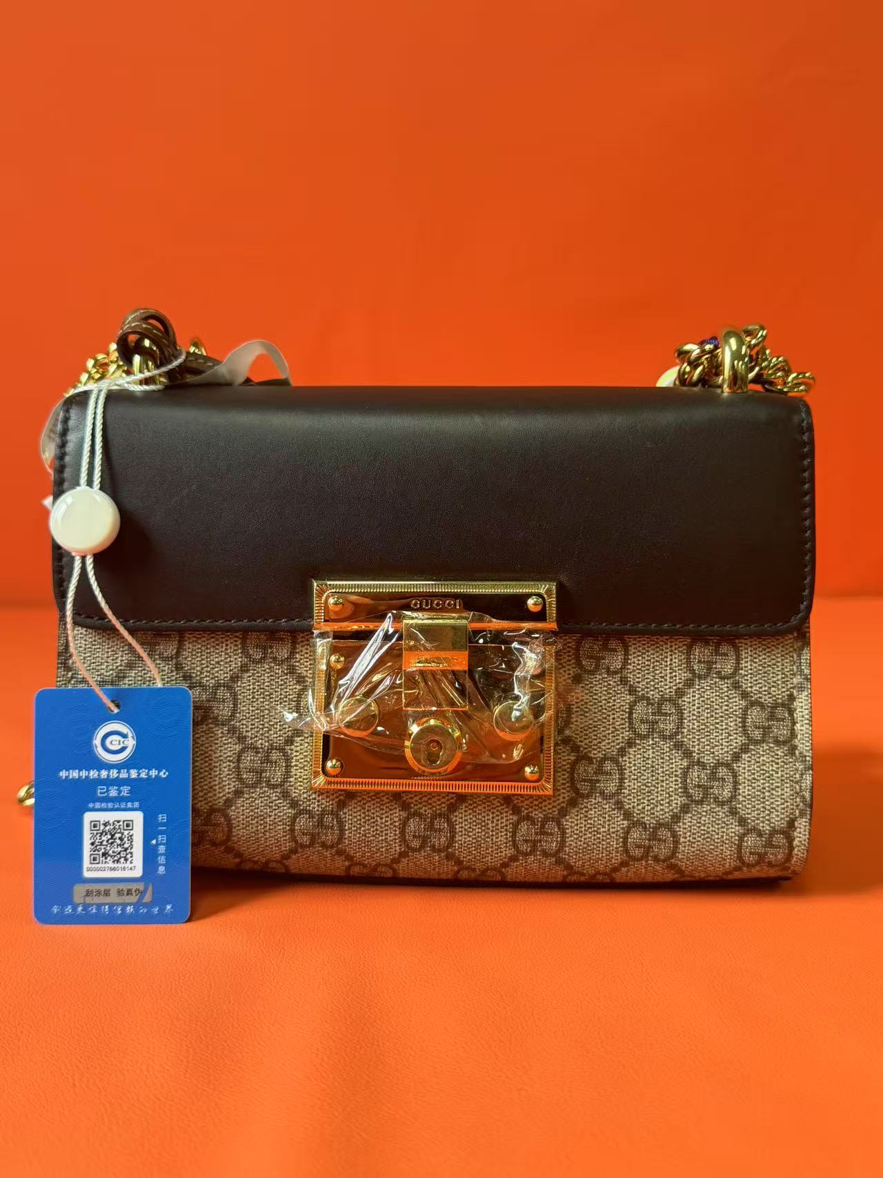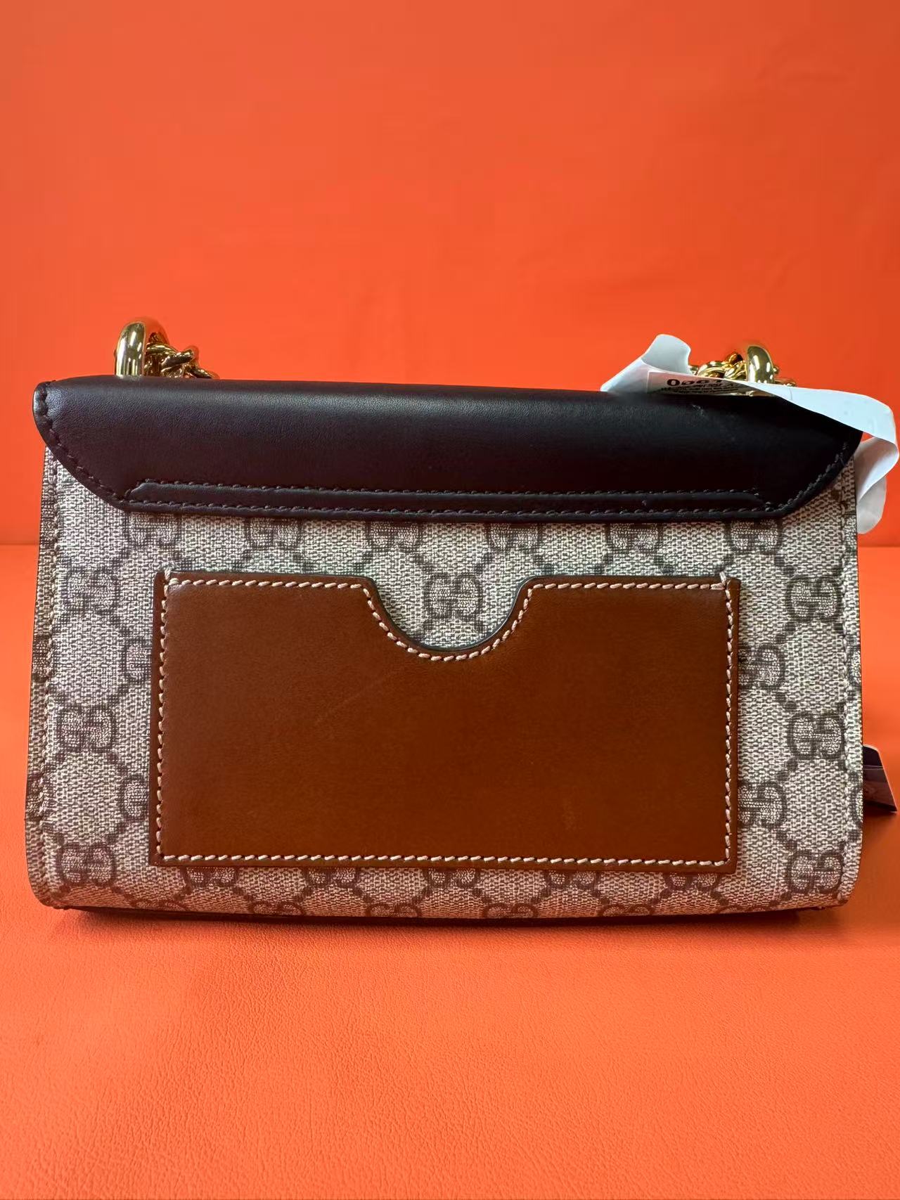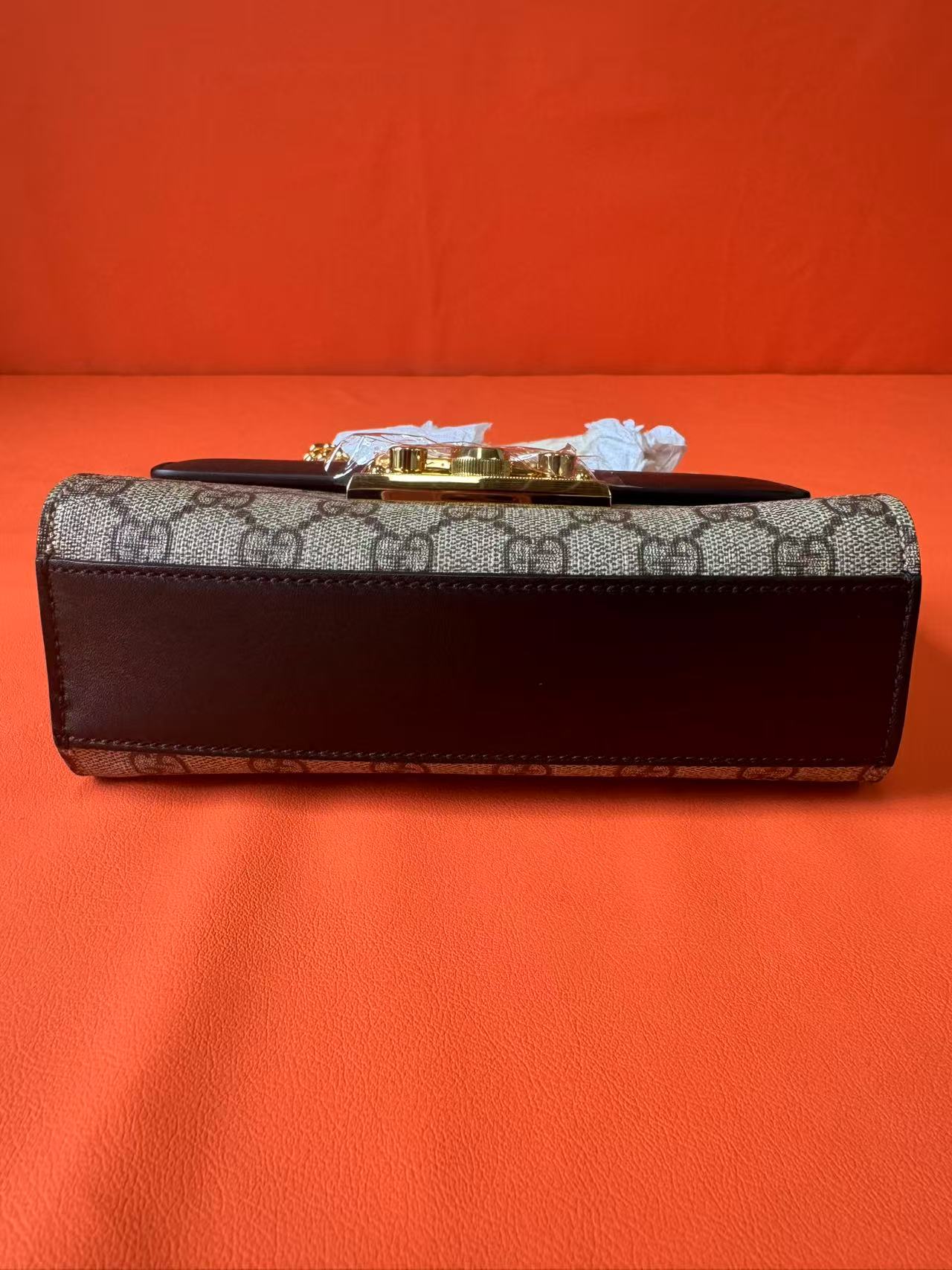 GUCCI古驰 Padlock 月光宝盒系列金属锁头老花Logo 帆布拼皮 帆布包锁扣包盒子包单肩斜挎包 小号 女款 乌木色/黑色
