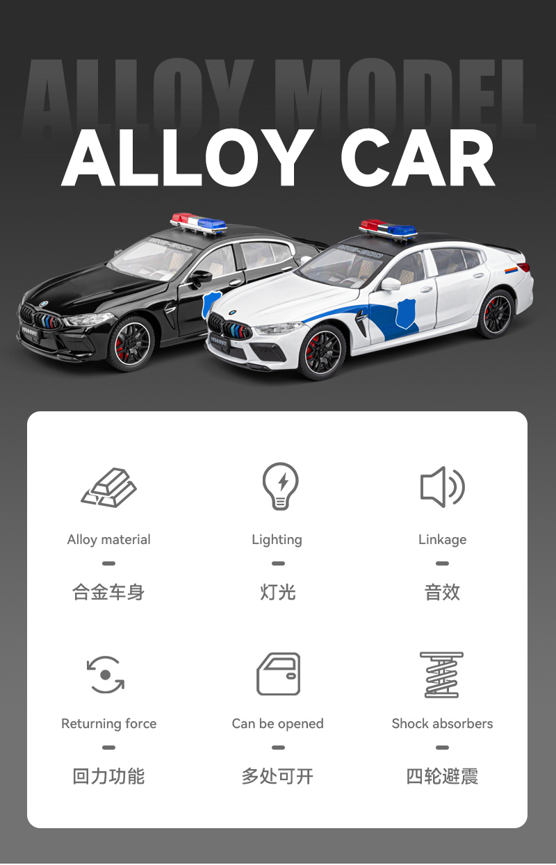 【实付满199送钥匙扣】【1:24宝马M8J车模型】合金汽车模型摆件儿童玩具车送礼仿真车模