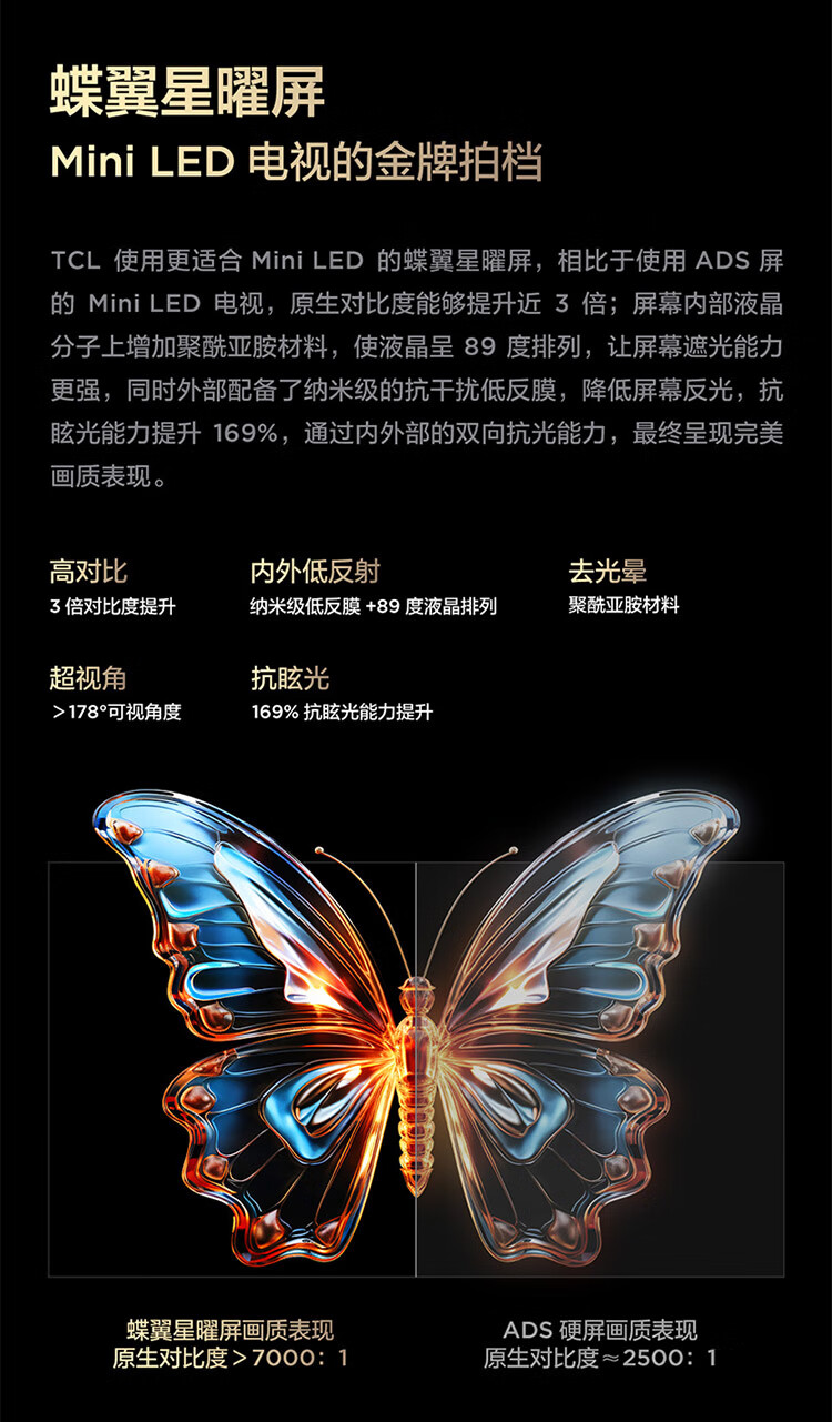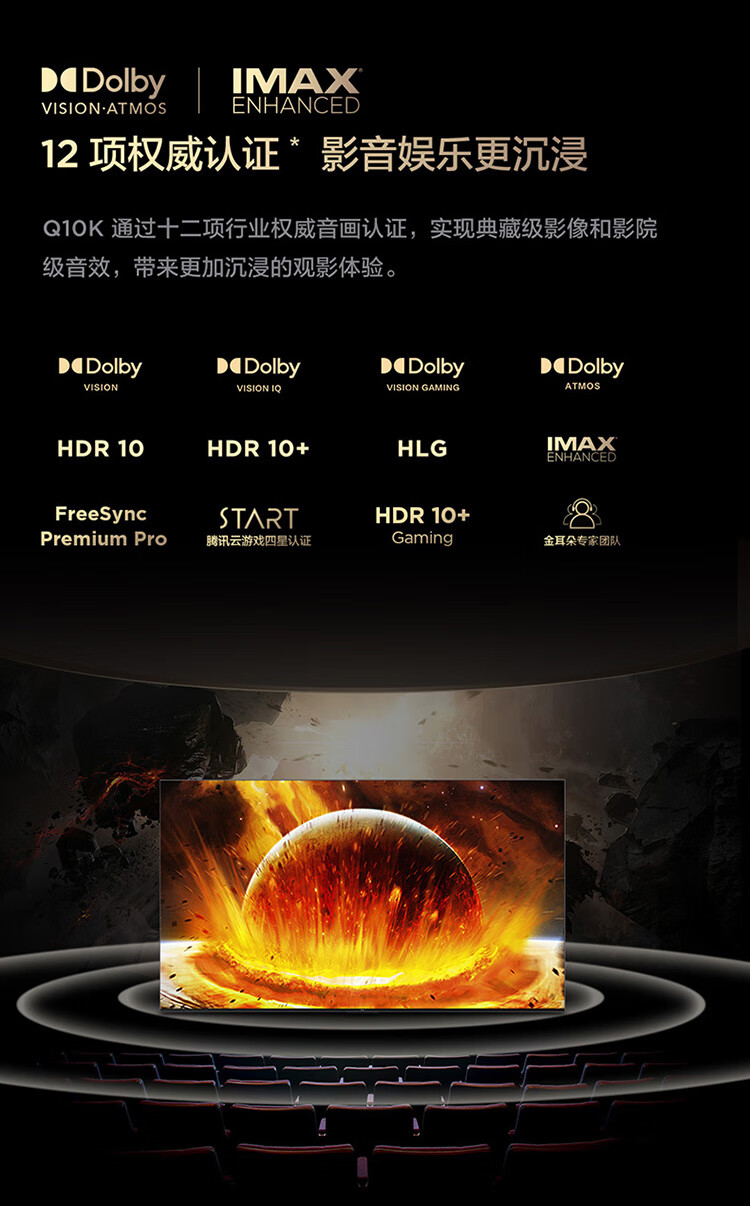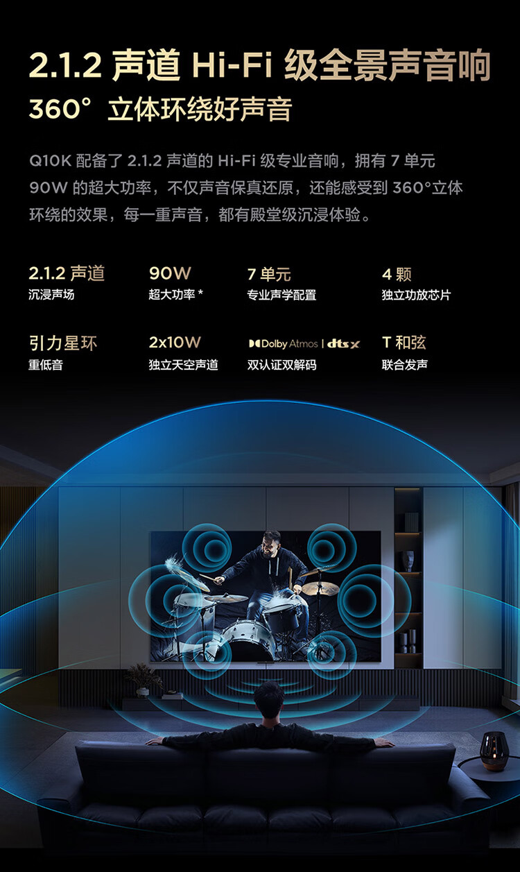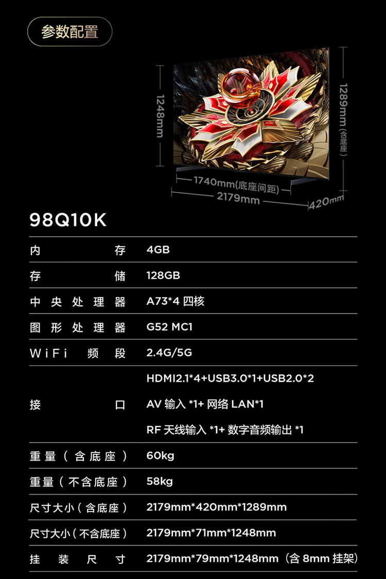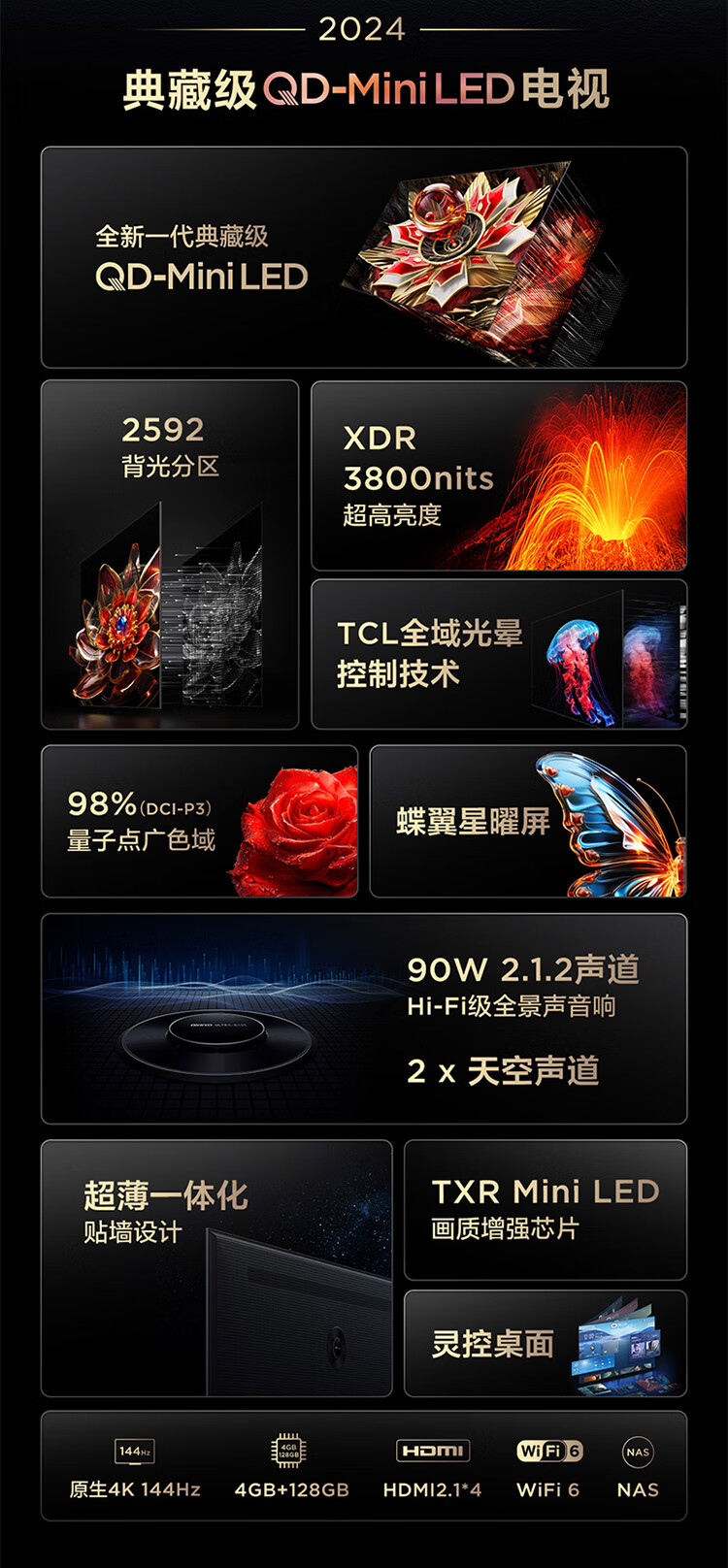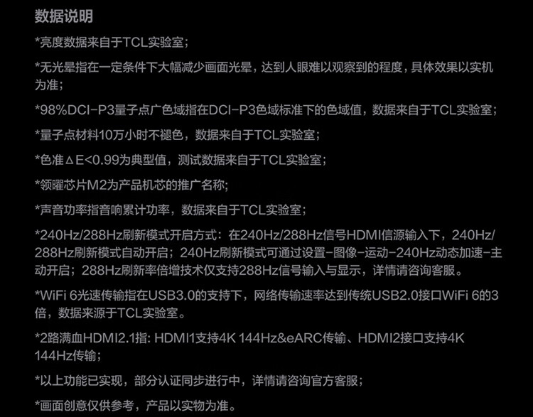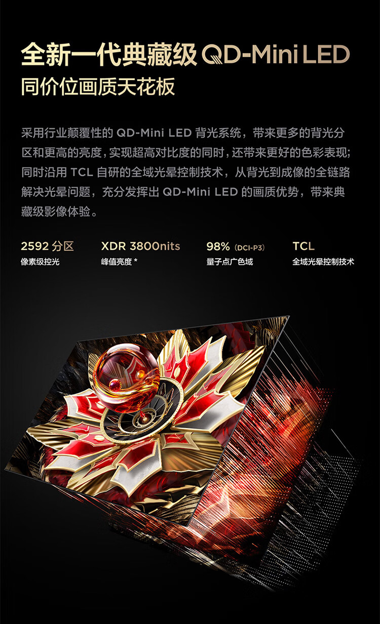 TCL电视 98Q10K 98英寸 QD-Mini LED 2592分区 XDR 3800nits DeepSeek AI电视 98/100英寸电视