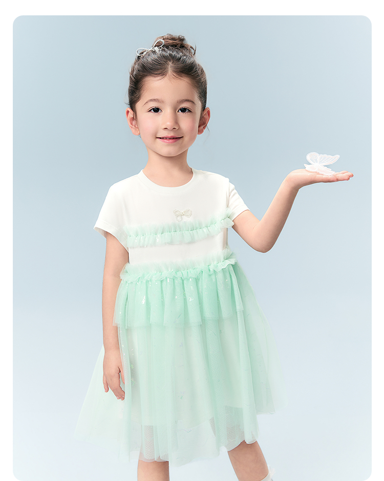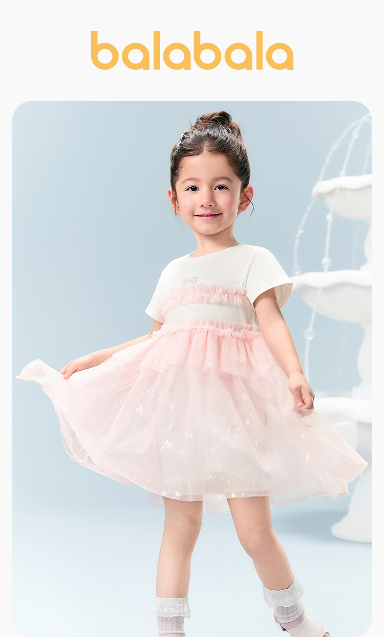 巴拉巴拉童装女童连衣裙儿童裙子2026新夏装渐变网纱裙珍珠蝴蝶结