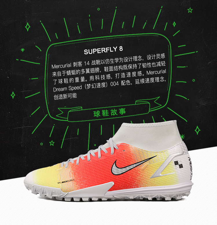 专柜正品NIKE/耐克 刺客14高帮 TF碎钉足球鞋男CV0952-118