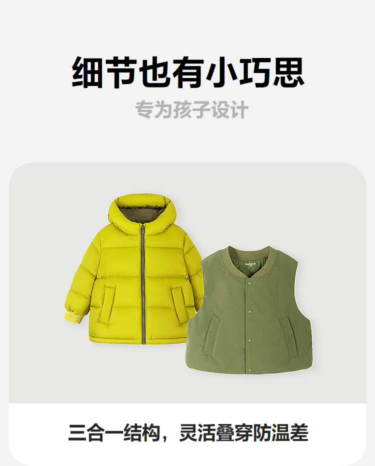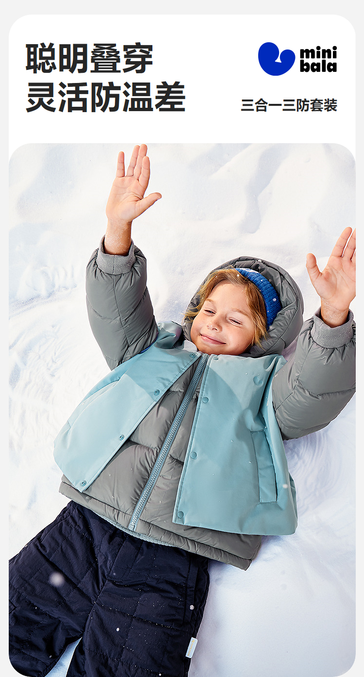 [真心绒]迷你巴拉男女童三防羽绒服儿童三合一连帽外套2025冬新款