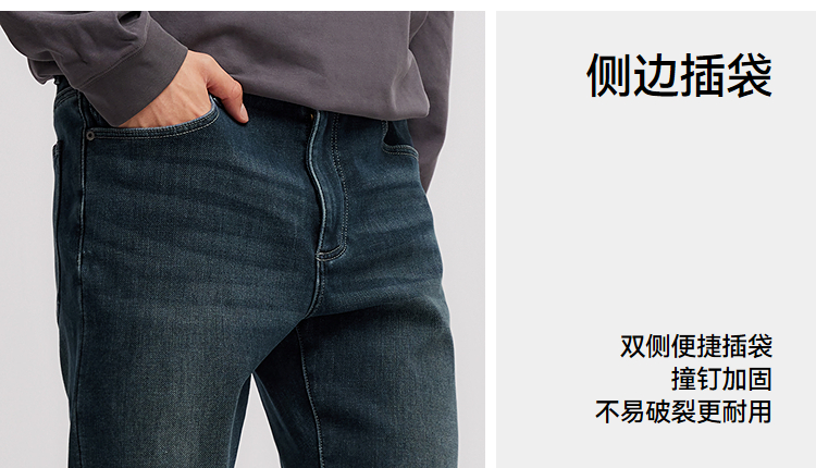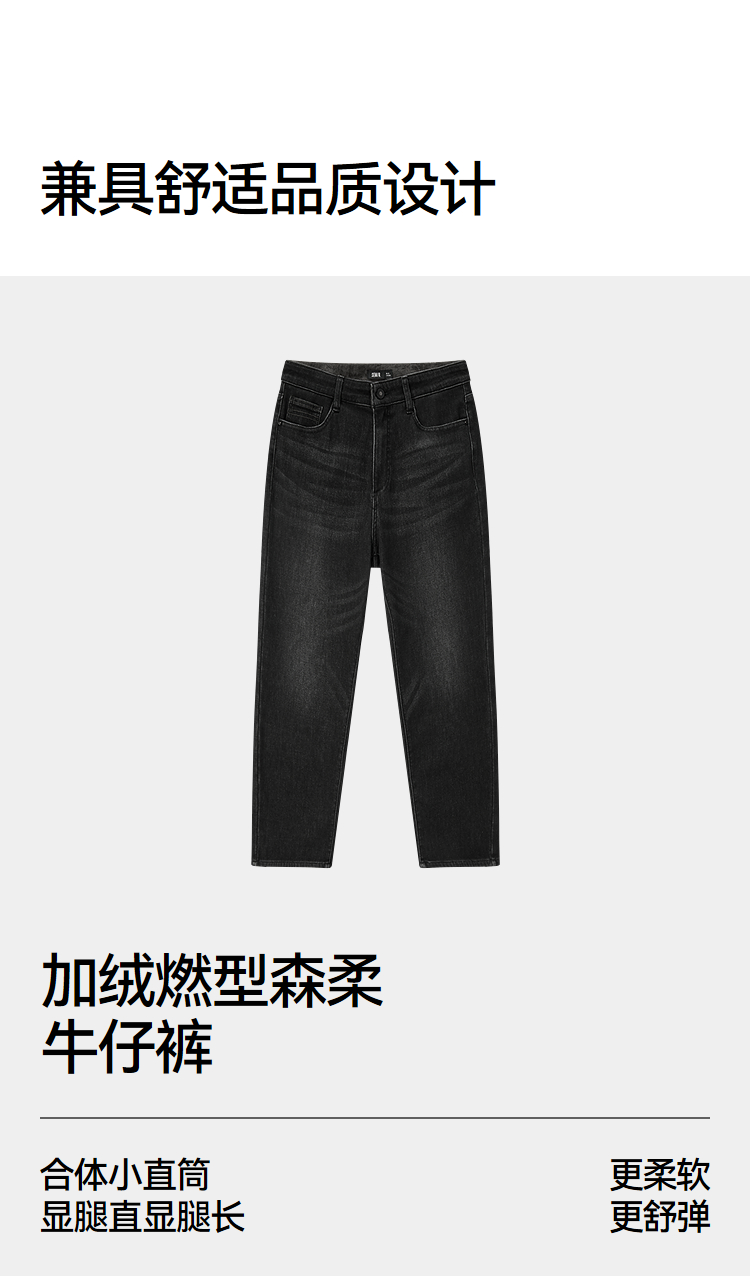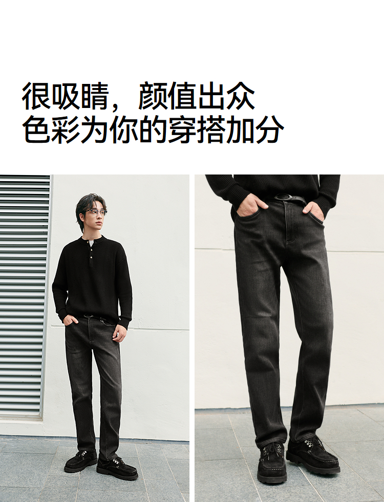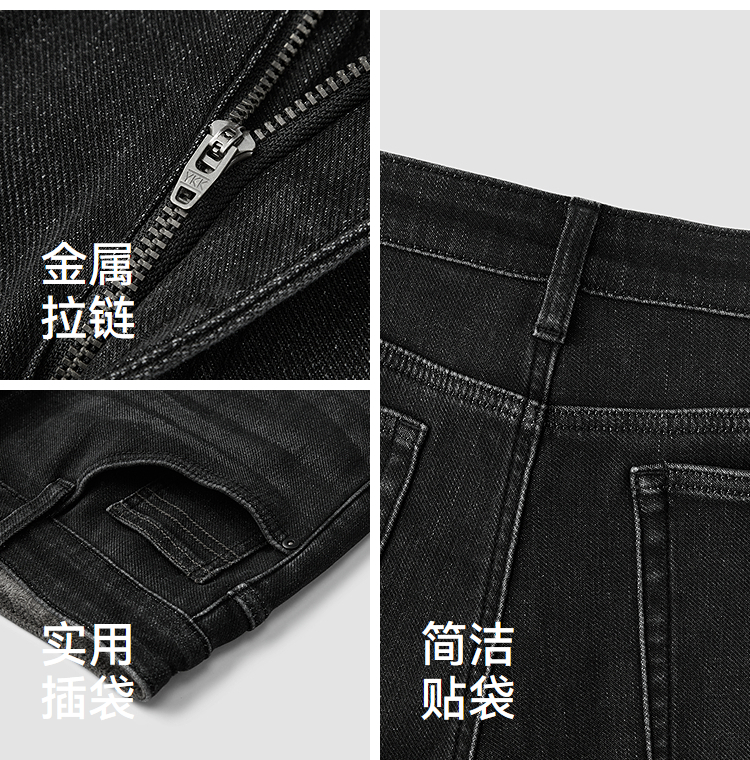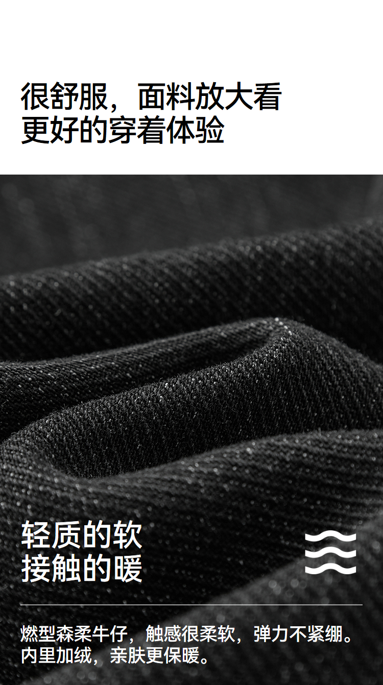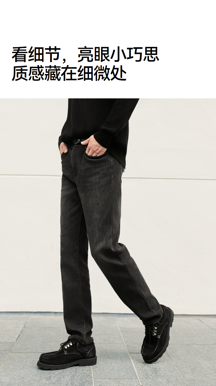 【爆品主推】森柔|森马牛仔裤男冬季加绒保暖莱卡弹力小直筒裤子百搭黑色长裤