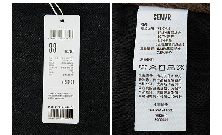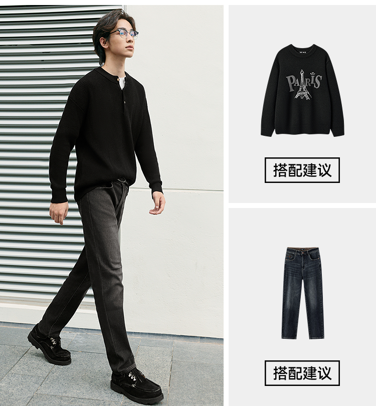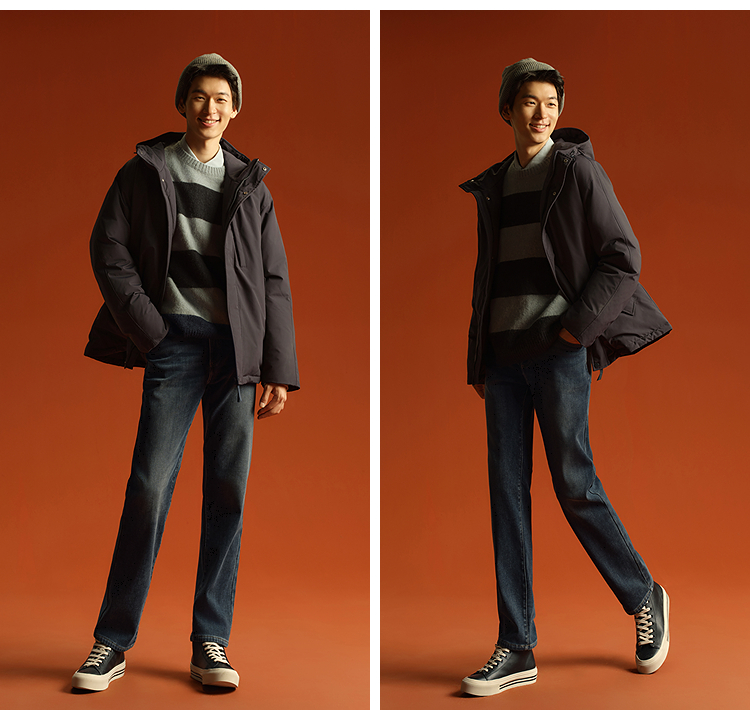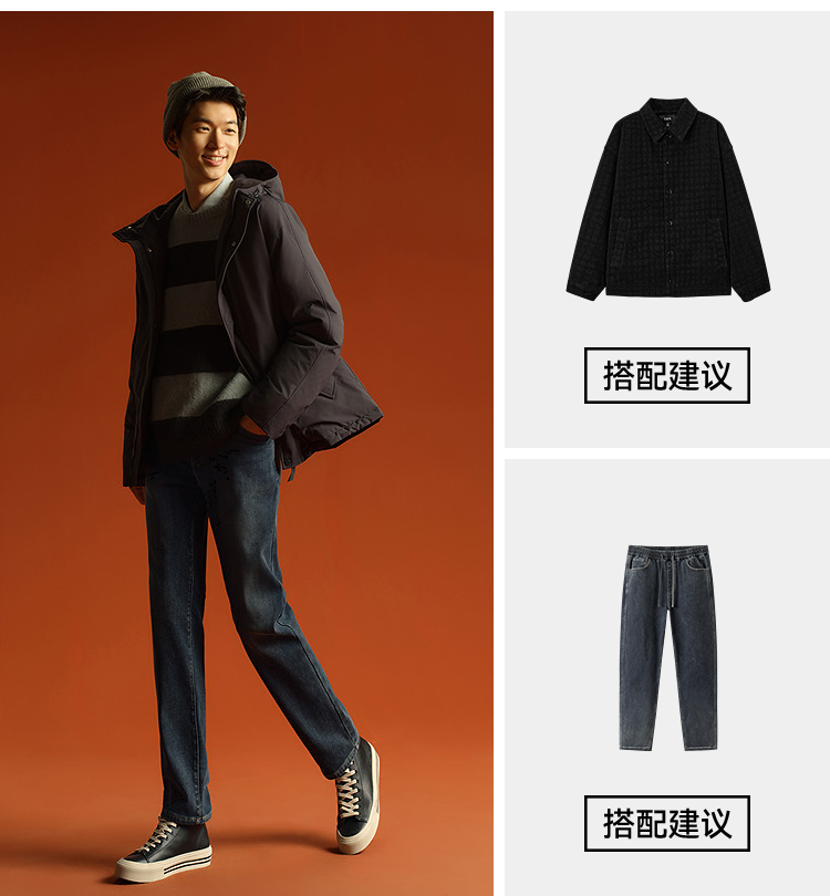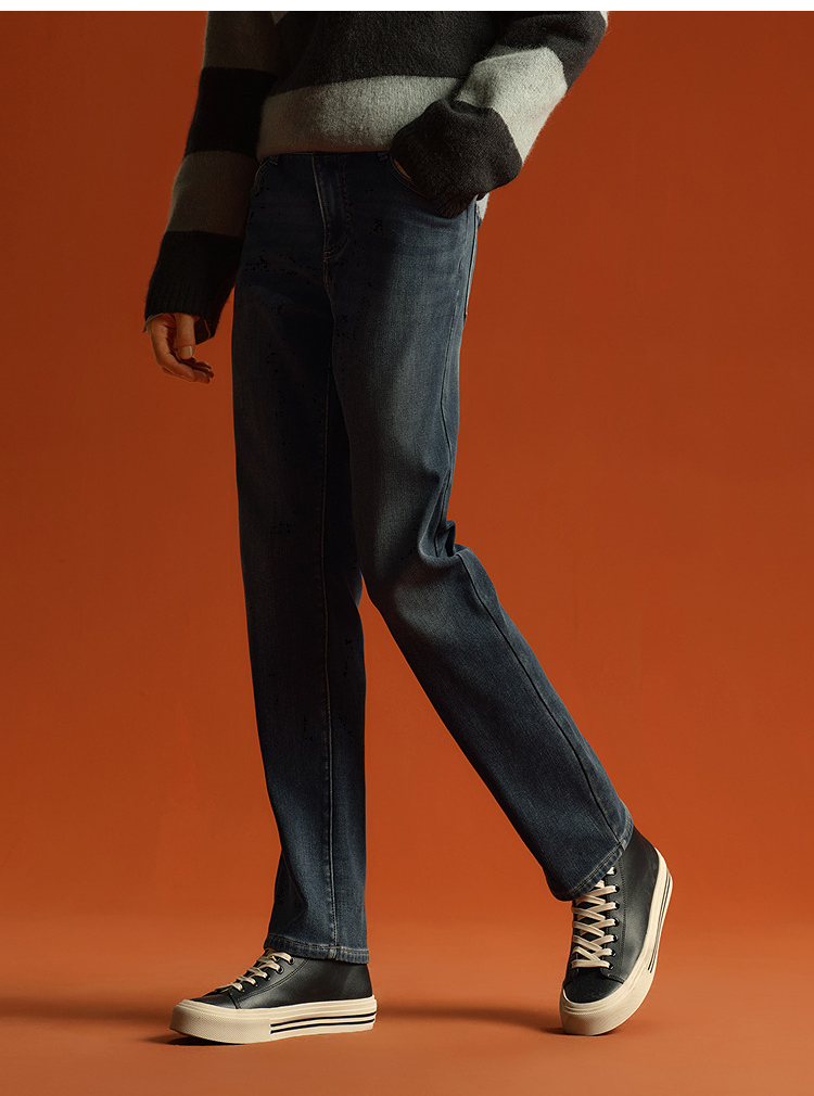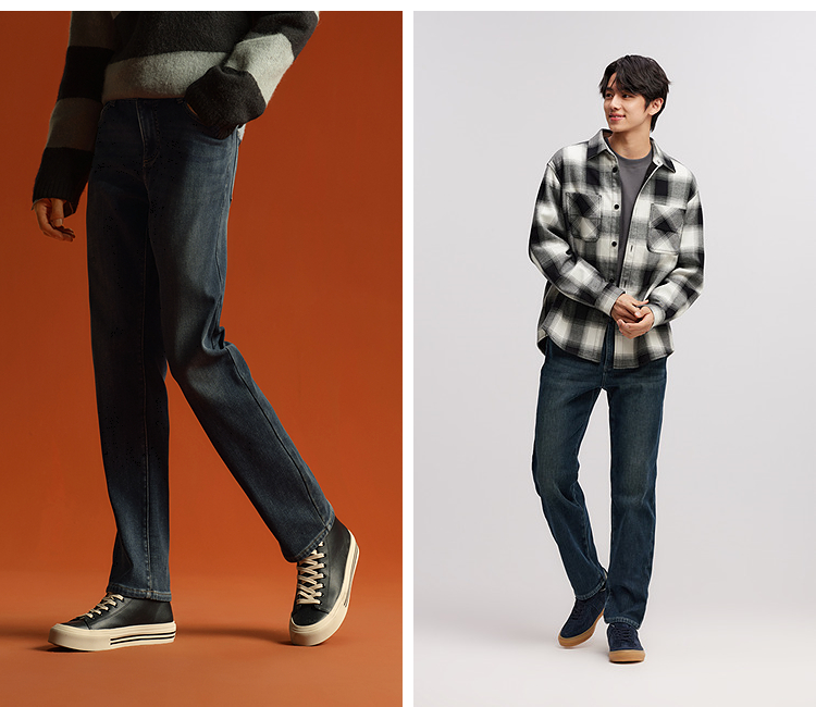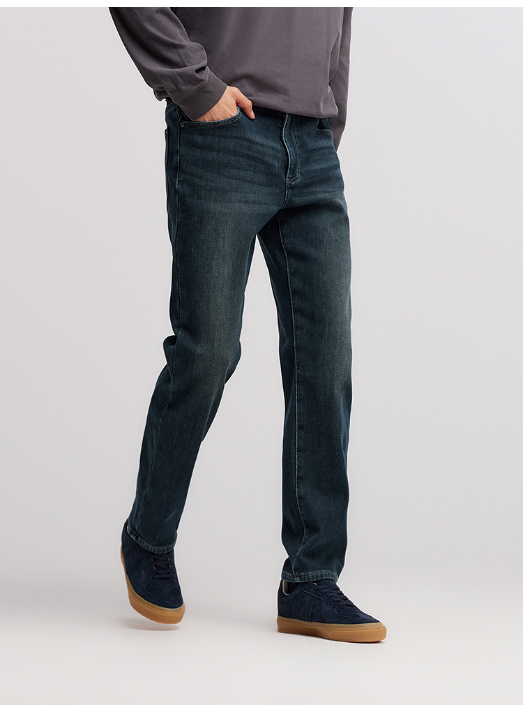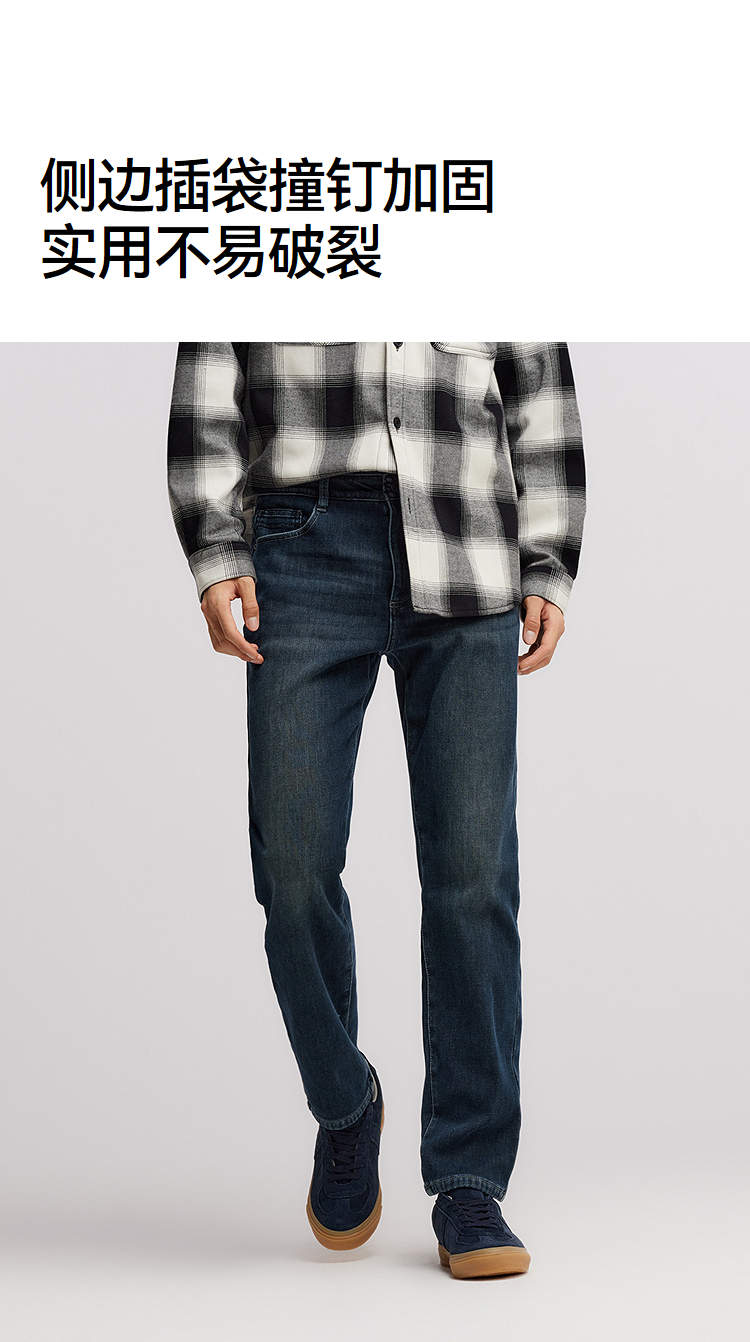 【爆品主推】森柔|森马牛仔裤男冬季加绒保暖莱卡弹力小直筒裤子百搭黑色长裤
