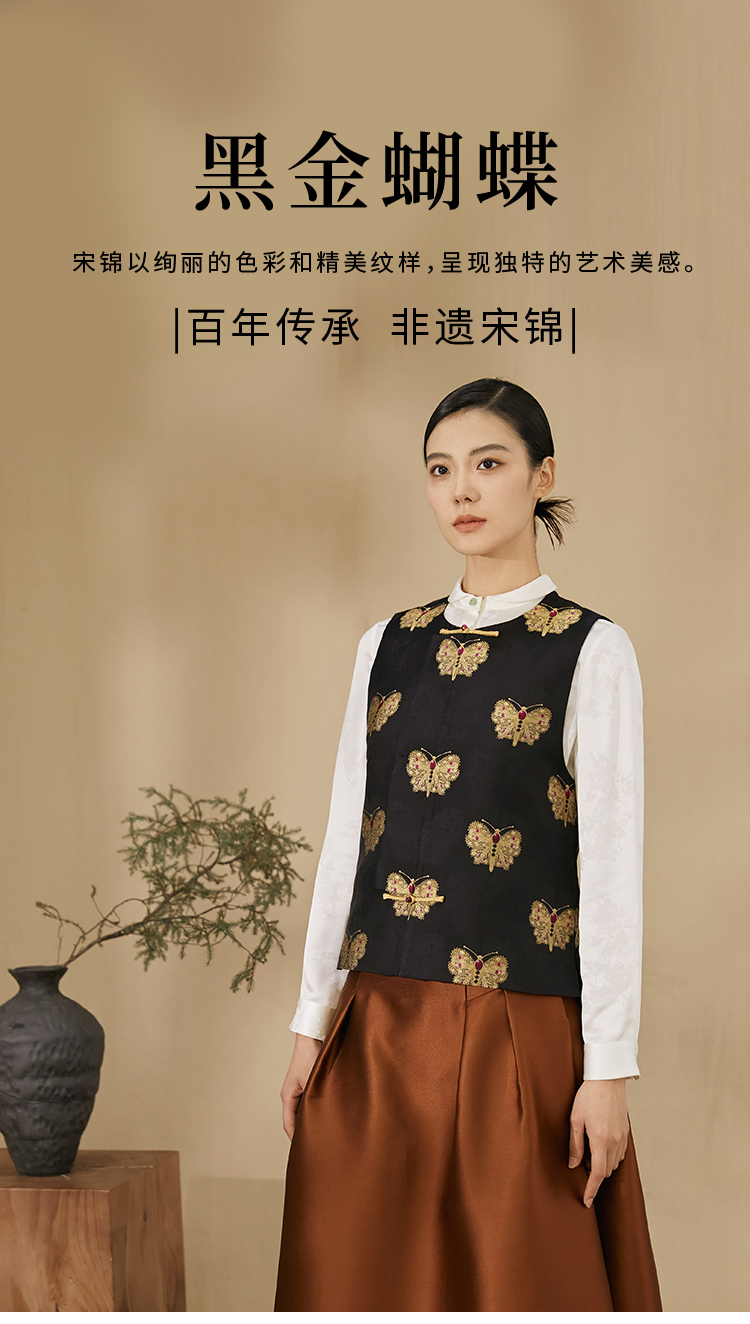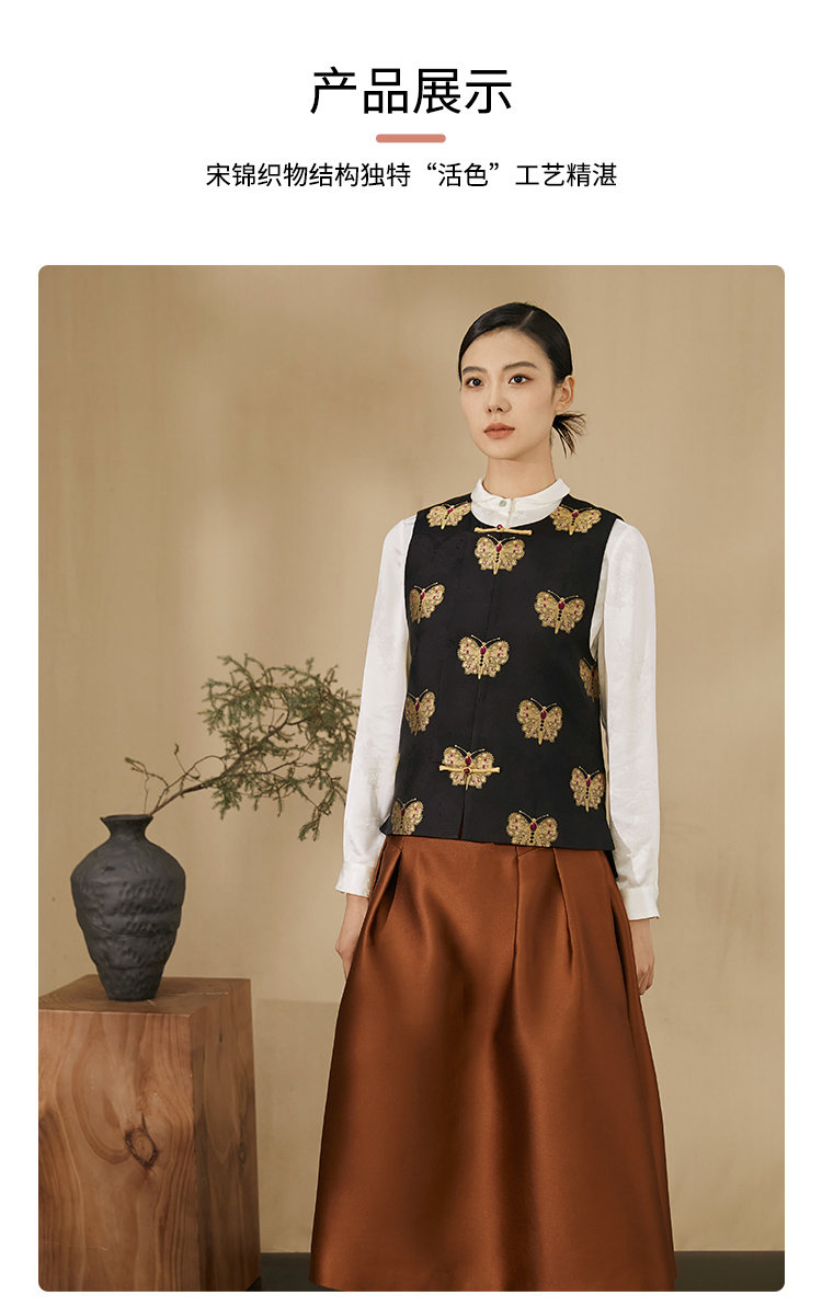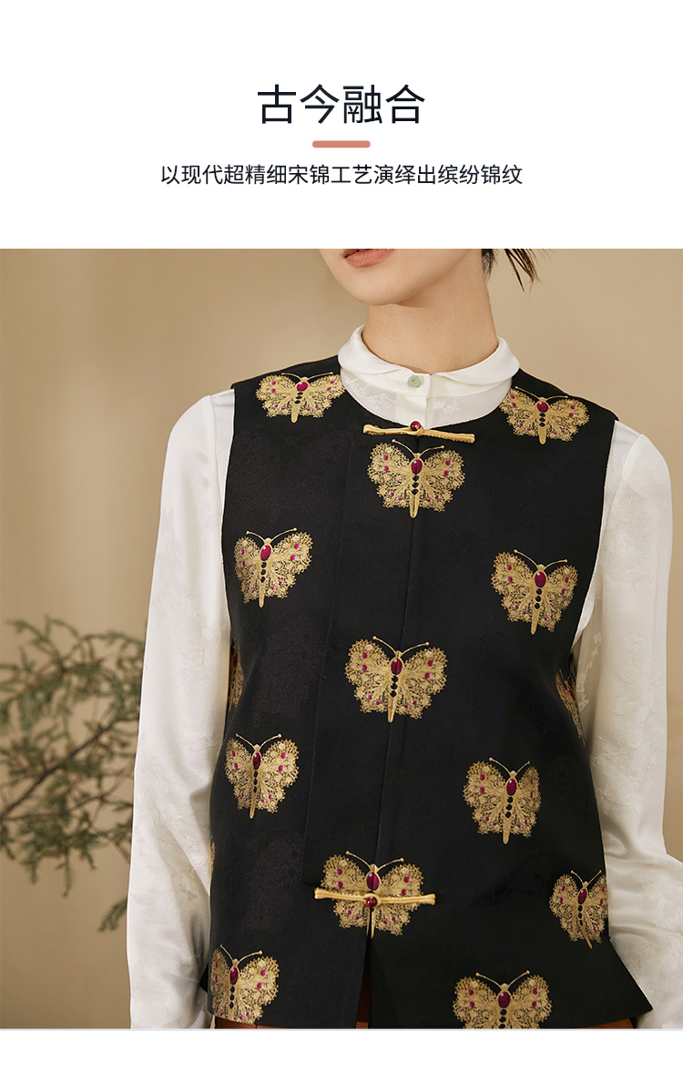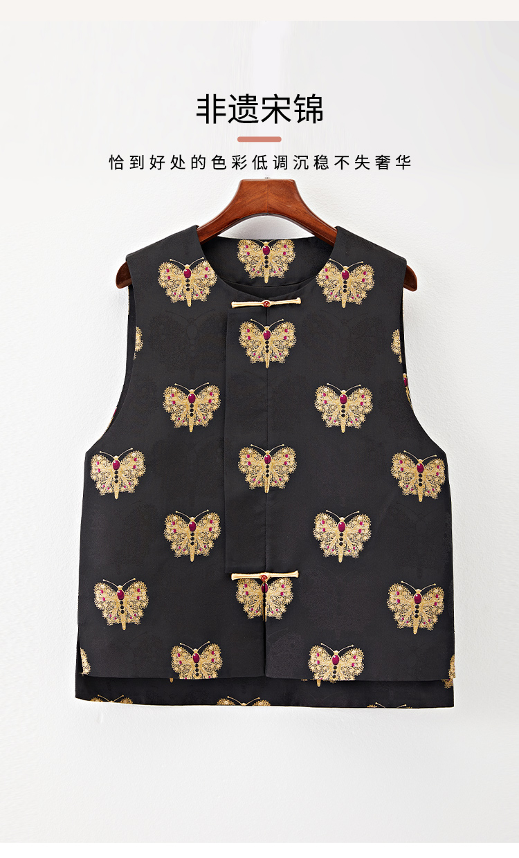 SAINTJOY/上久楷女式宋锦马甲 黑金色 DWS23070