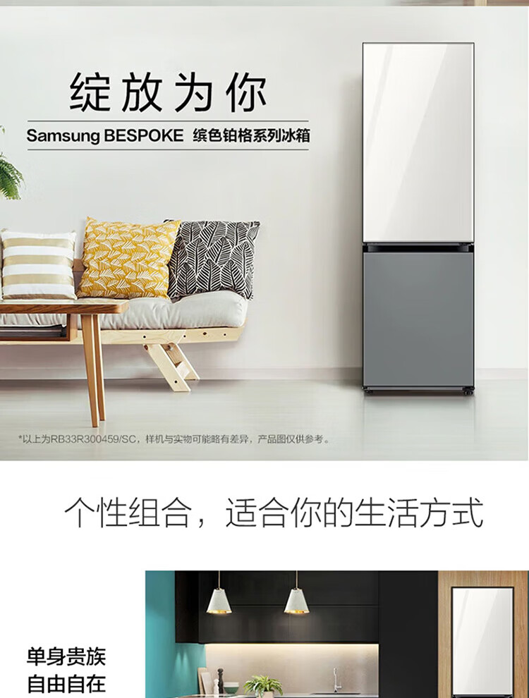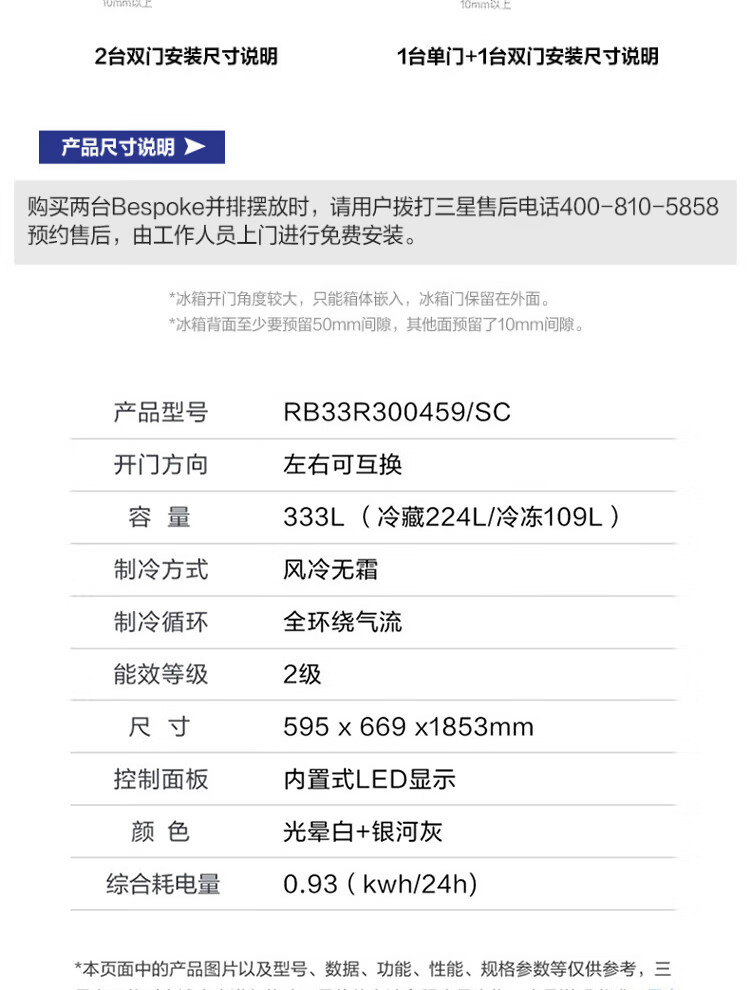 【618秒杀】三星(SAMSUNG)333升无霜冰箱 金属匀冷 冷藏冷冻可调 家电RB33R300441/SC(海军蓝) 赠800元话费