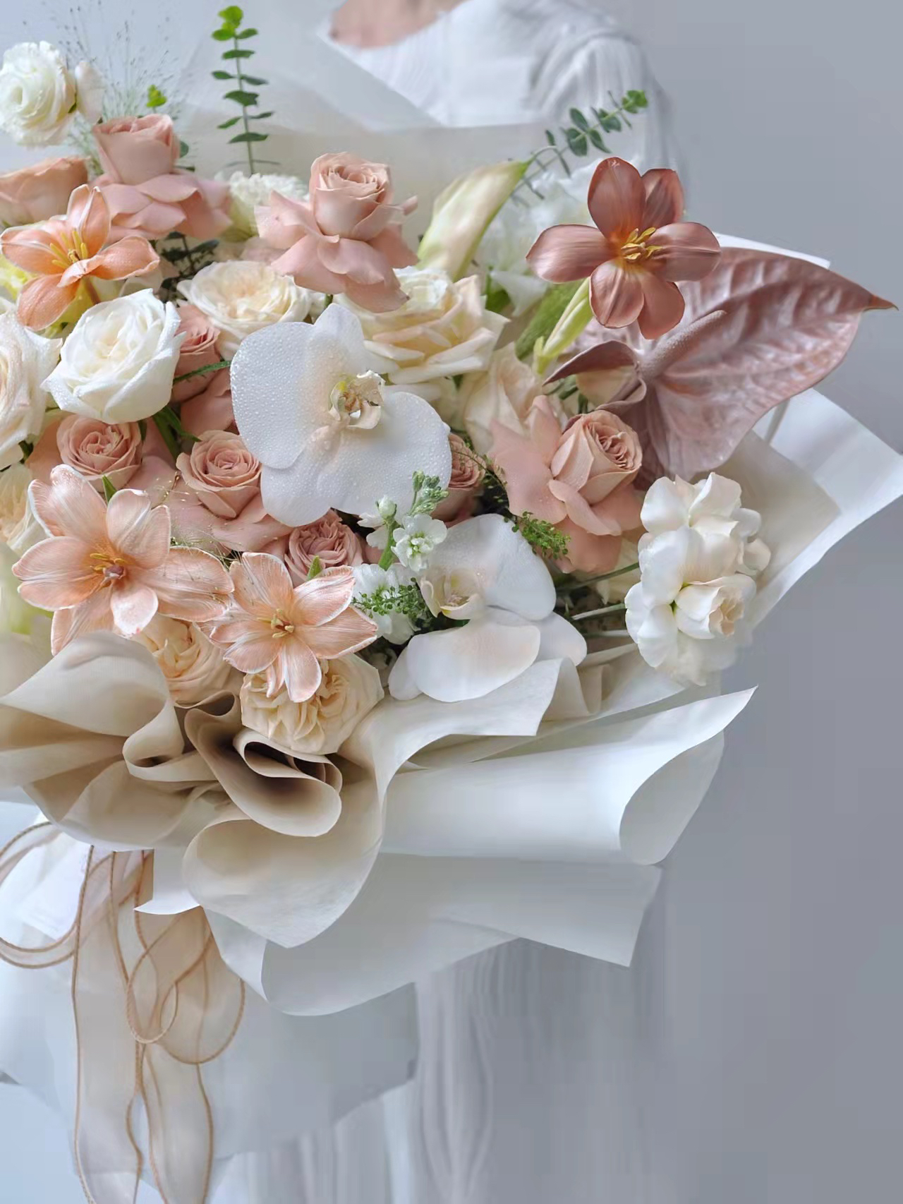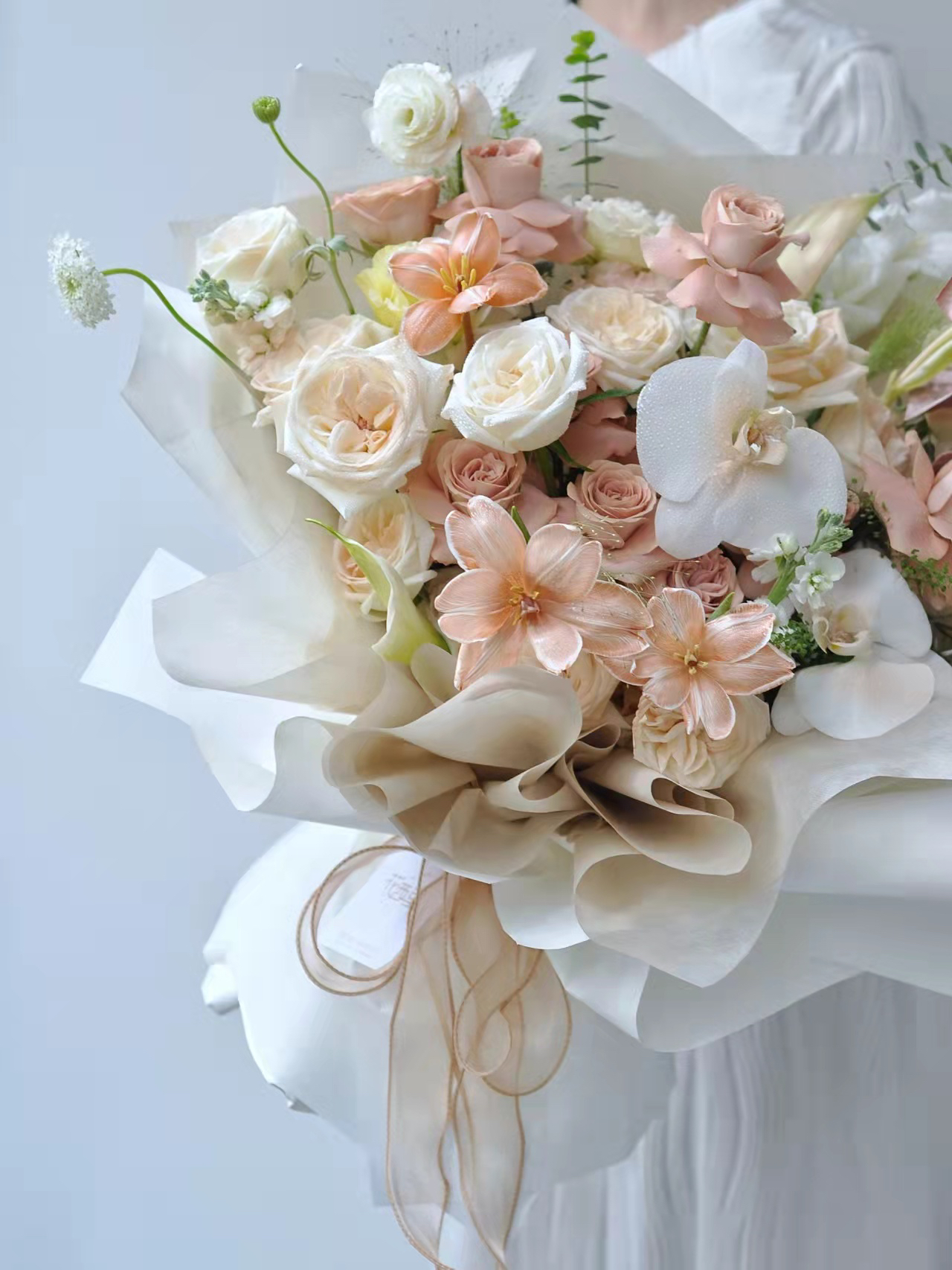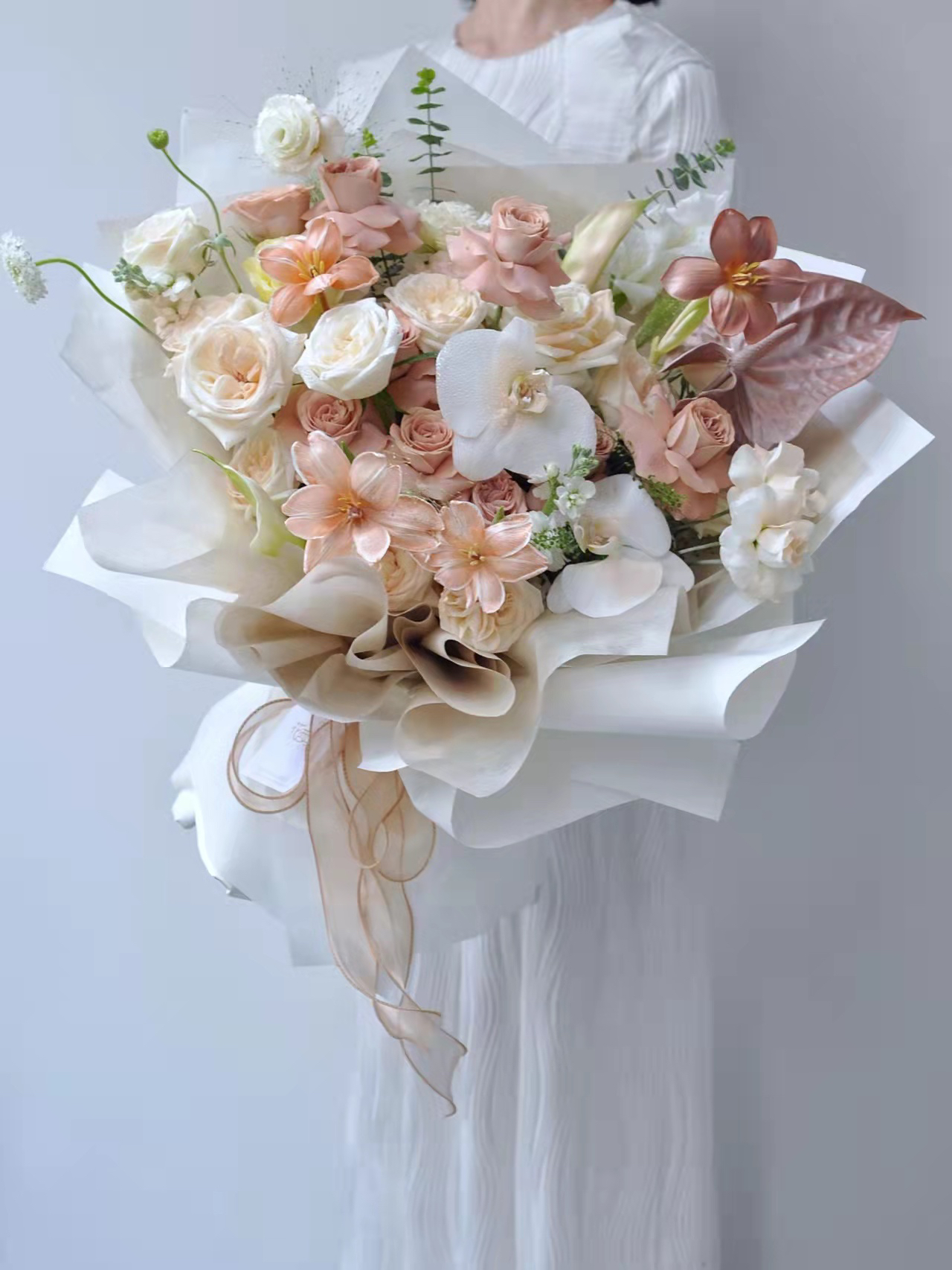 《焦糖布丁》卡布奇诺布朗尼花束郁金香花束,需提前两天预定