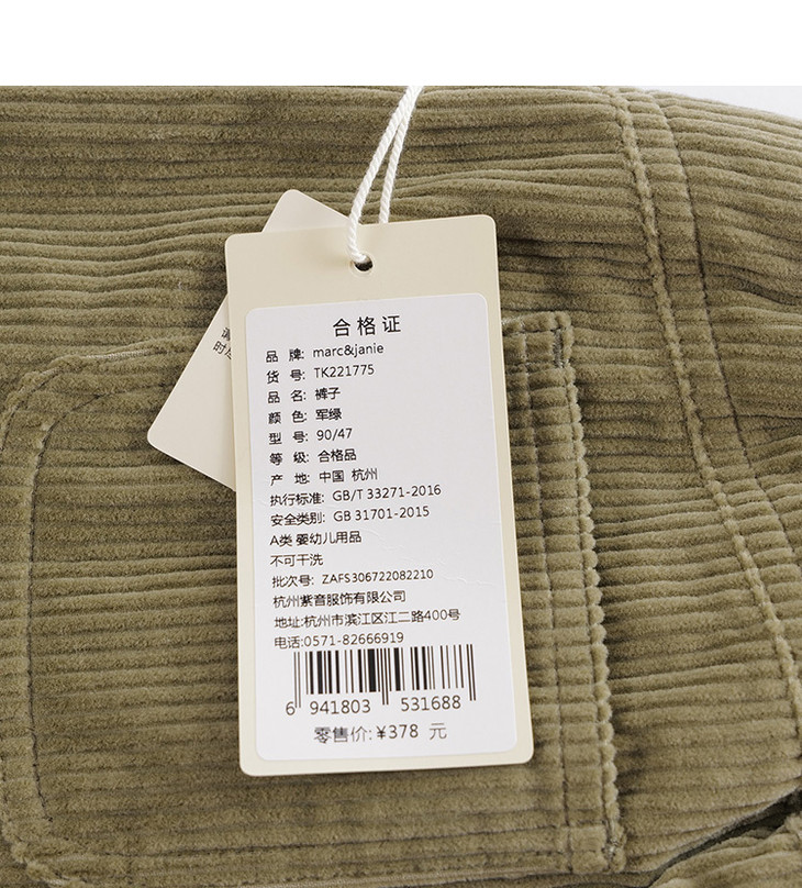 马克珍妮秋冬新款 男童灯芯绒绣花加绒束脚裤221775
