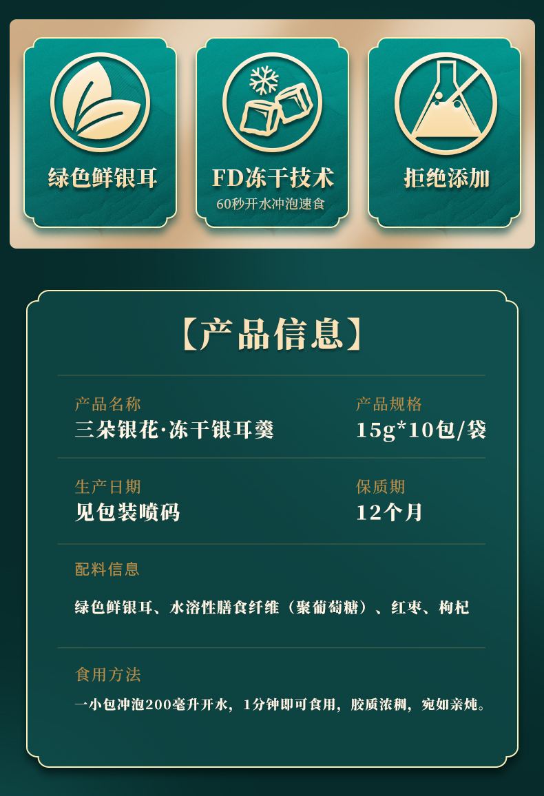 【0蔗糖】三朵银花 冻干银耳羹 10小包/袋 红枣枸杞银耳羹
