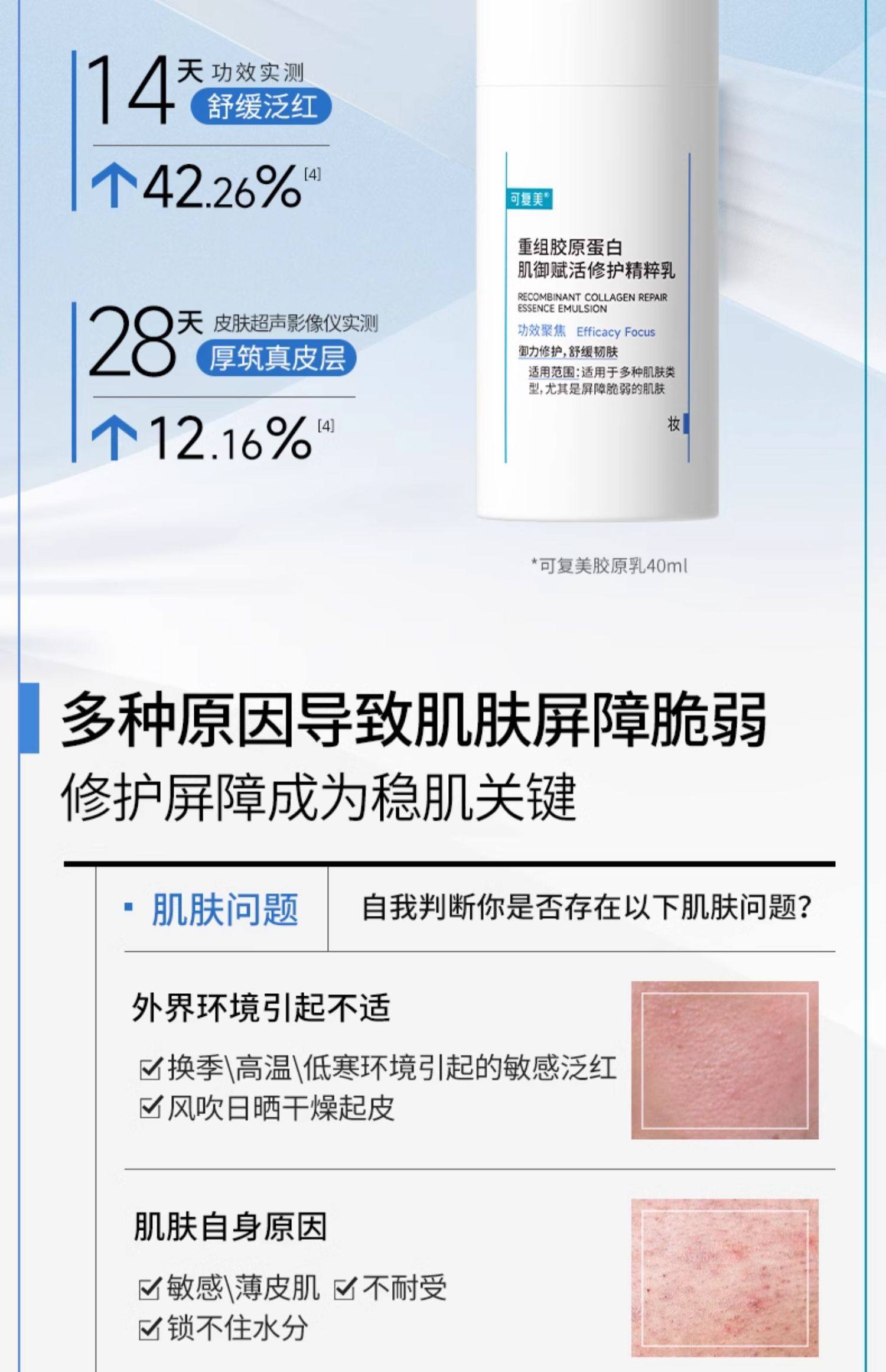 可复美重组胶原肌御赋活修护精粹乳40g/80g 舒缓敏感肌修复保湿乳液