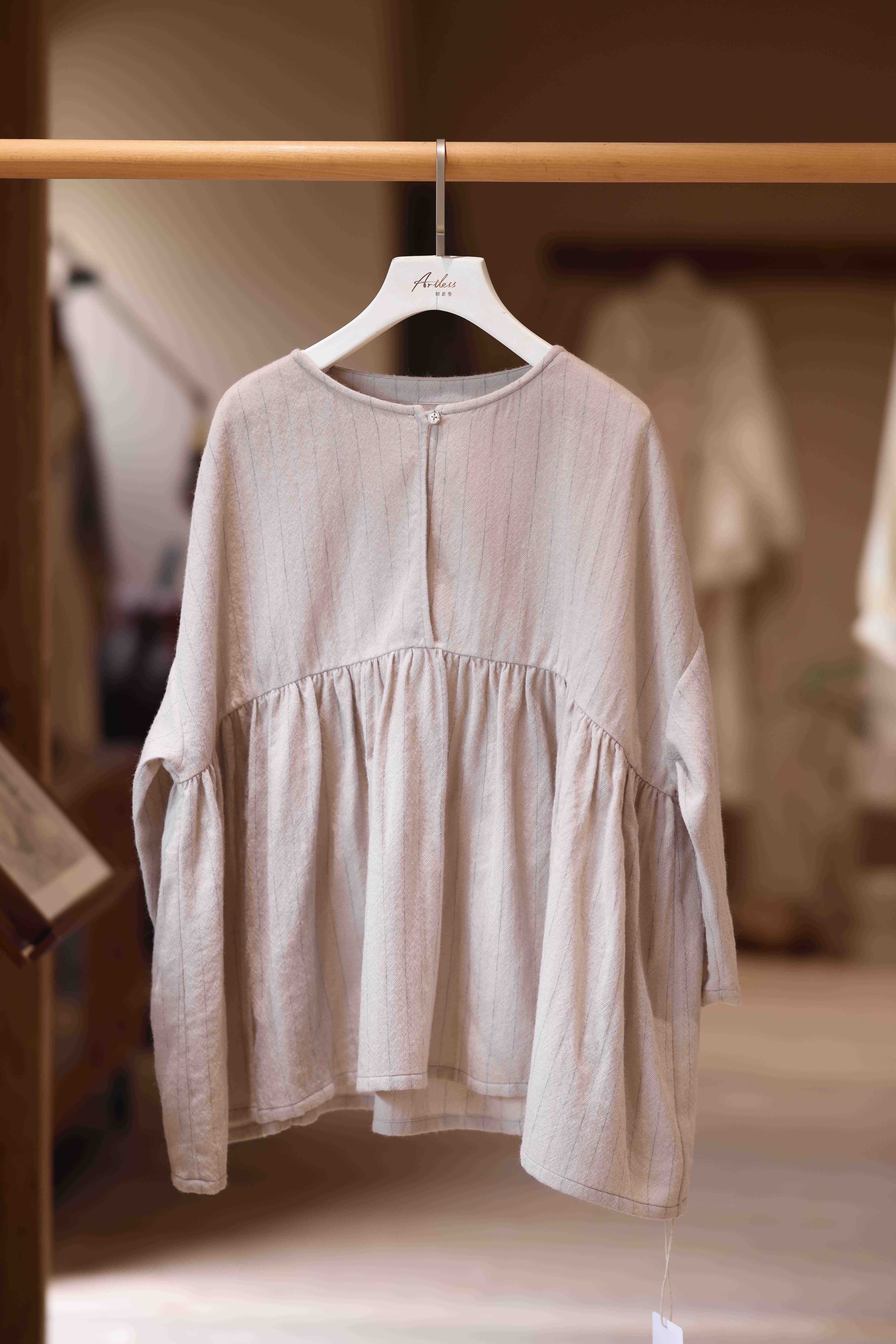 黄阿福 细条纹羊毛七分袖娃娃衫