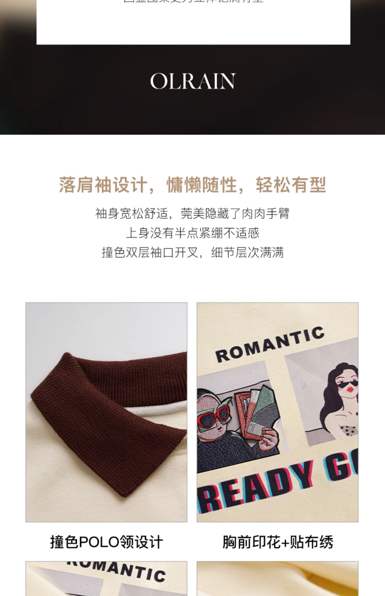 OLrain欧芮儿美式polo领卫衣女秋冬2023年新款复古撞色加绒上衣