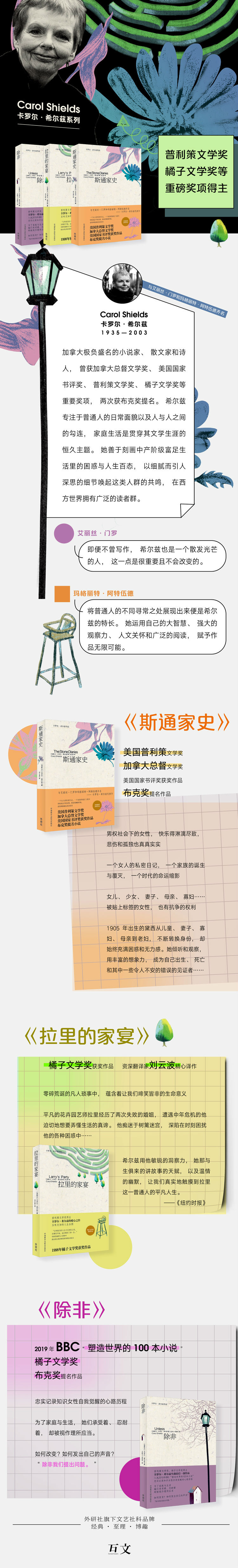 与诺贝尔文学奖得主艾丽丝·门罗及热门候选人玛格丽特·阿特伍德齐名的加拿大作家,普利策文学奖、橘子文学奖得主卡罗尔·希尔兹小说
