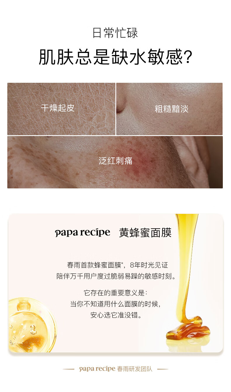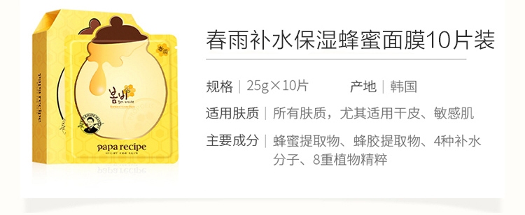 春雨papa recipe 蜂蜜面膜 10片/盒 补水保湿滋养 孕妇敏感肌可用
