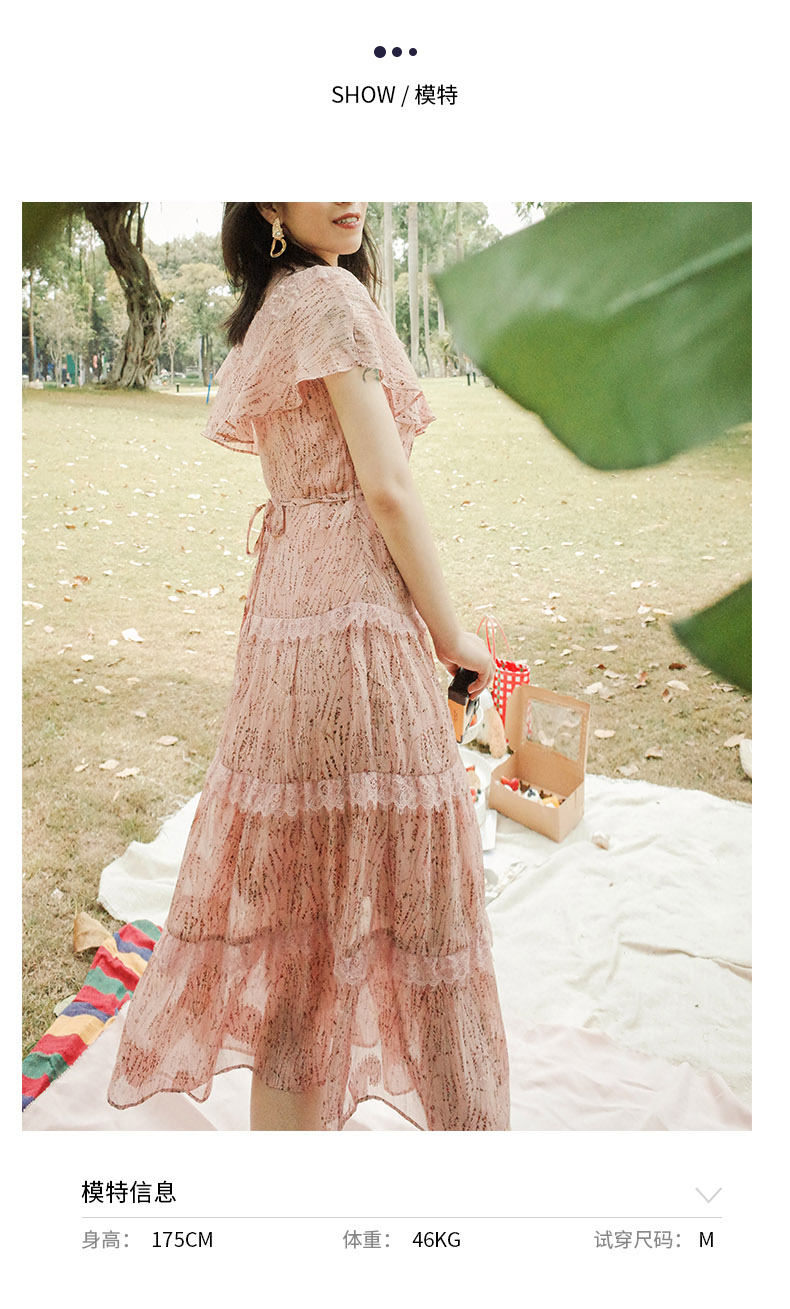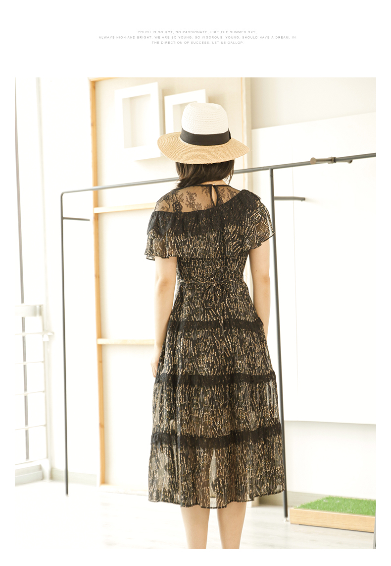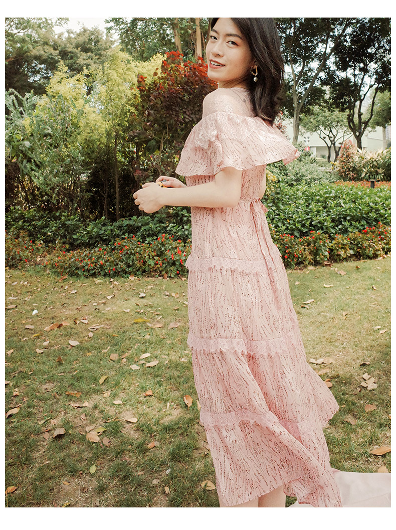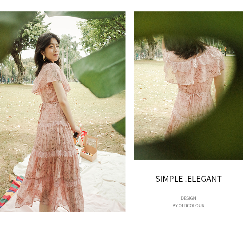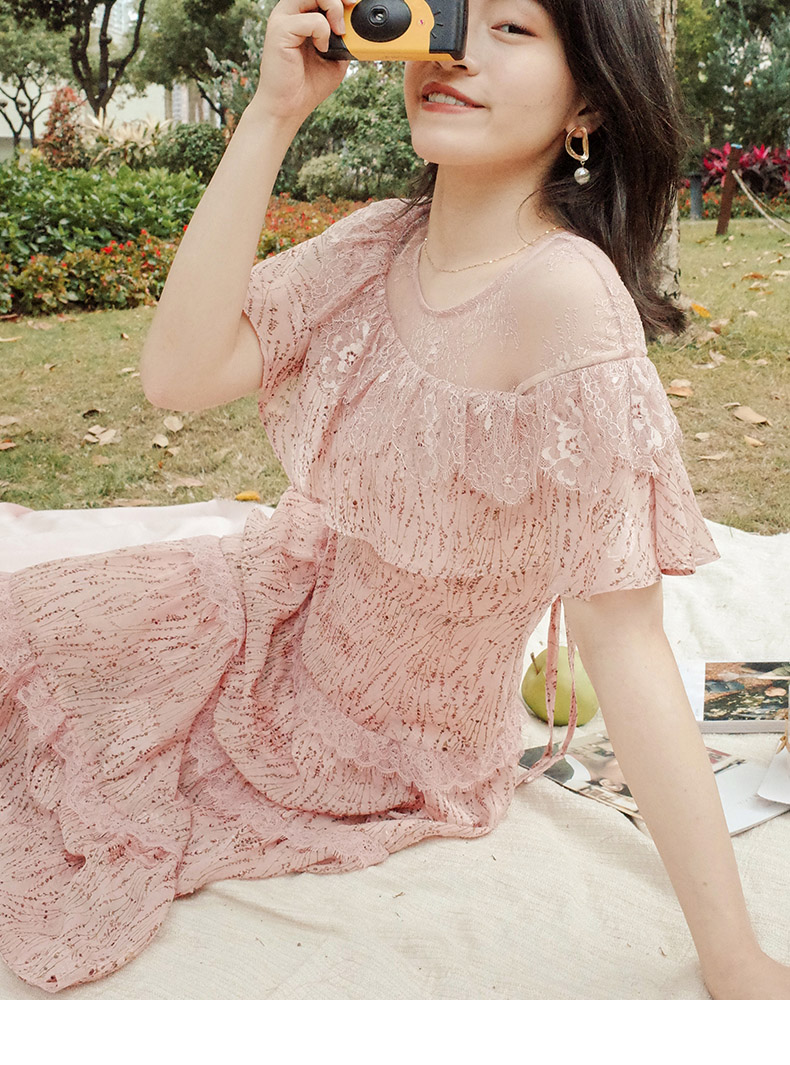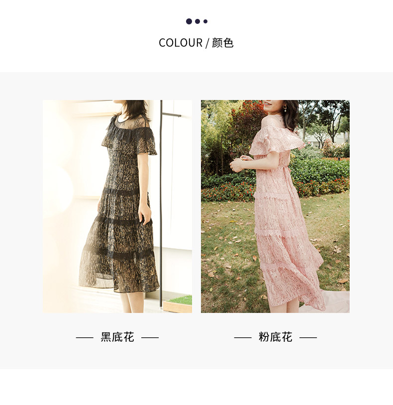 oldcolour专柜款不规则露肩蕾丝连衣裙女中长款夏M24101155