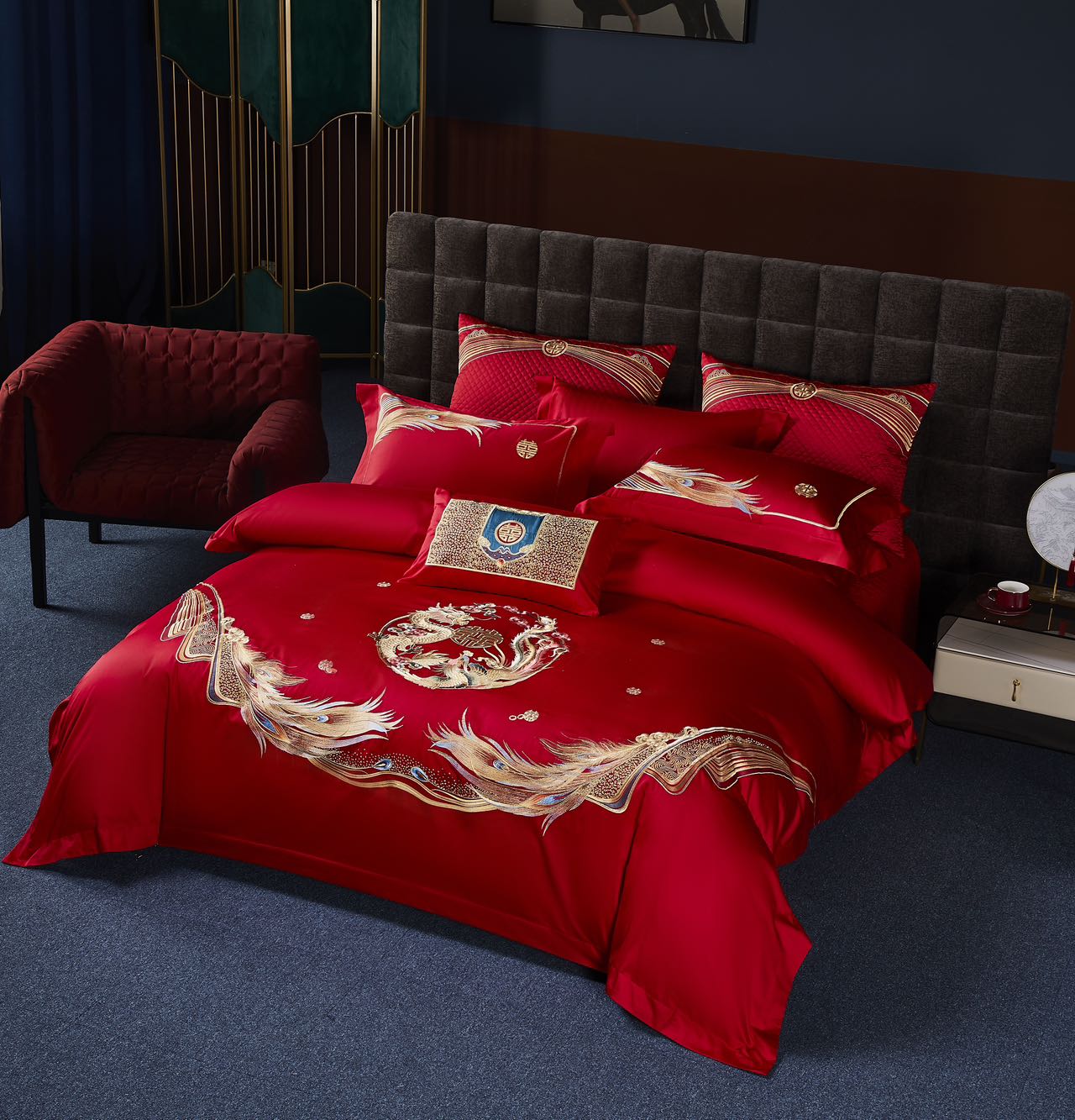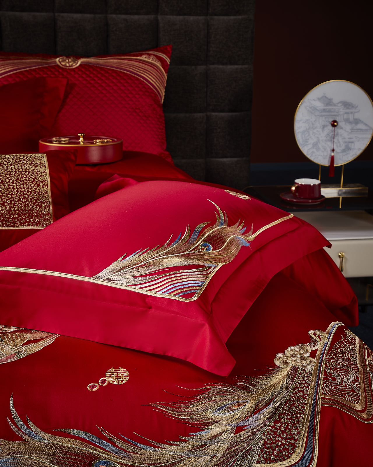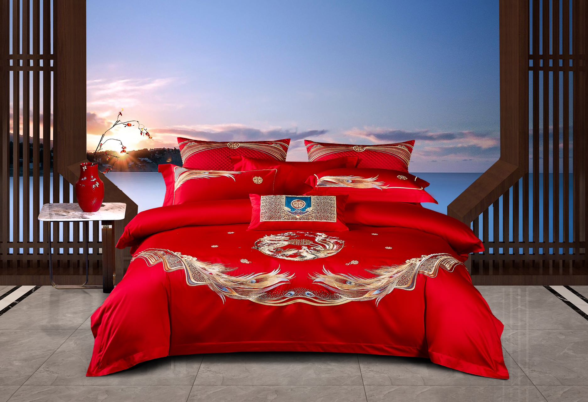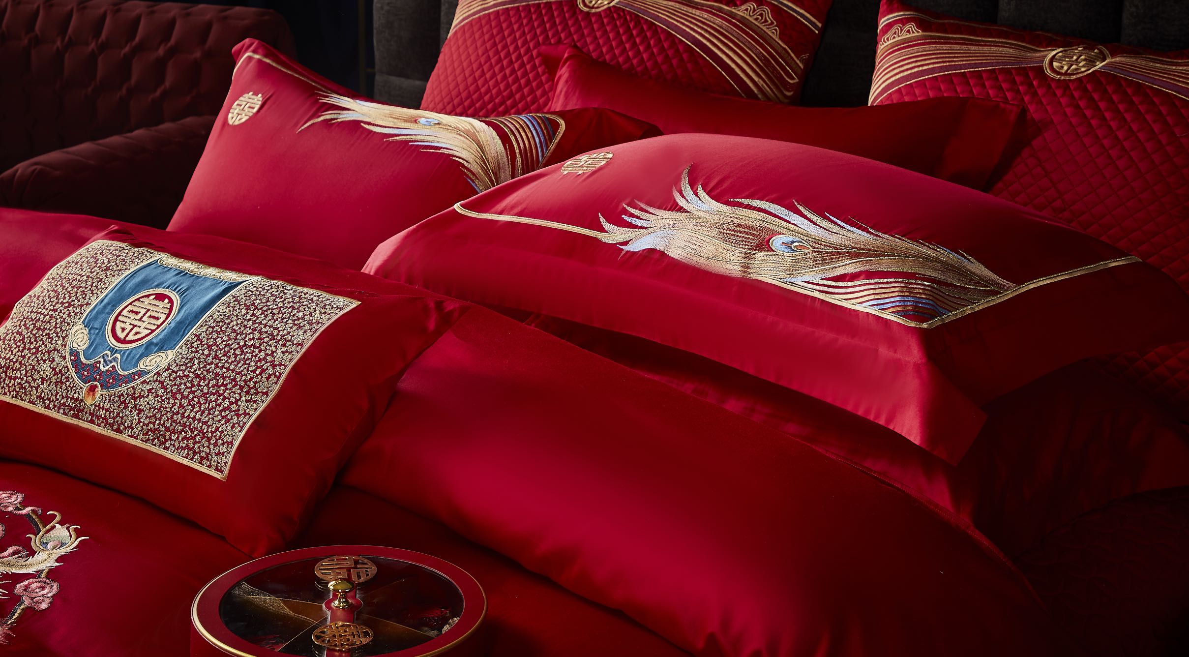 利路米家纺百支大红色绣花六件套--情定今生