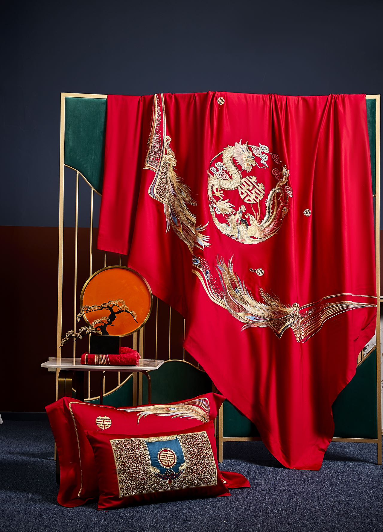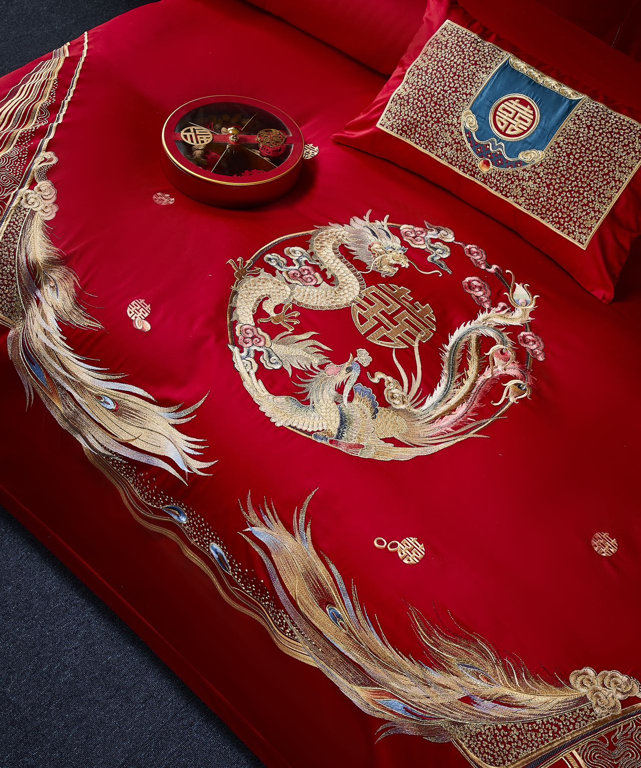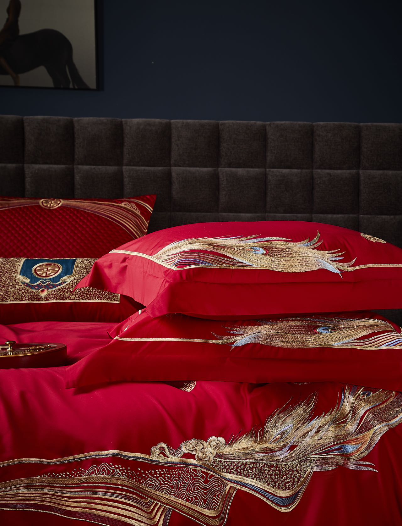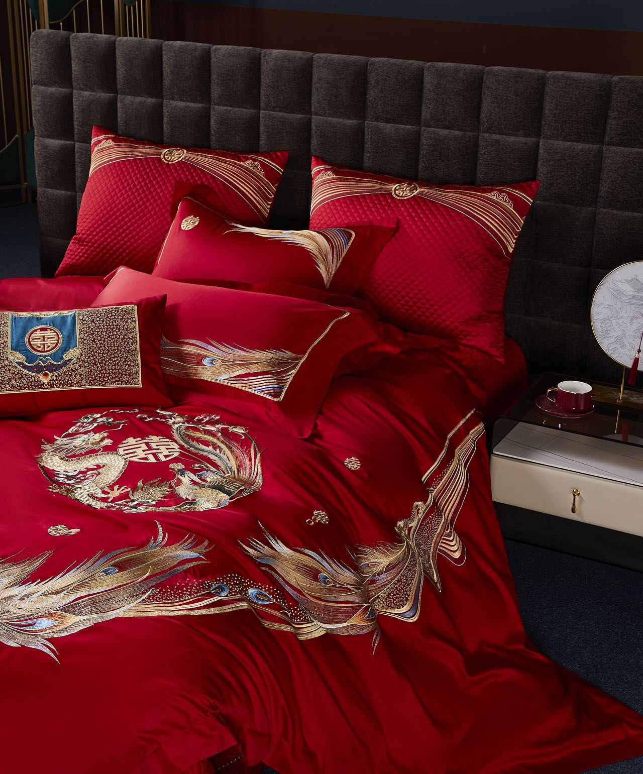 利路米家纺百支大红色绣花六件套--情定今生