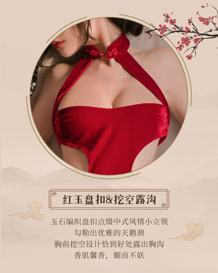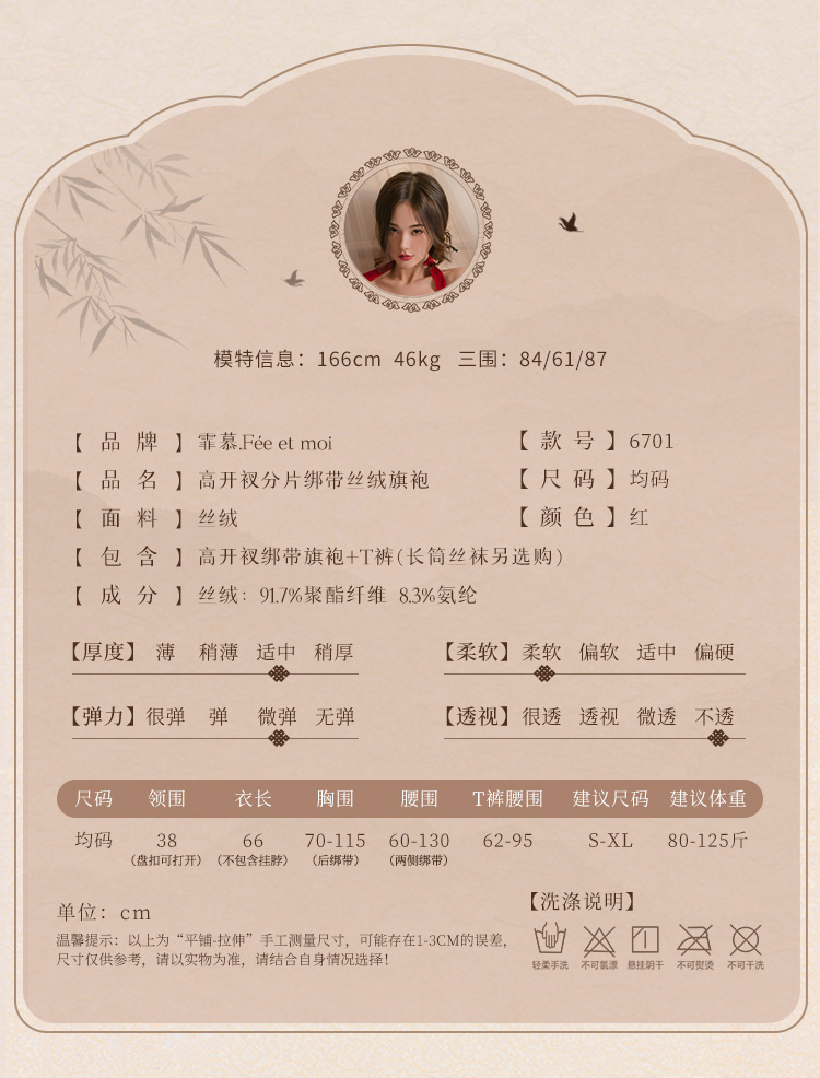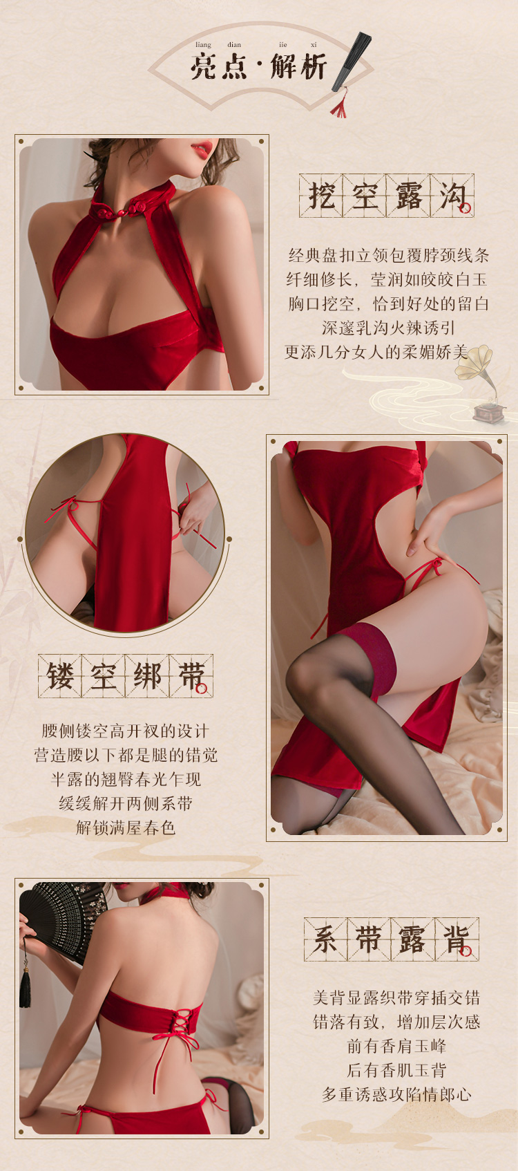 【风华俏佳人】情趣内衣 高开衩 分片 绑带 丝绒 旗袍 套装 型号:6701