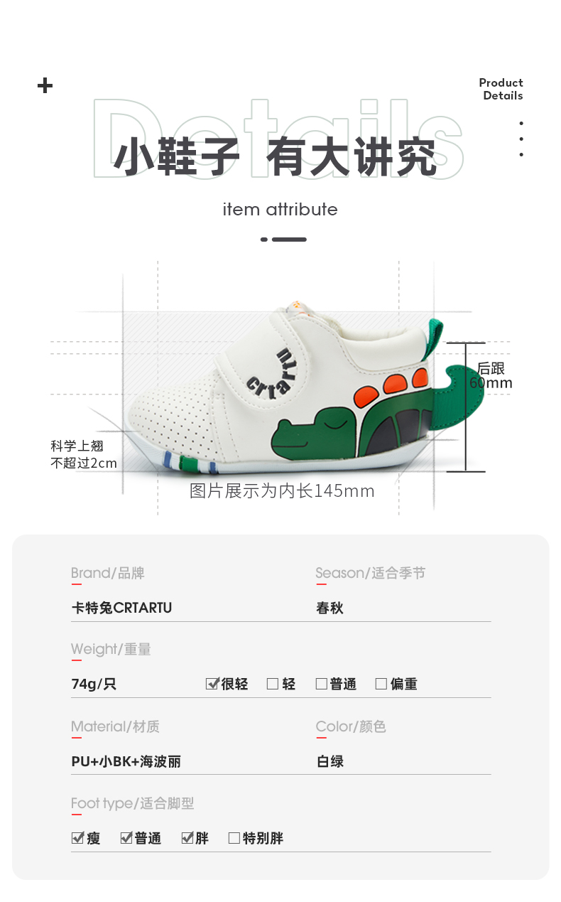 卡特兔春秋款宝宝鳄霸小白鞋 一段