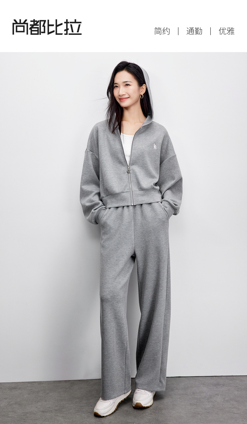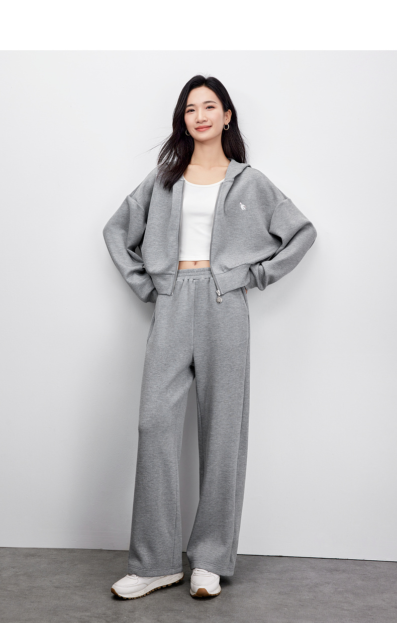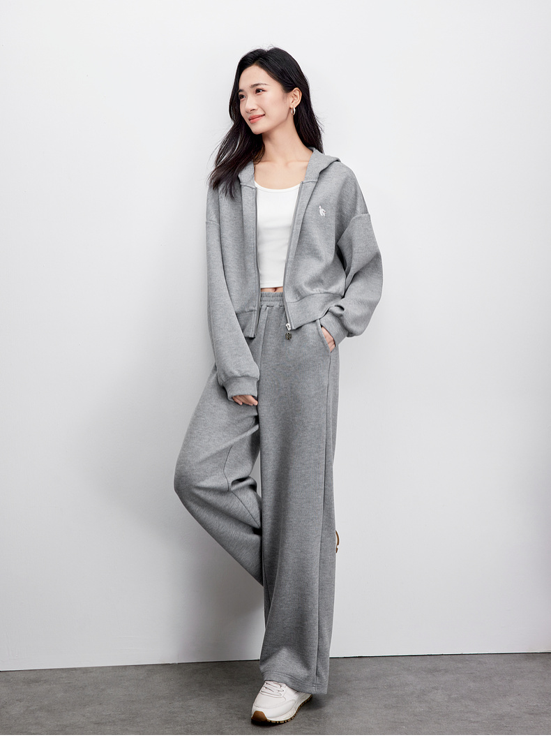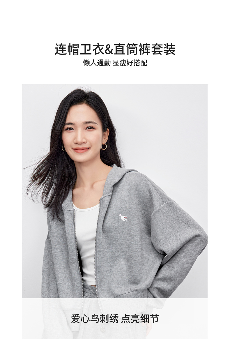 【内购】【空气层卫衣套装】爱心和平鸽刺绣连帽落肩外套&松紧腰直筒长裤-W53ZH3291X