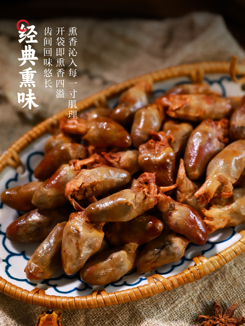 沟帮子鲜熏小食 十二道熏味 鸡胗135g*3袋