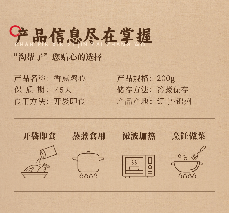 【沟帮子】沟帮子鲜熏小食 十二道熏味 鸡心200g*3袋