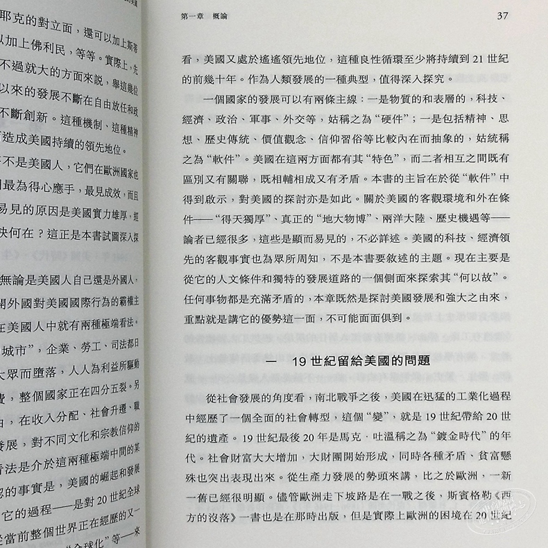 本書從美國所繼承的豐富精神資源和19世紀給美國留下的問題與危機談起,透過紛繁複雜的社會現象、影響美國的各種思潮,深入探討美國的發展模式及其得失利弊,客觀講述美國百餘年間走過的獨特道路及其內在動因。