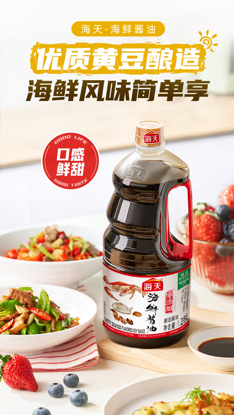 海天海鲜酱油1.28L添加干贝 非转基因黄豆酿造蒸鱼凉拌点蘸